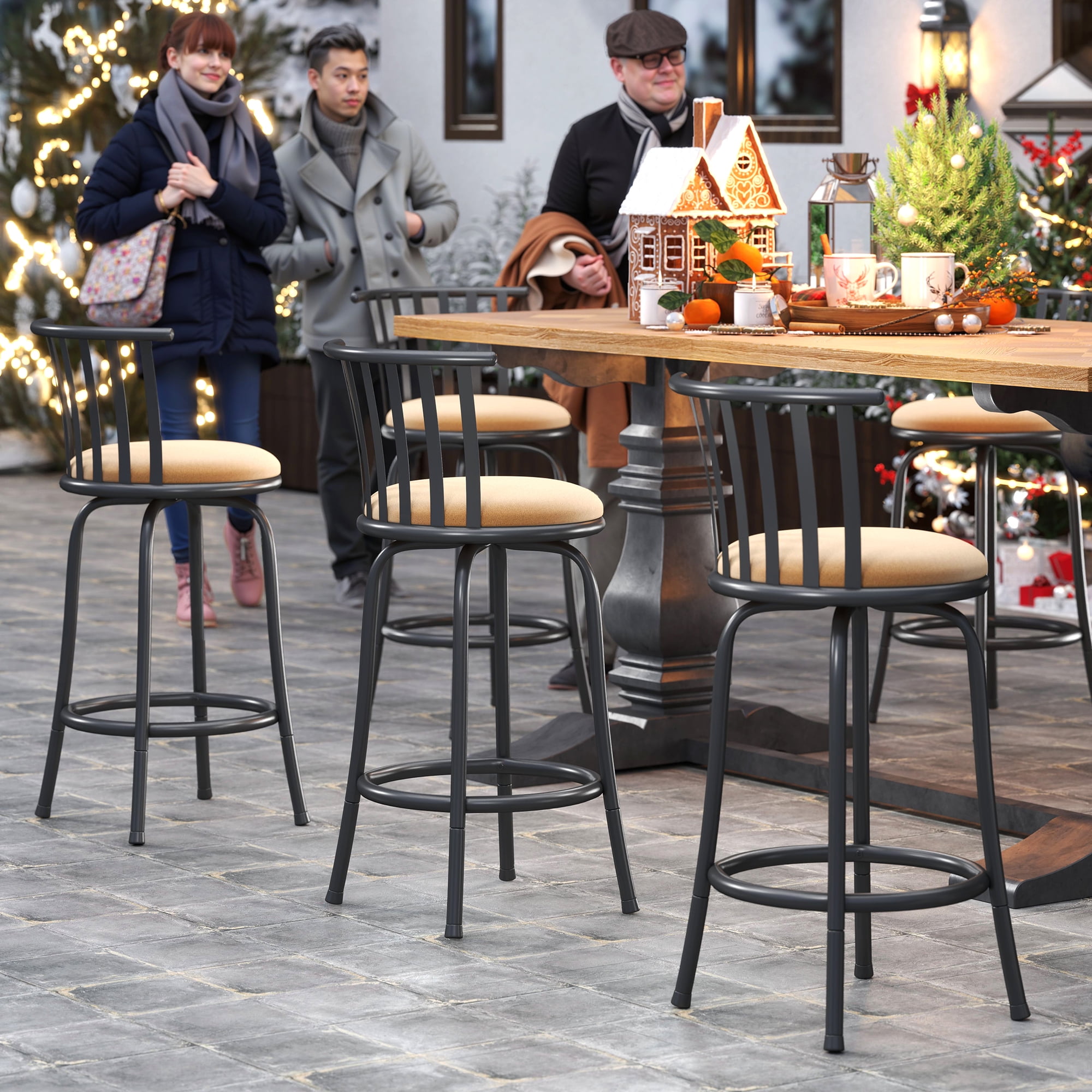 Homy Casa Swivel Bar Stools Set of 3, 24 inch Counter Height Stools for Home Kitchen Island, Brown