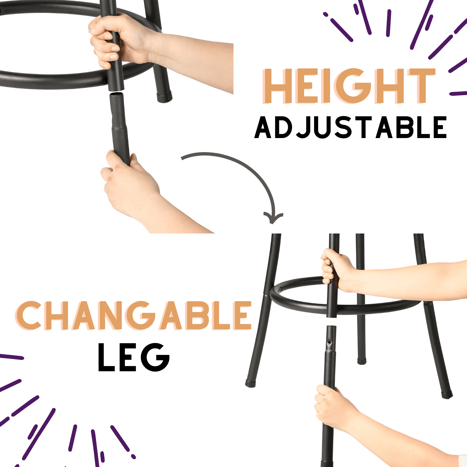 Swivel Function: 360-degree swivel allows you to rotate effortlessly, providing convenience and flexibility for various activities. Sturdy Metal Frame: The durable metal construction ensures stability and long-lasting use, while the black finish adds a touch of elegance. Comfortable Upholstered Seat: The seat is cushioned with high-quality foam and upholstered in soft beige fabric, offering exceptional comfort for prolonged sitting. Ergonomic Backrest: The curved backrest provides ample support, enhancing your seating experience and promoting good posture. Footrest Ring: The integrated footrest ring offers additional support and comfort, making it easy to relax and unwind.