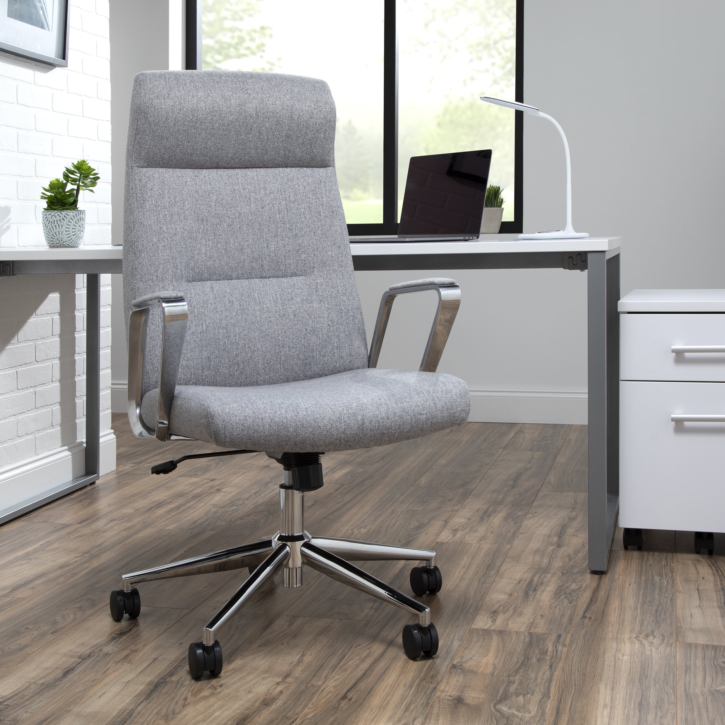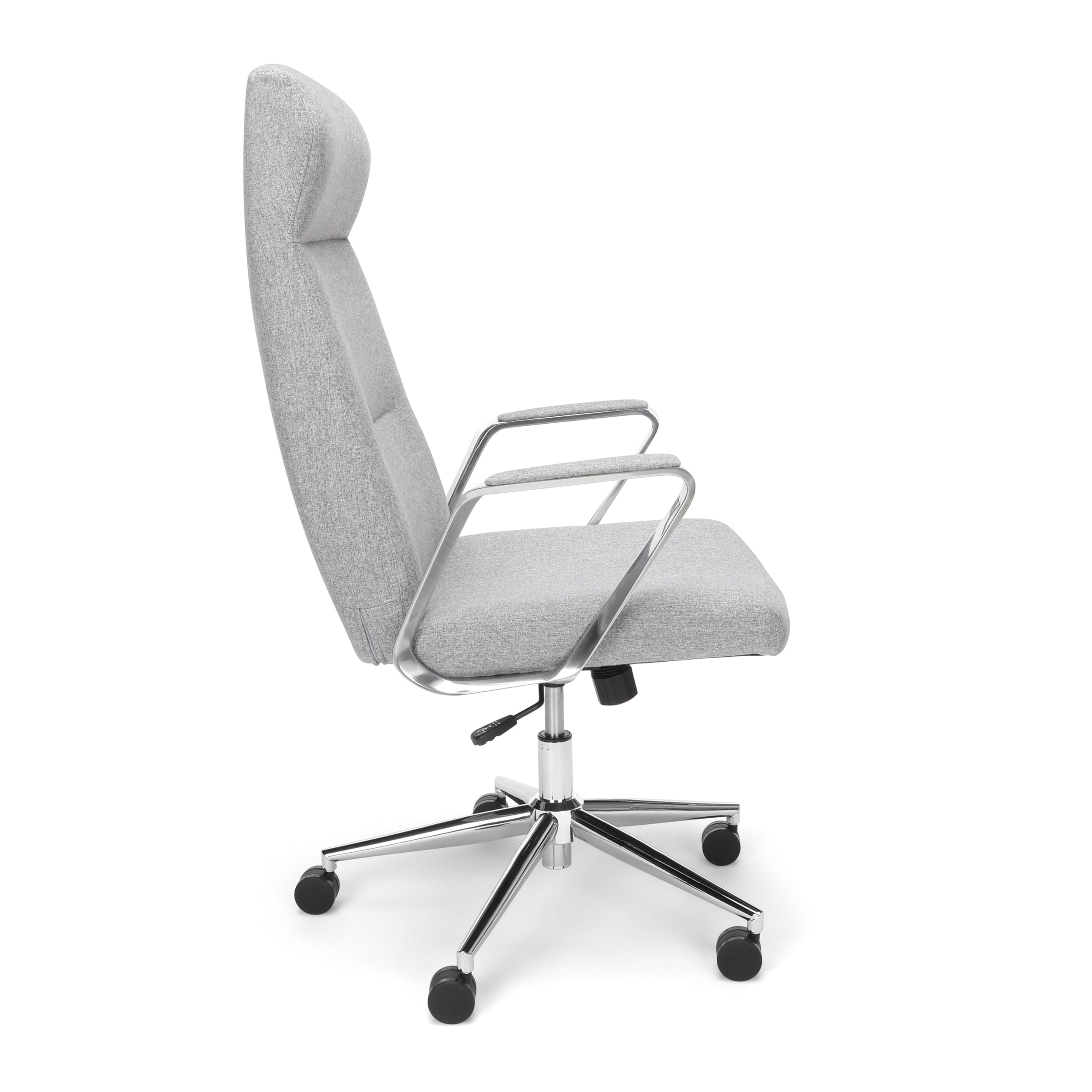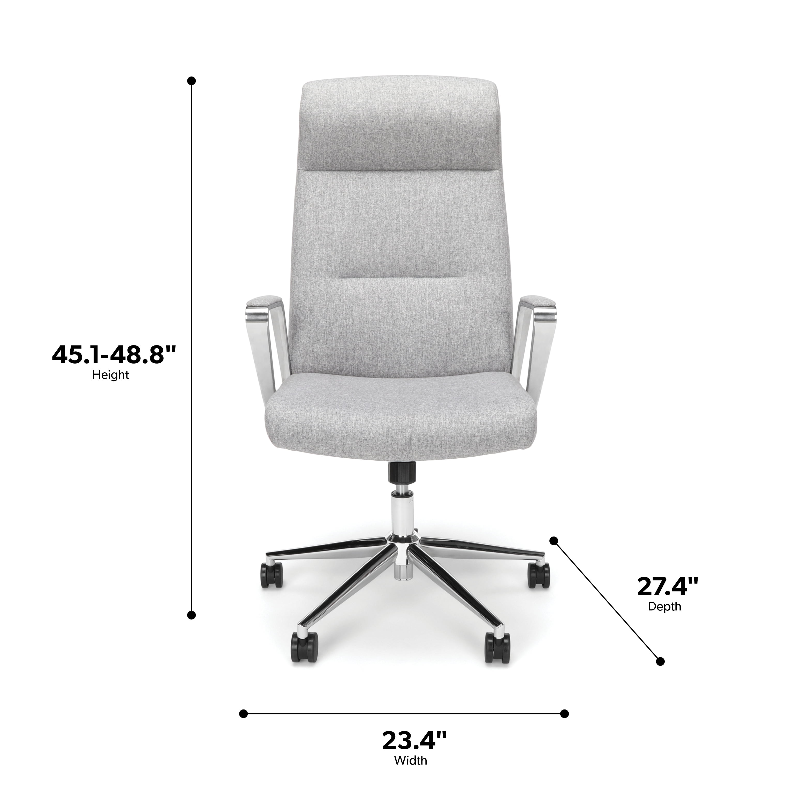 Premium executive office chair that provides comfort and ergonomic solutions with fabric upholstery The desk chair features a supportive, integrated headrest The chair’s seat back features a contoured lumbar zone for support Fixed, heavy-duty polished aluminum arms make a striking statement while providing padded comfort and support Premium foam seat padding provides a luxurious seating experience The computer chair features swivel tilt which tilts the chair seat and back together in one motion Pneumatic height adjustment allows you to adjust chair to your ideal height The 60mm casters are built to withstand your busy workweek The chair features a five-star base that is made of chromed, welded steel and has a 360-degree swivel that provides total freedom of movement This task chair features a 275 lb weight capacity and is backed by the HON Basyx Limited 5-Year Warranty
