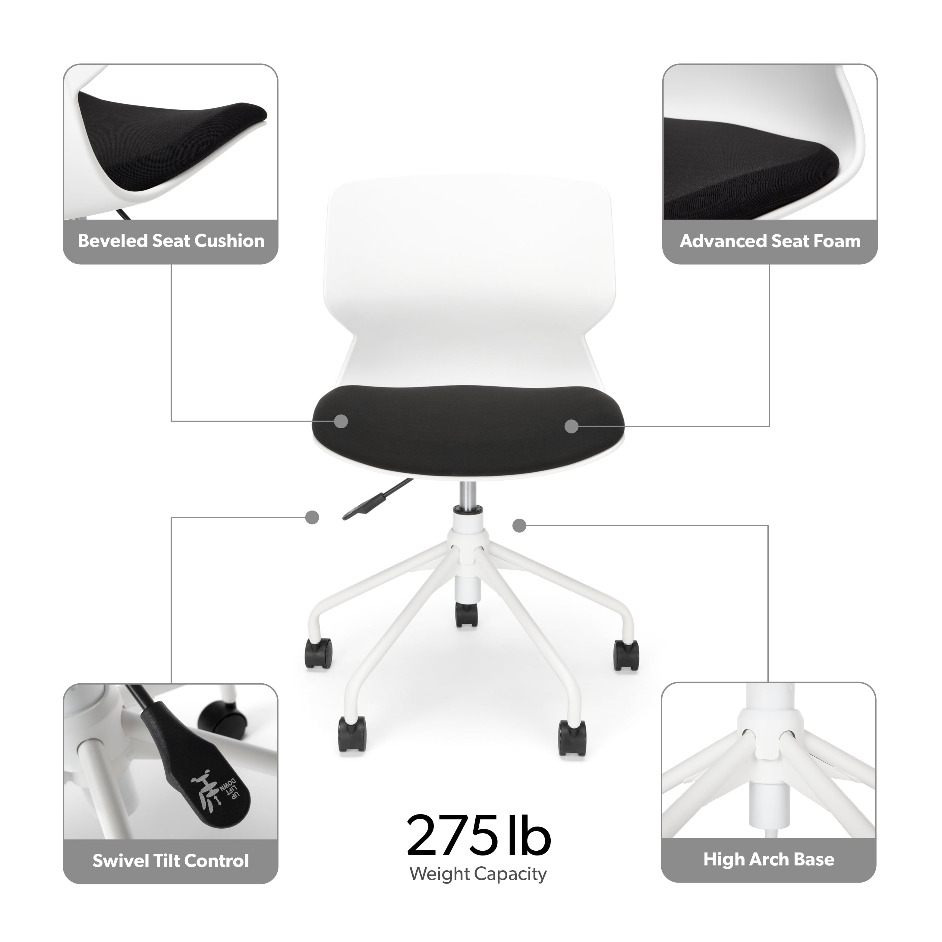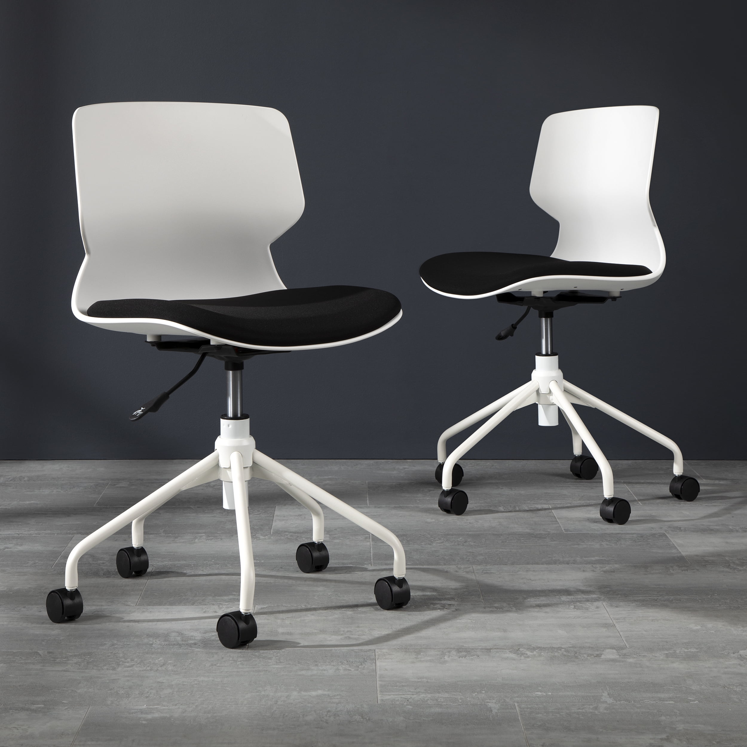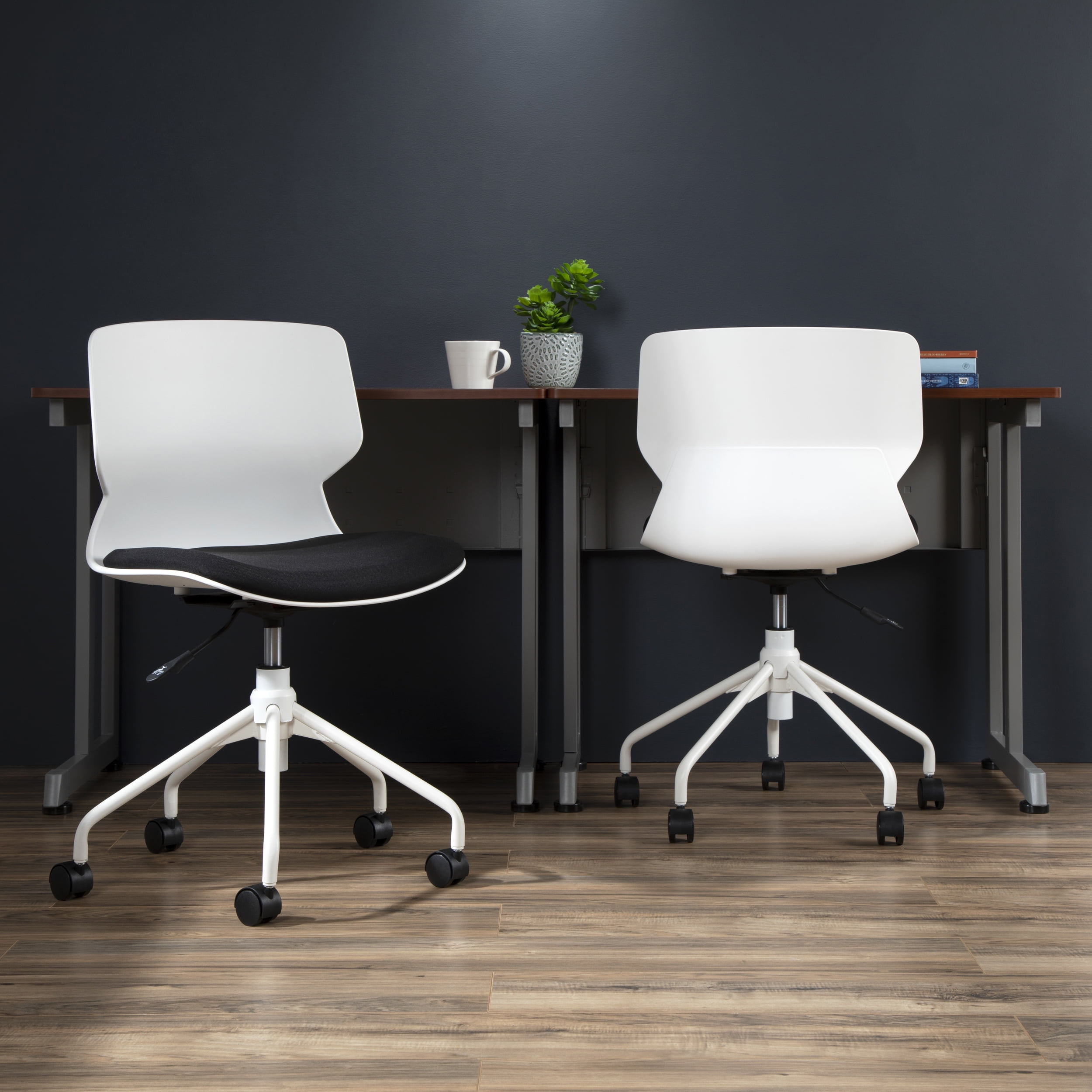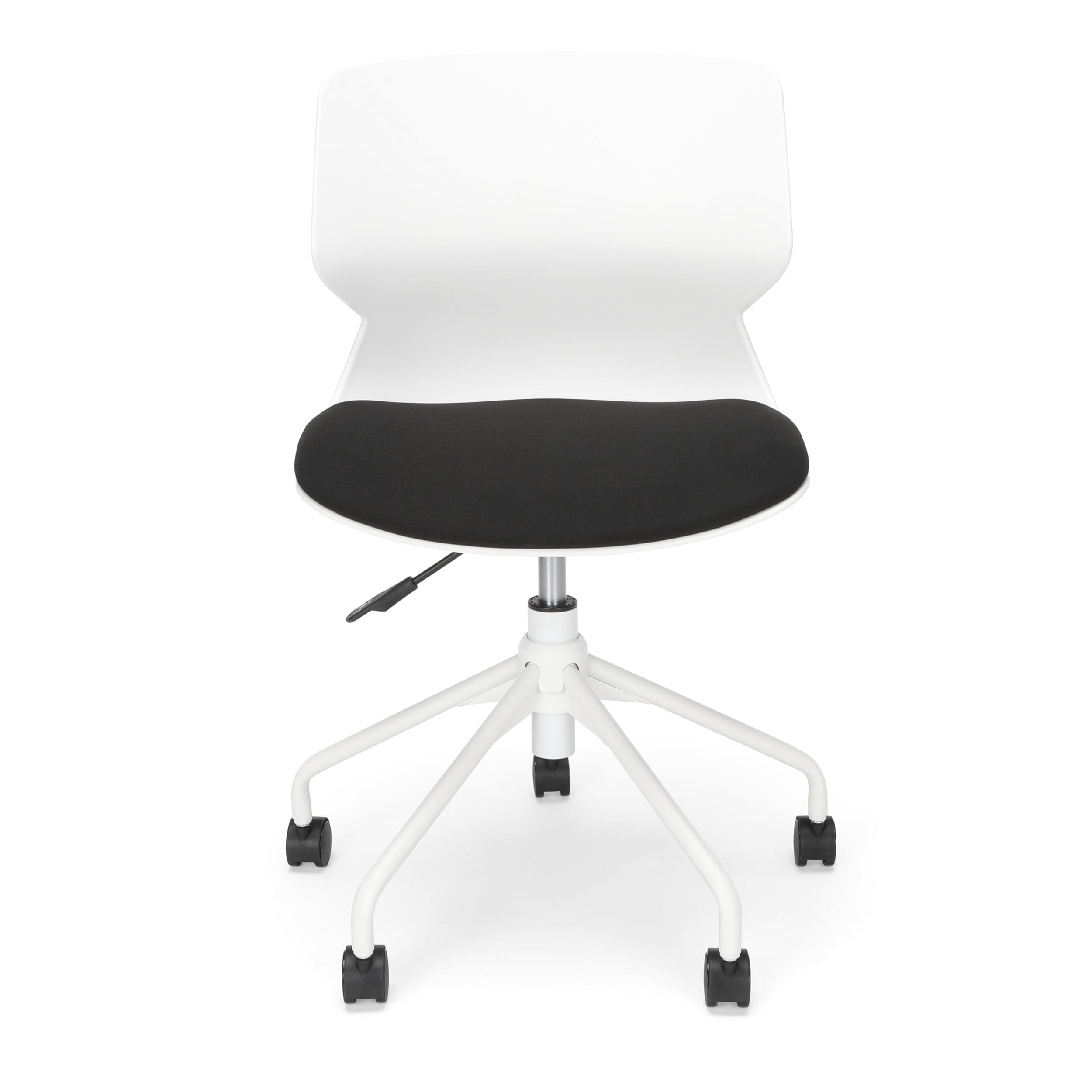 The high arch base gives your space a sophisticated, designer look Advanced seat foam provides a comfortable sit The desk chair features a beveled seat cushion edge for a streamlined look The single-piece seat frame provides a modern look for this unique task chair These chairs roll easily with 50 mm casters The office chair features a five-star base with 360-degree swivel that provides freedom of movement in any direction Pneumatic seat height adjustment controls the seat’s up and down movement to adapt to various user heights With the family of Contempo seating solutions from chair to stool, you can easily coordinate modern furniture across your environment This office chair features a reinforced steel chassis that will support up to 275 lb This multi-purpose chair is backed by the HON Basyx Limited 5-Year Warranty