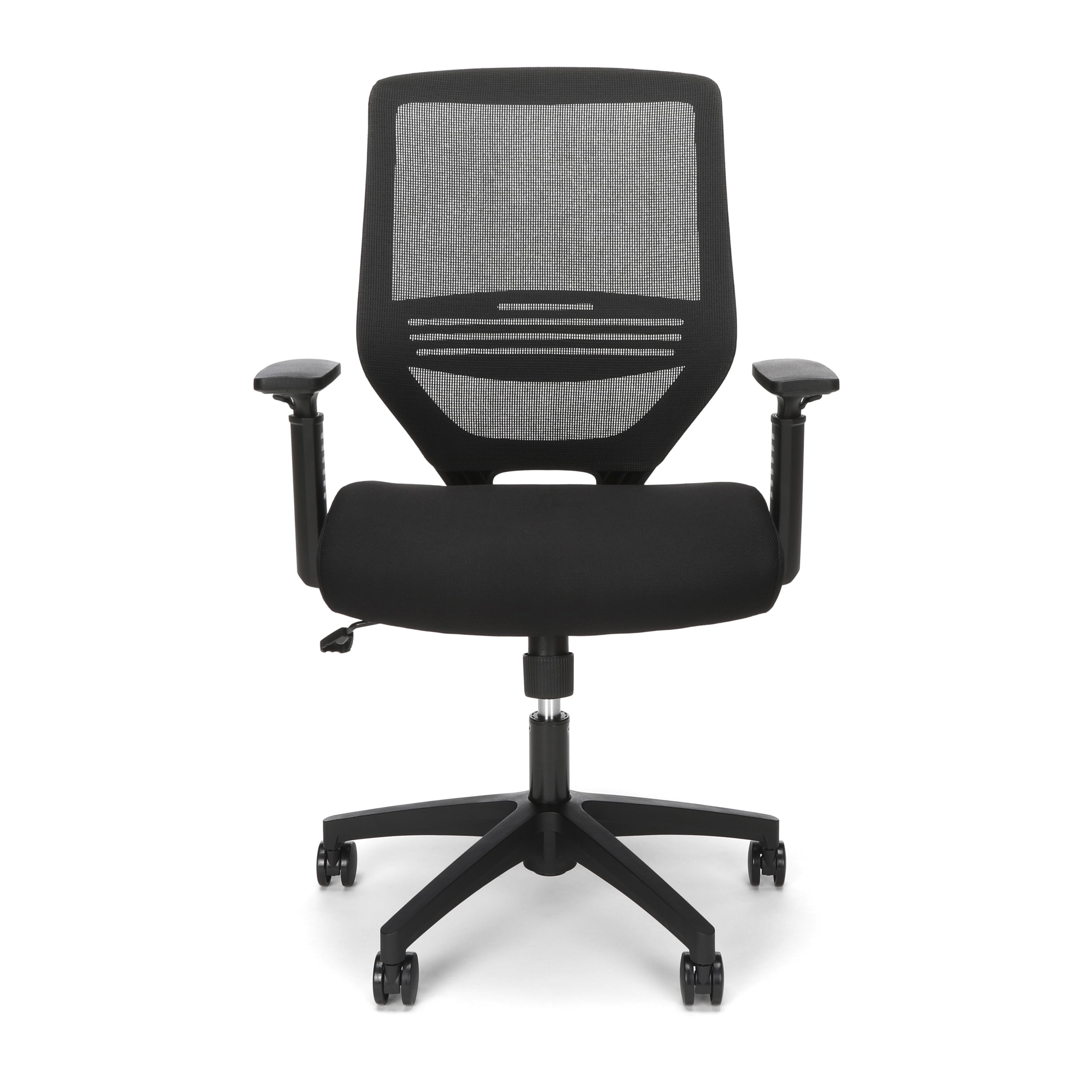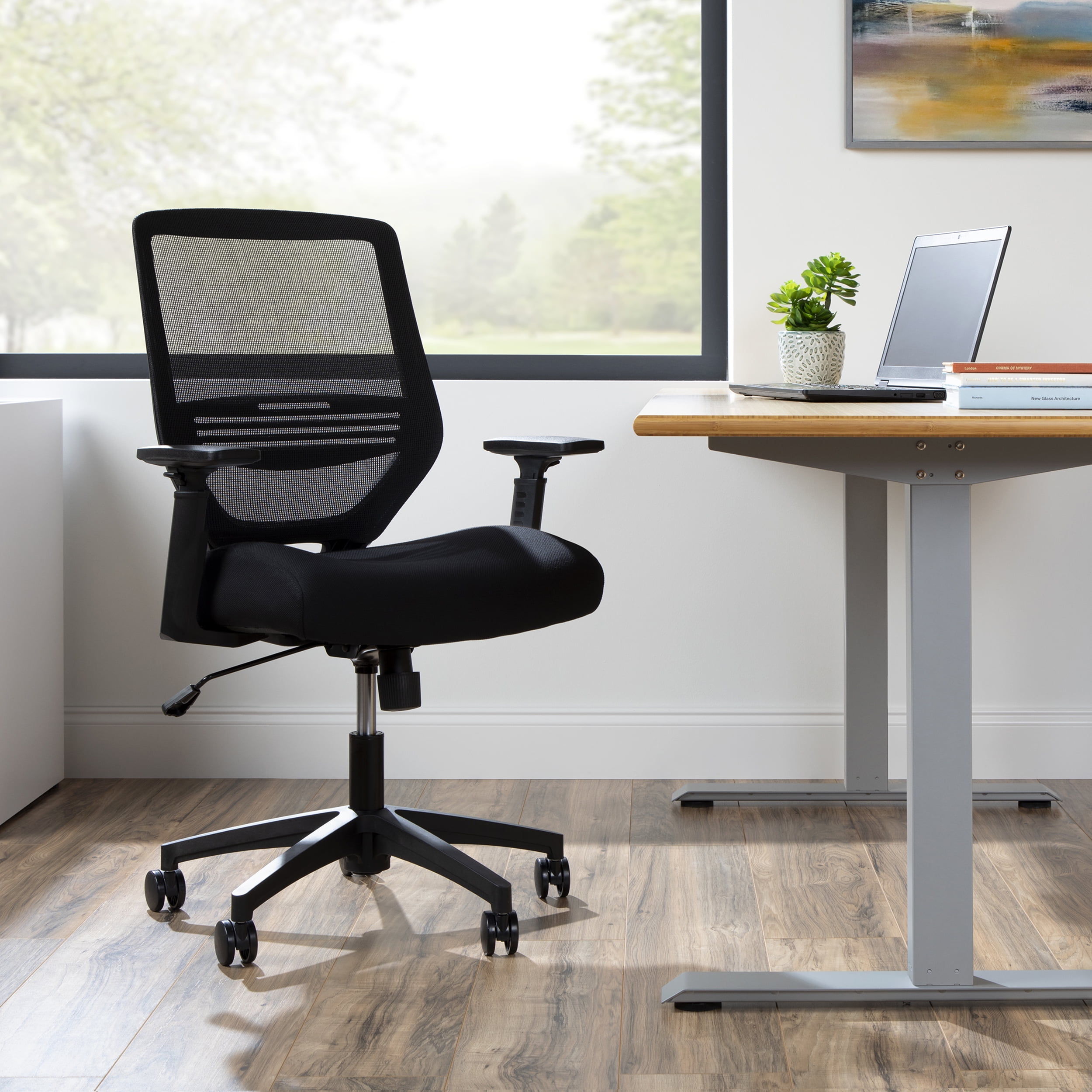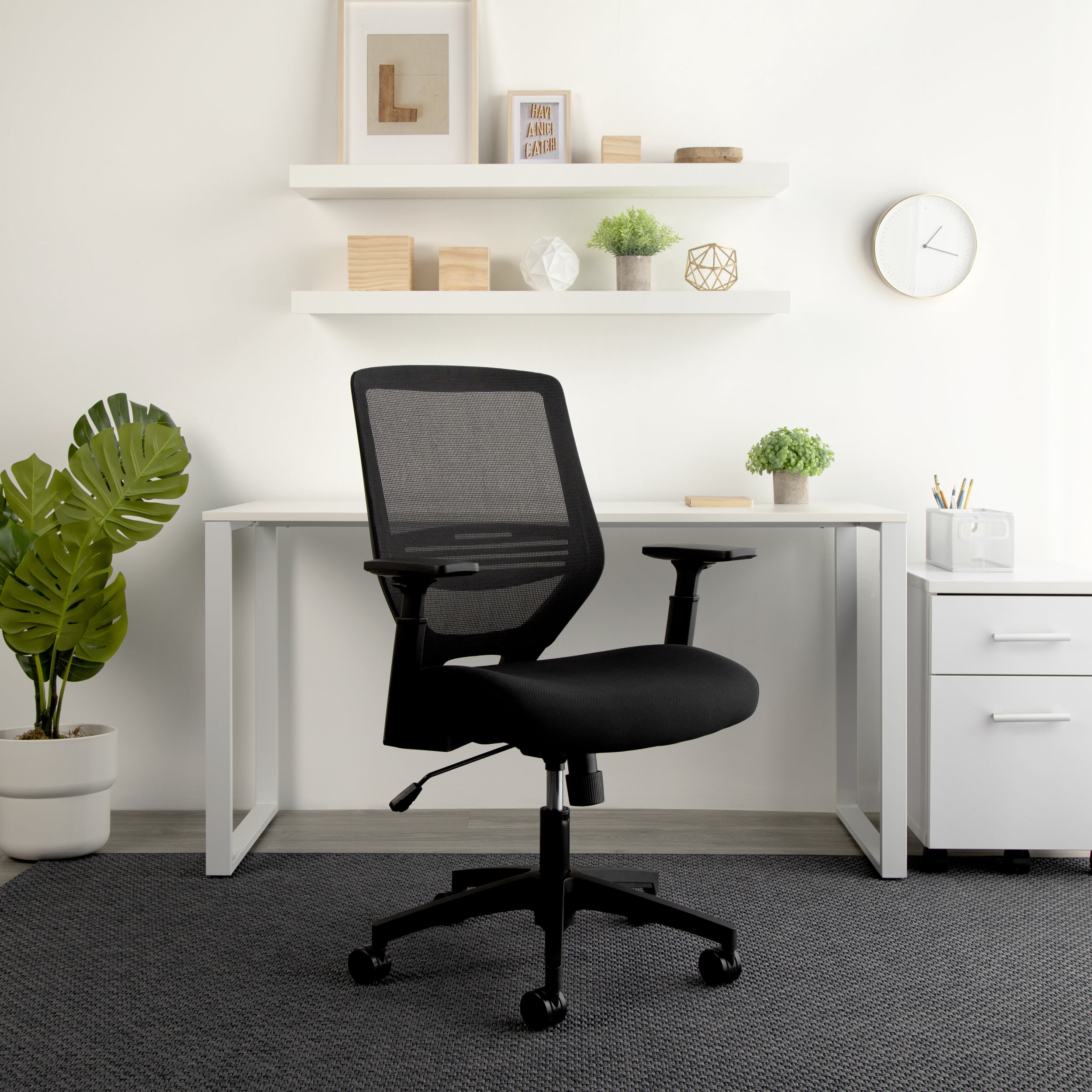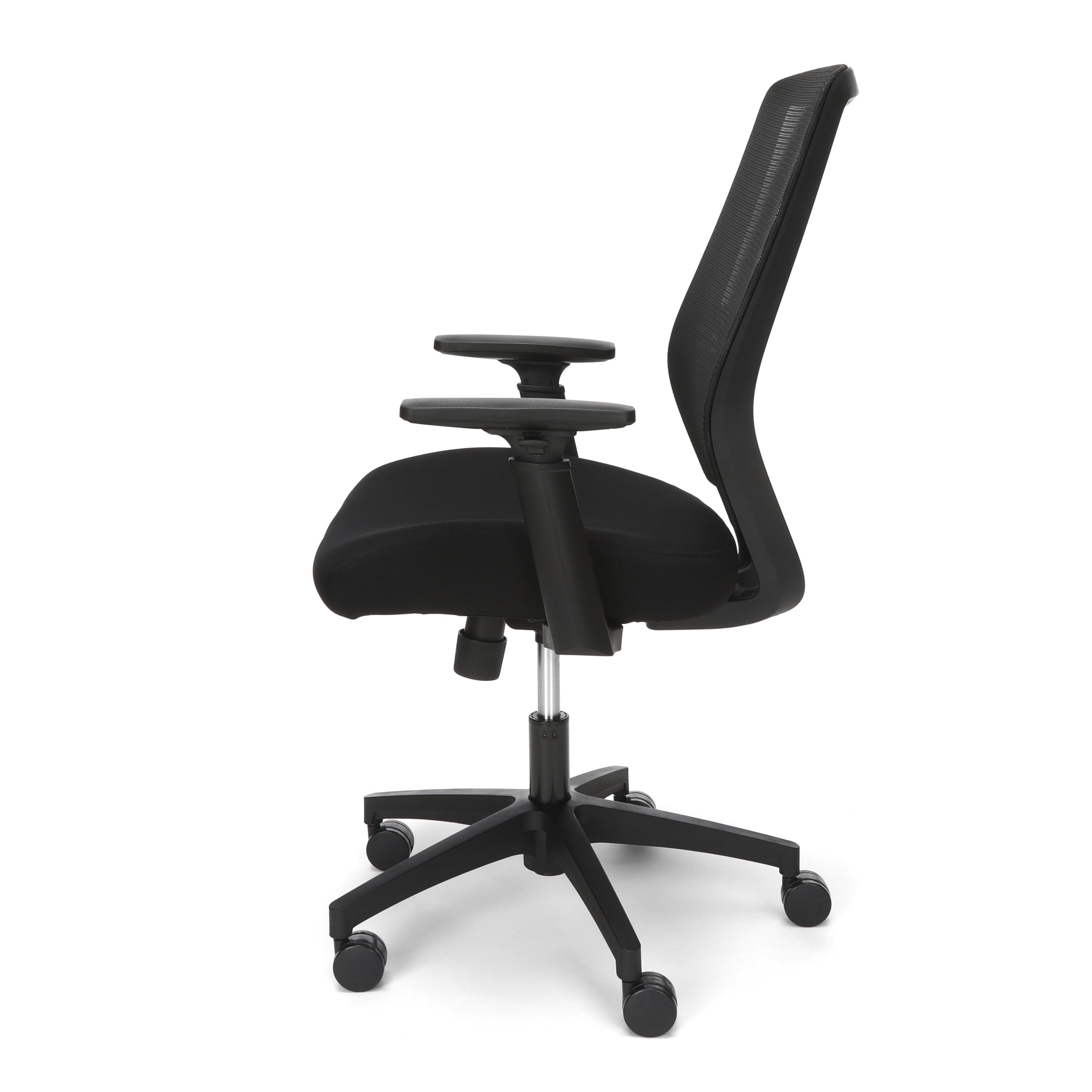 The perfect go-to chair for workdays that don’t break the back, or bank, the HON Basyx Expose Commercial-Grade Mesh Back Desk Chair promotes air circulation for a comfortable sit in any climate. The plush fabric seat is 3.5″ thick to provide support for all-day comfort. This computer chair’s arms can be easily customized with the height-adjustable functionality. Adaptable lumbar support adjusts up and down for personalized comfort when needed. This computer chair can be easily assembled within 20 minutes, so you can get to work quickly. Ergonomic features like center tilt, tilt tensioner, and pneumatic height adjustment allow you to call the shots on your chair’s settings. This task chair’s five-star base is molded from reinforced resin, has a 360-degree swivel, and holds users up to 275 lb. Featuring a full BIFMA rating, this office chair is backed by the HON Basyx Limited 5-Year Warranty.
