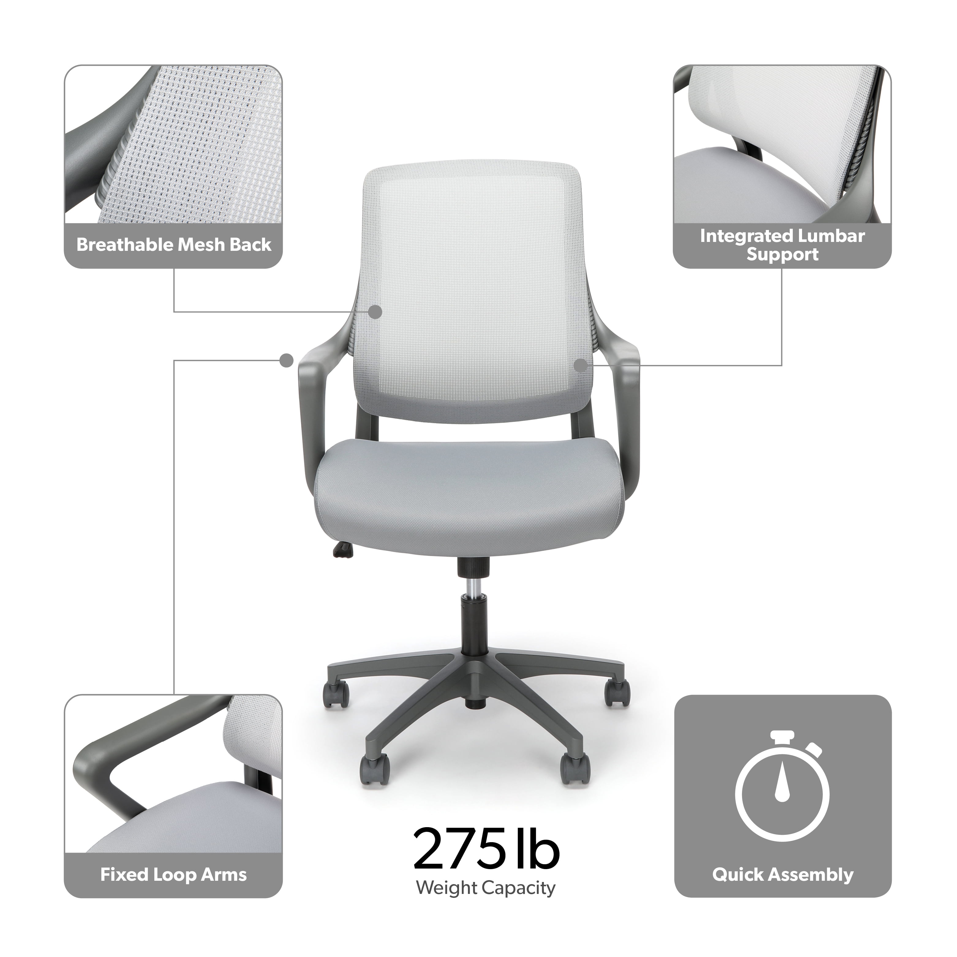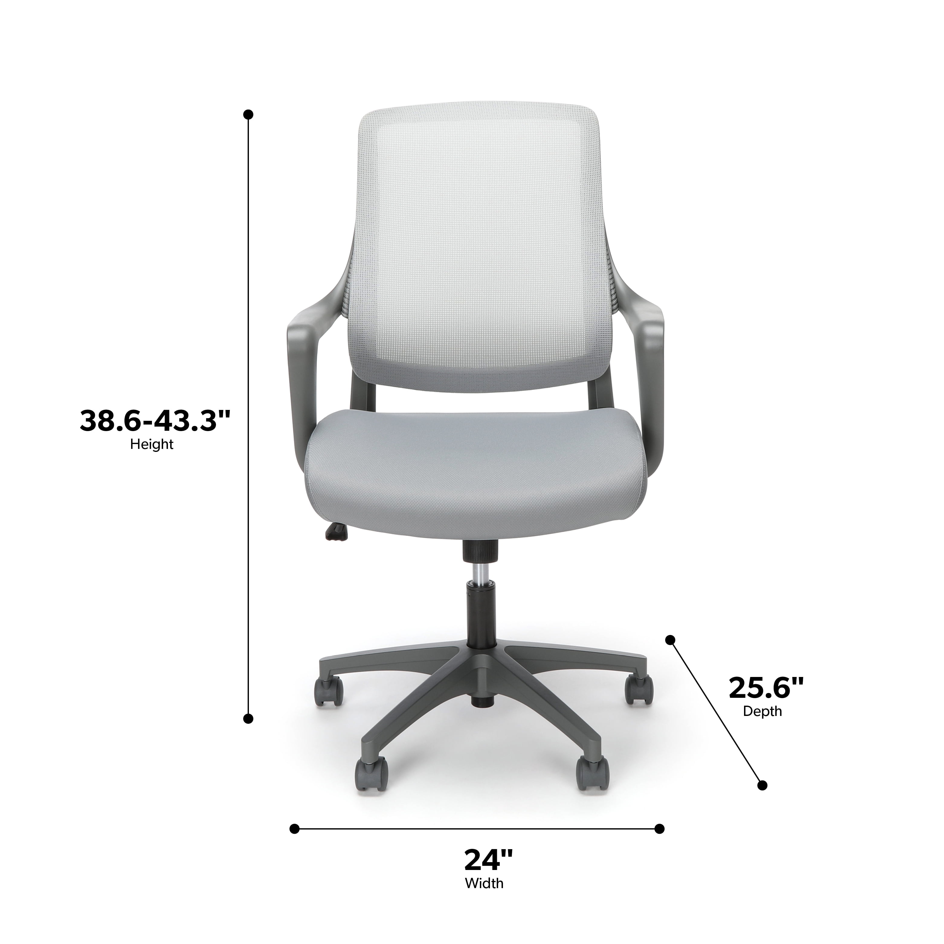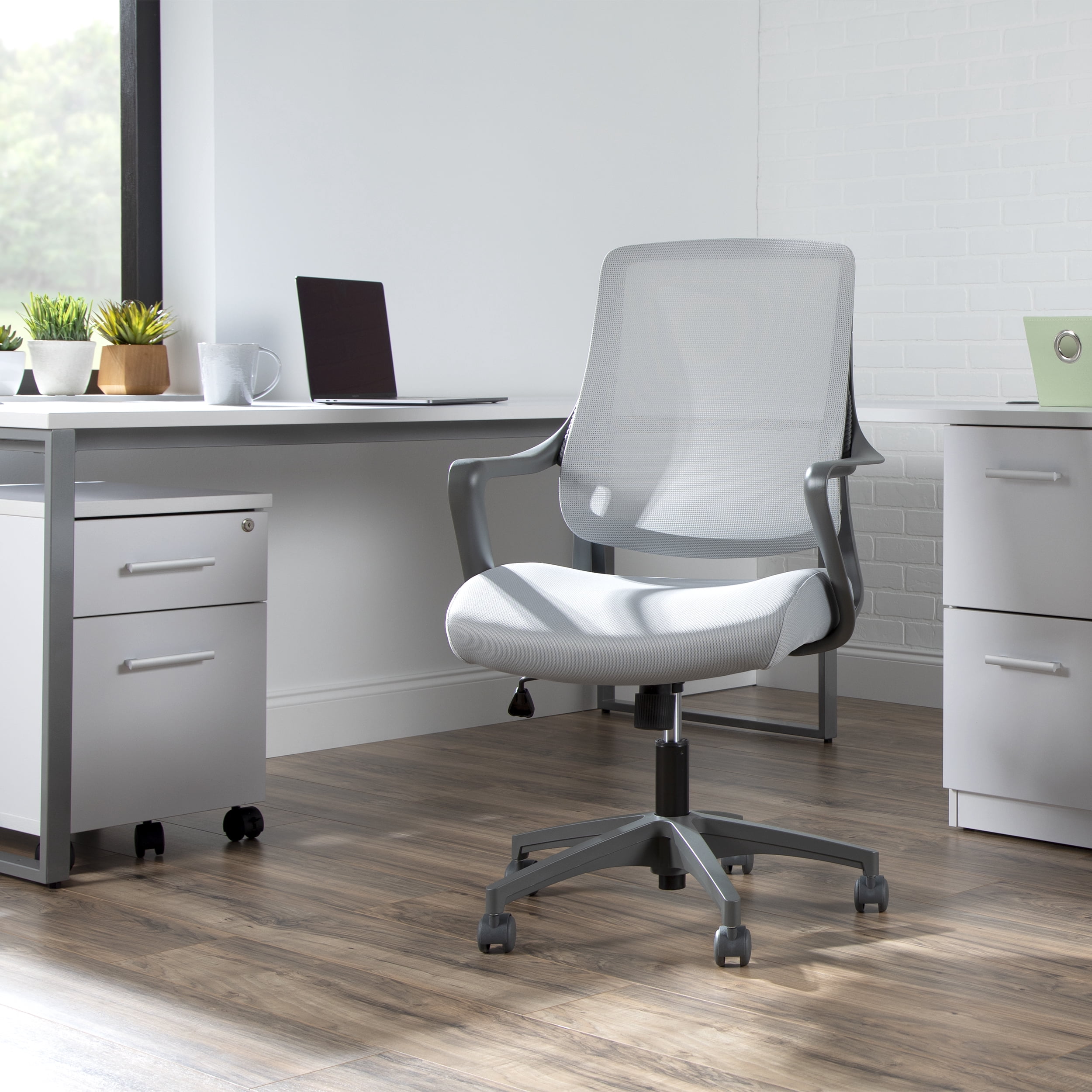 Ergonomic design with multiple flex points for personalized support Mesh back promotes circulation for a comfortable experience in any climate The computer chair features fixed loop arms that provide additional upper body support The desk chair features an integrated lumbar support to help alleviate pressure on your spine This chair features an ergonomic frame that provides upper back support This computer chair can be easily assembled within 20 minutes Center-tilt mechanism rotates the seat back into a comfortable reclining position Tilt tension controls the rate and ease of recline, ensuring that you don’t recline too fast Pneumatic height adjustment allows you to adjust chair to your ideal height The chair features a five-star base that is molded from reinforced resin and has a 360-degree swivel that provides total freedom of movement A full BIFMA rating means that you are investing in a product that meets strict standards for performance This light task chair features a 275 lb weight capacity and is backed by the HON Basyx Limited 5-Year Warranty