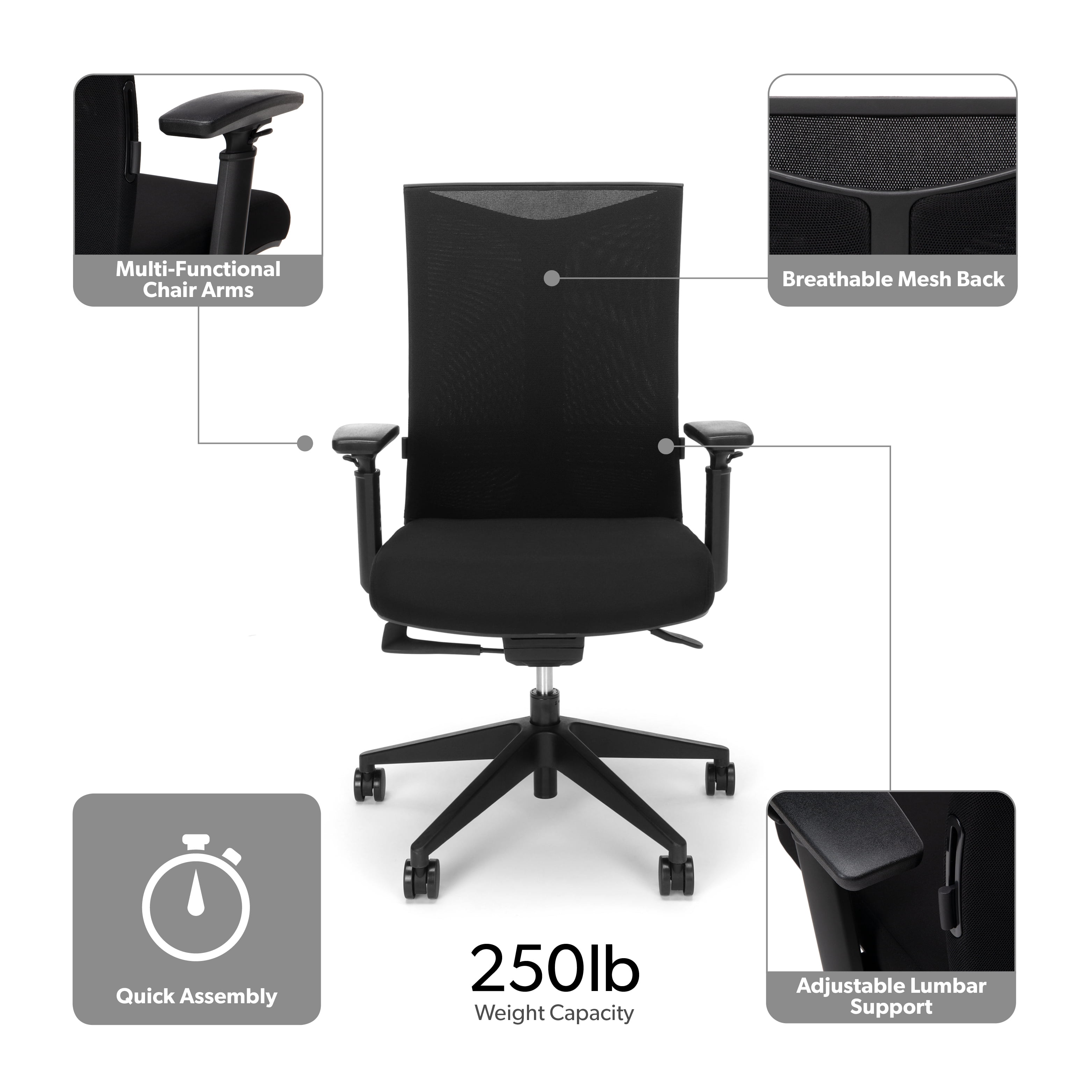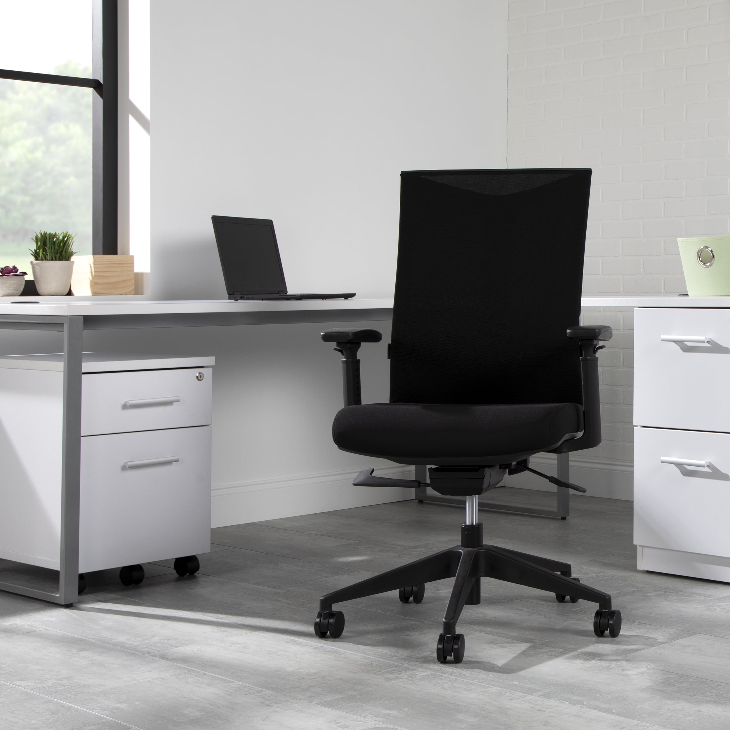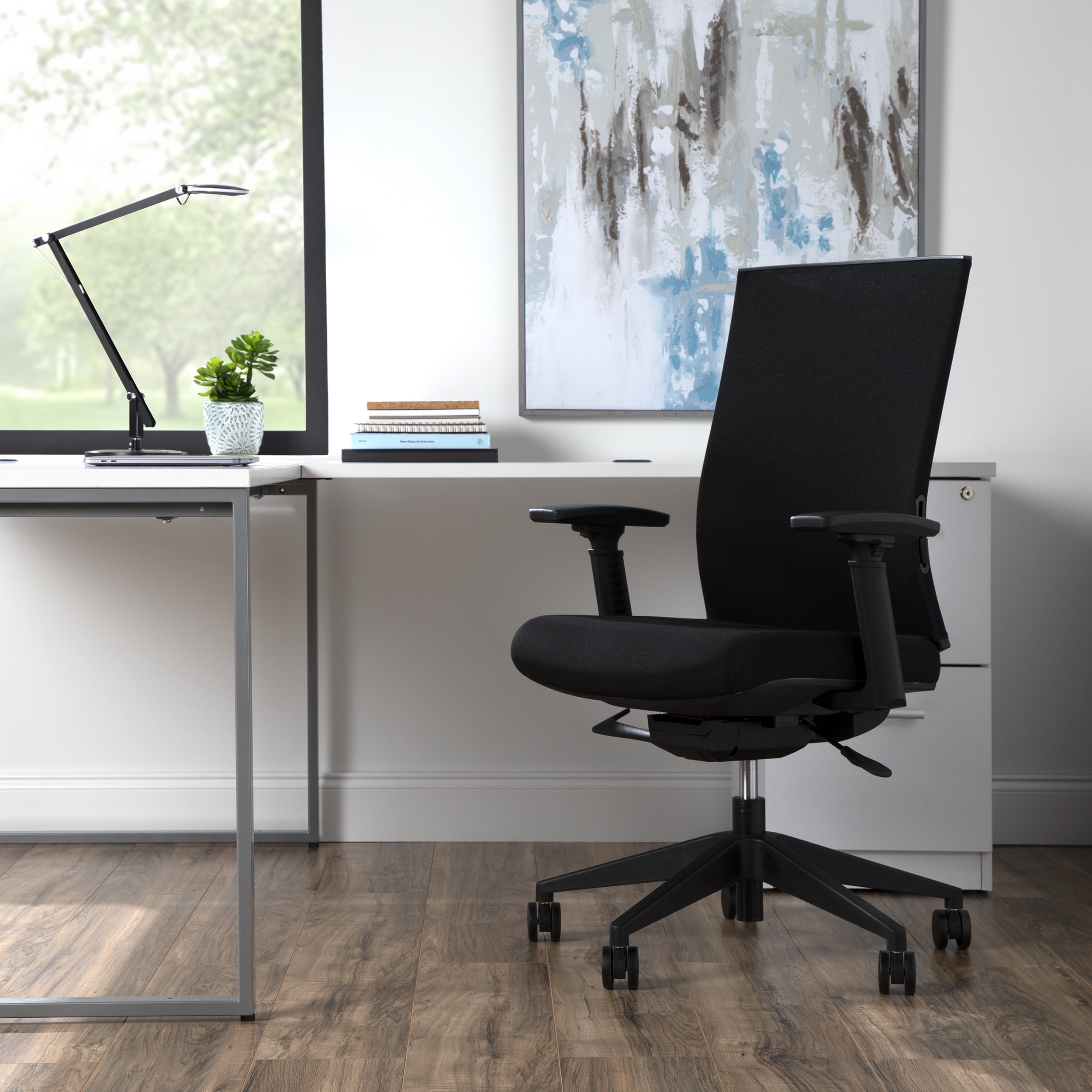 Attractive, trend-right chair design brings an air of sophistication to your conference room or corner office Mesh back, with its refined design flare, promotes air circulation for a comfortable experience in any climate The computer chair features height adjustable arms with width adjustable arm pads that provide personalized comfort The desk chair features an adjustable lumbar support to help alleviate pressure where needed This office chair can be easily assembled within 20 minutes Weight activated tilt control makes intuitive auto adjustments for you, so you can focus on your task at hand The task chair comes with seat slide which adjusts the seat depth for users of varying heights Pneumatic height adjustment allows you to adjust chair to your ideal height The 60mm casters are built to withstand your busy workweek The chair features a five-star base that is molded from reinforced resin and has a 360-degree swivel that provides total freedom of movement A full BIFMA rating means that you are investing in a product that meets strict standards for performance This task chair features a 250 lb weight capacity and is backed by the HON Basyx Limited 5-Year Warranty