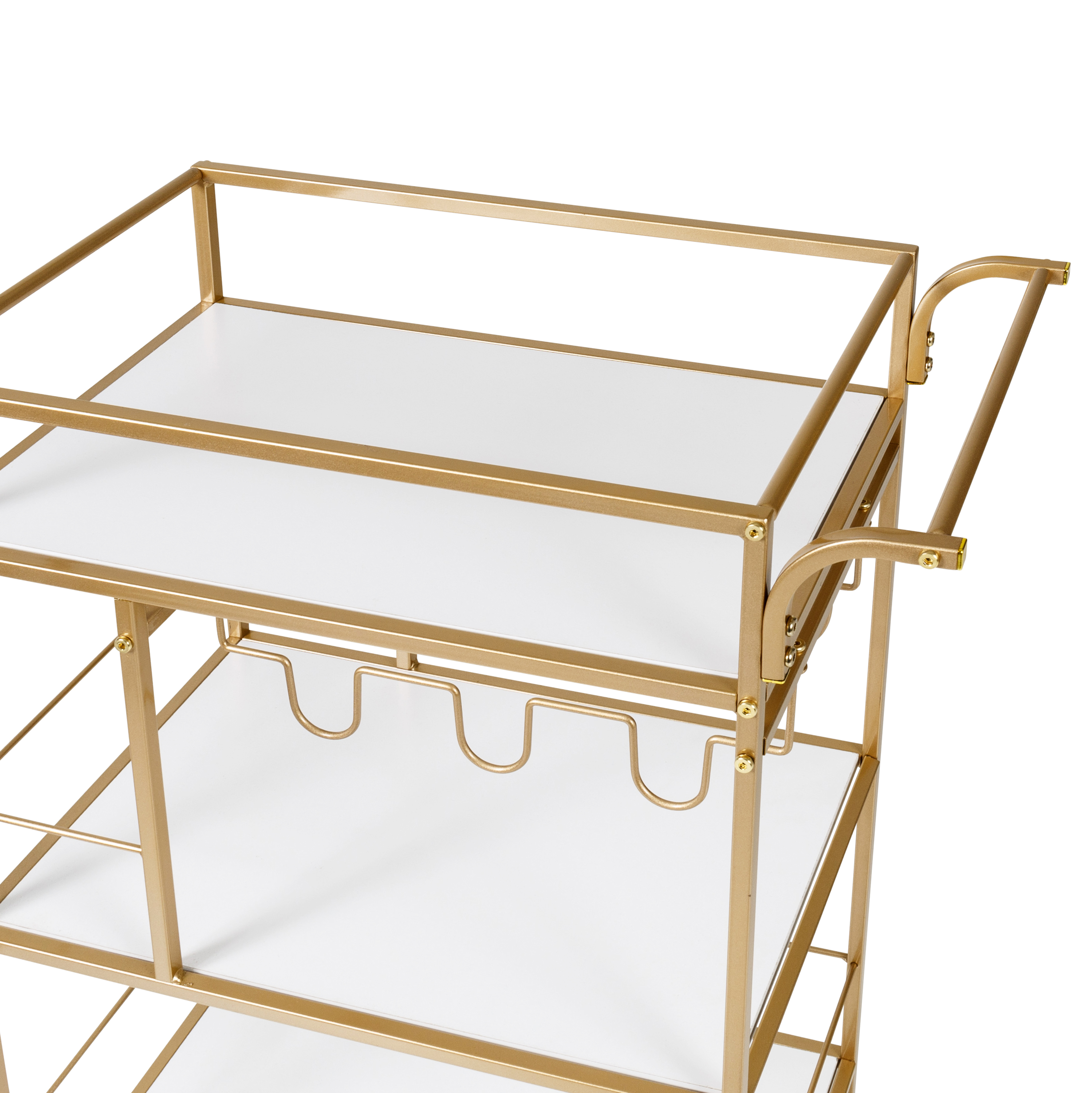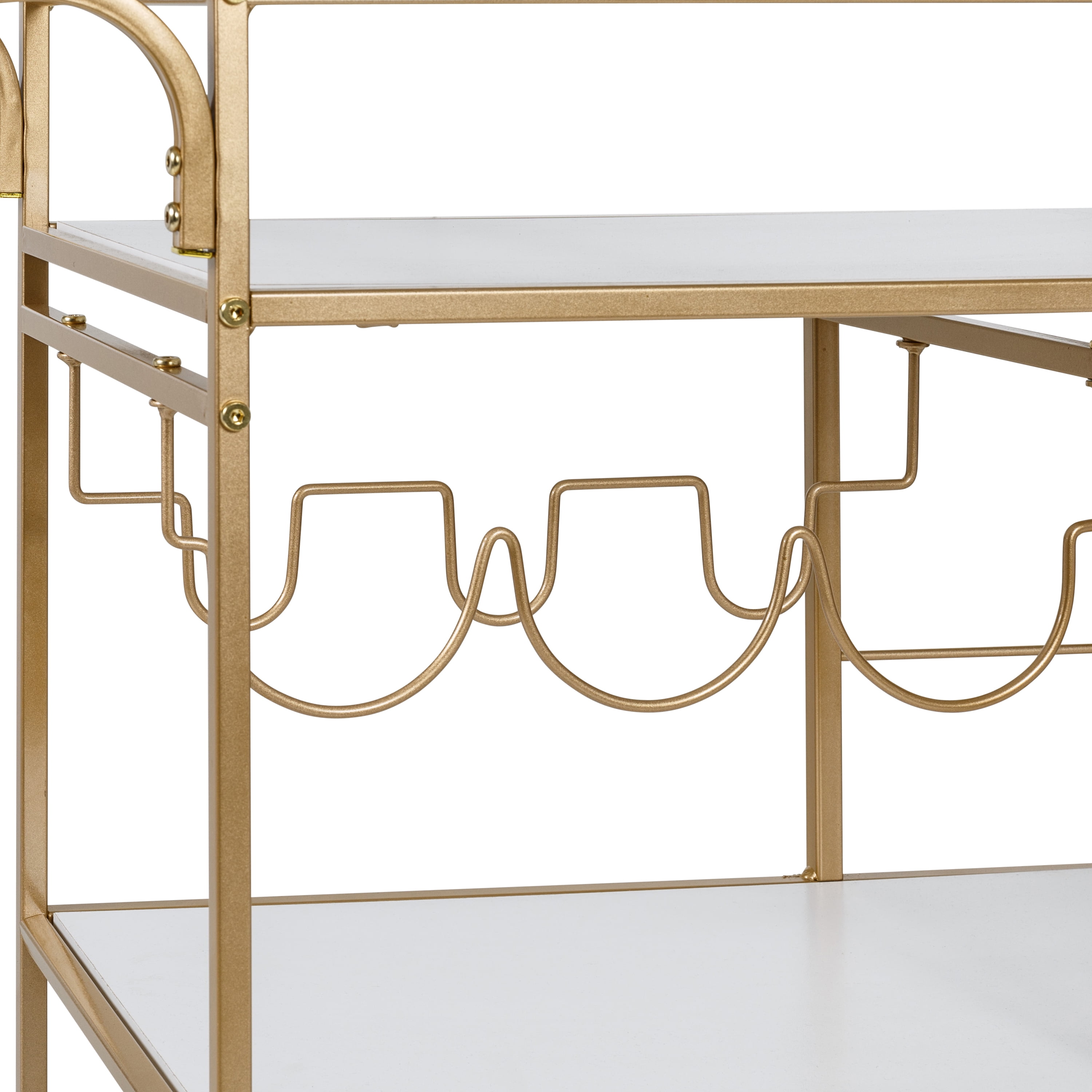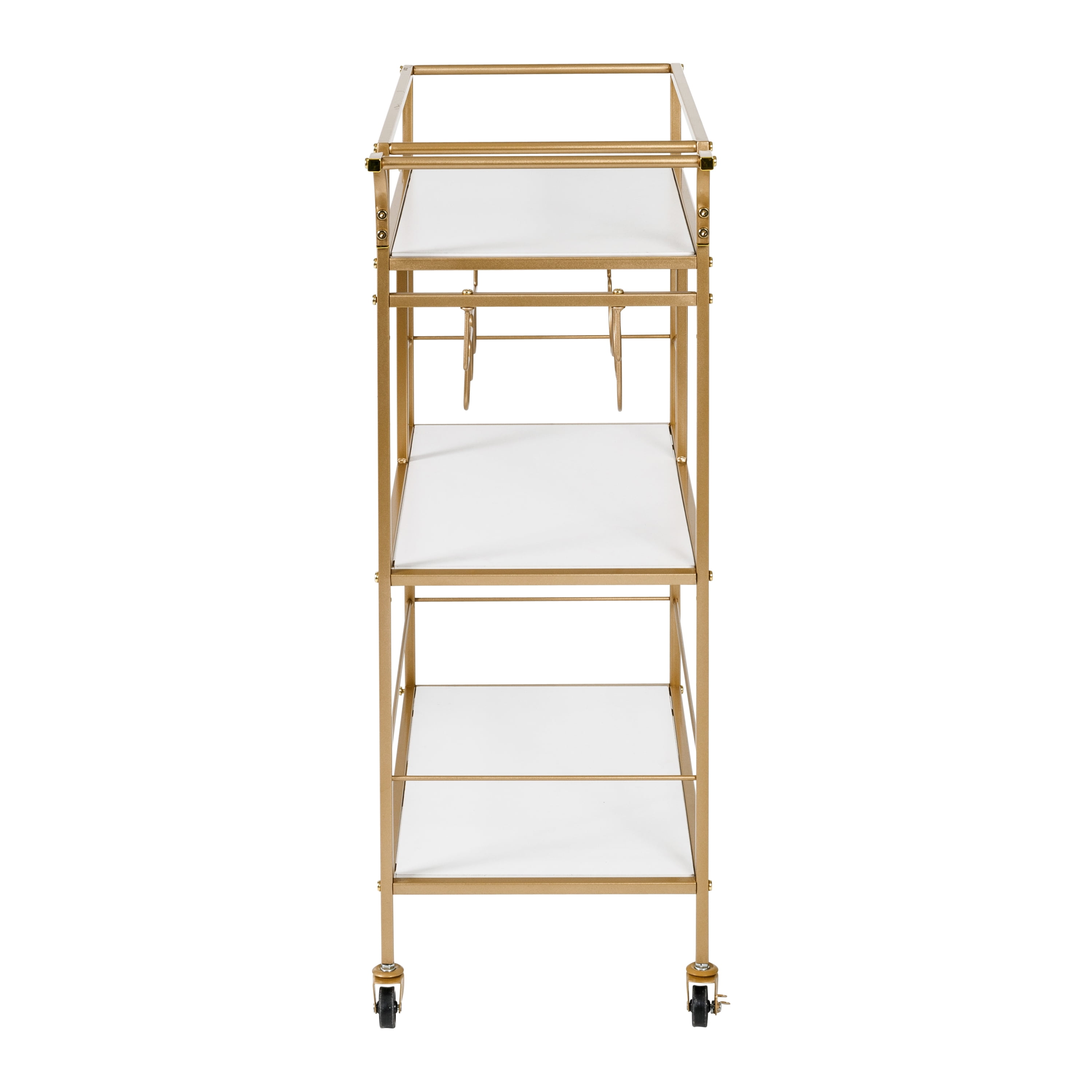 Honey-Can-Do 3-Tier Metal and Particle Board Rolling Bar Cart, Gold/White