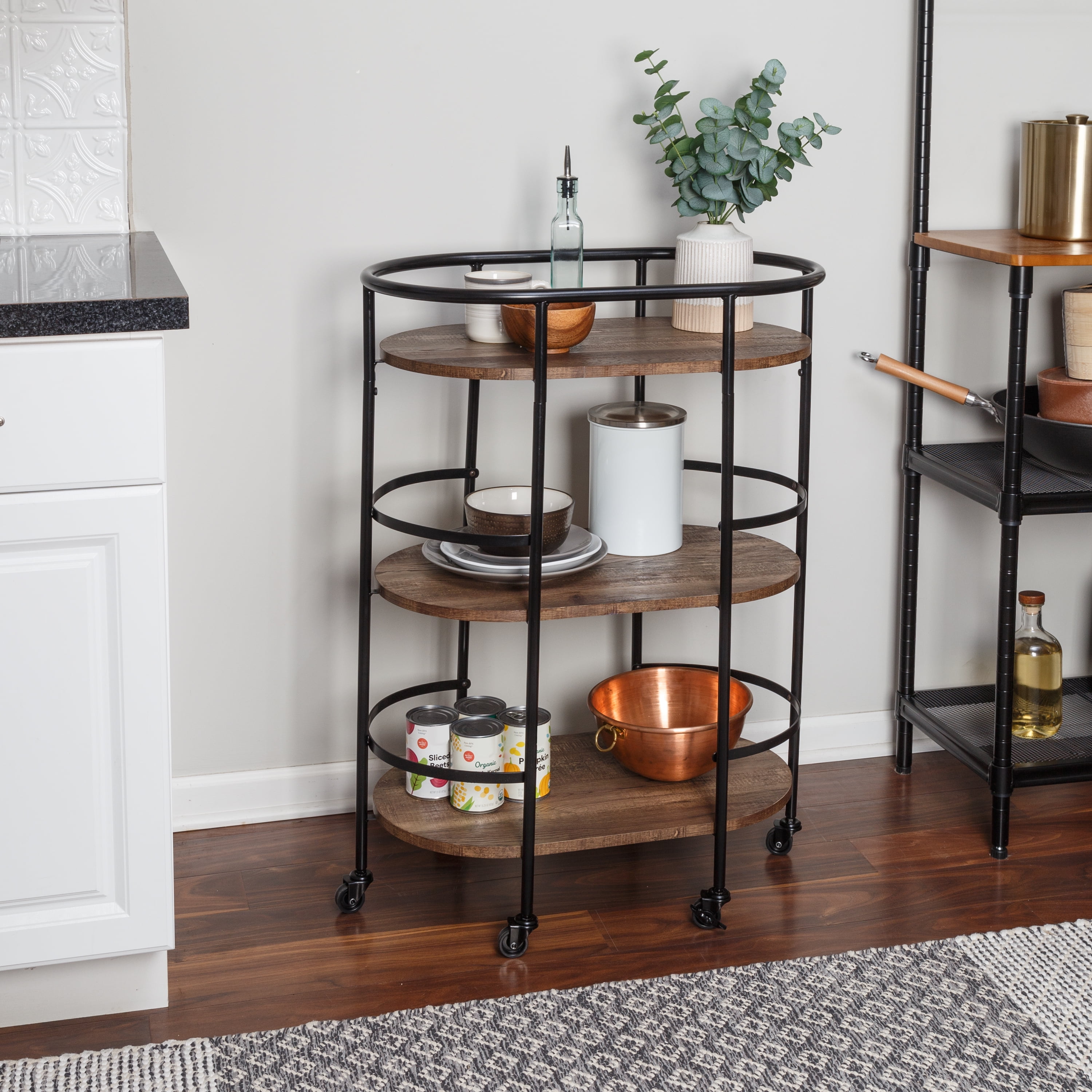 Honey-Can-Do 3-Tier Steel and Particle Board Rolling Oval Bar Cart, Rustic Brown/Black