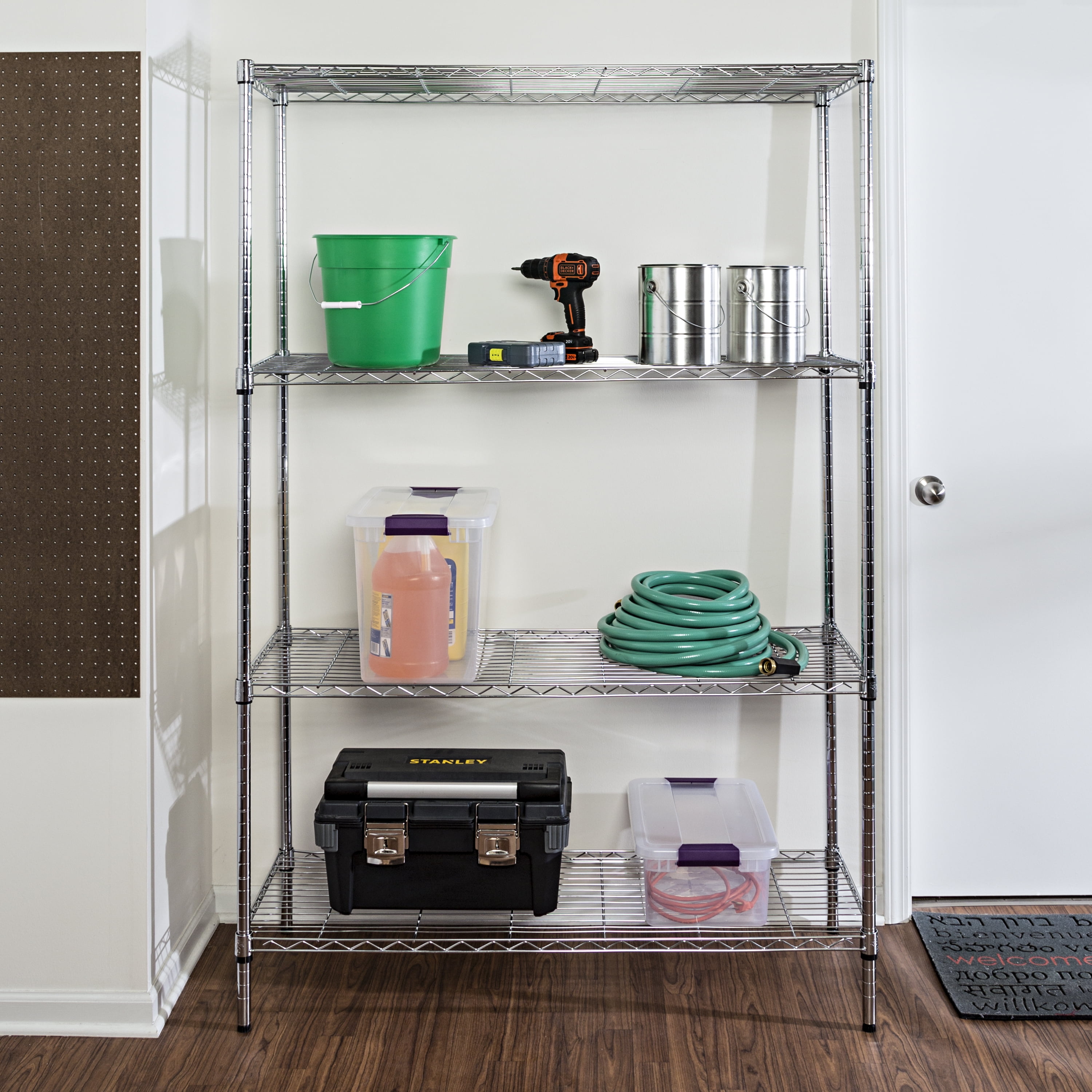 4-tier shelf means maximum storage opportunities in any room 350-pound capacity per shelf Brings kitchen, garage or basement storage ideas to life Adjustable shelf heights provide configuration versatility NSF-certified: approved for commercial grade kitchen use Easy no-tool assembly Dimensions: 48″W x 72″H x 18″D Age Group: Adult Honey-Can-Do SHF-09687