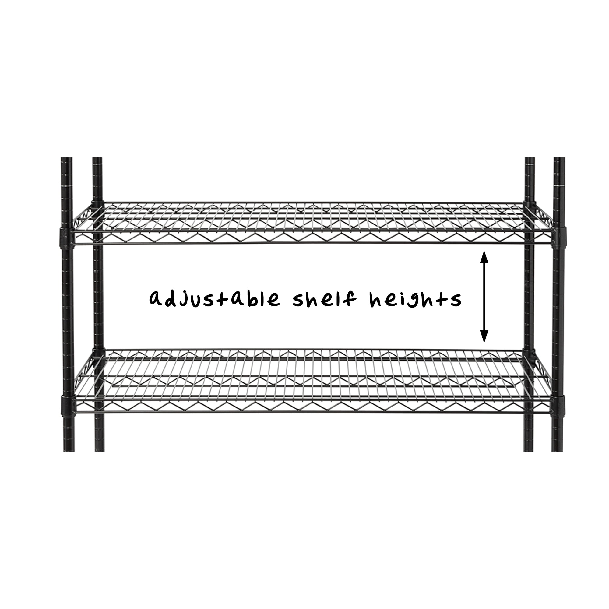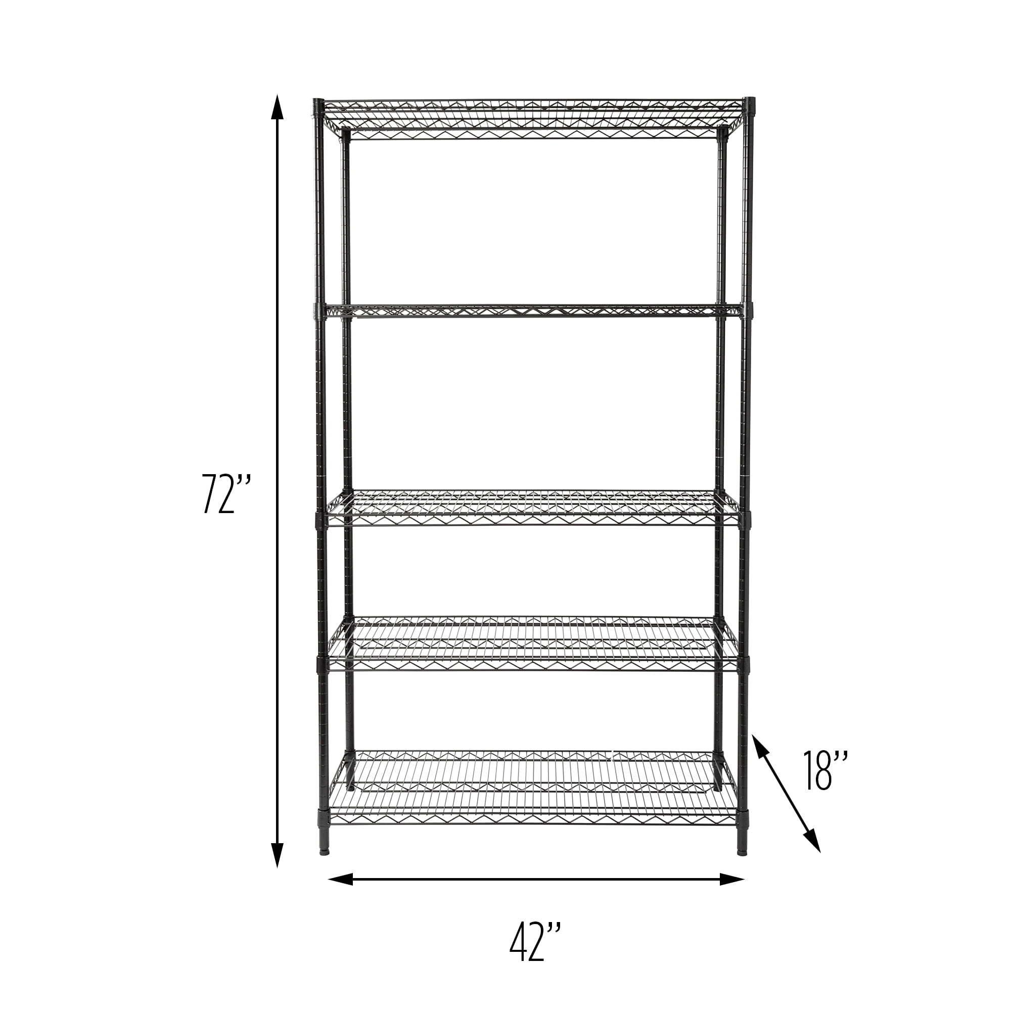 5-tier shelf means maximum storage opportunities in any room 800-pound capacity per shelf Brings garage, basement or kitchen storage ideas to life Adjustable shelf heights provide configuration versatility Heavy-duty wheels make it easy to move NSF-certified: approved for commercial grade kitchen use Easy no-tool assembly Dimensions: 42″ W x 18″ D x 72″ H Age group: Adult Honey-Can-Do
