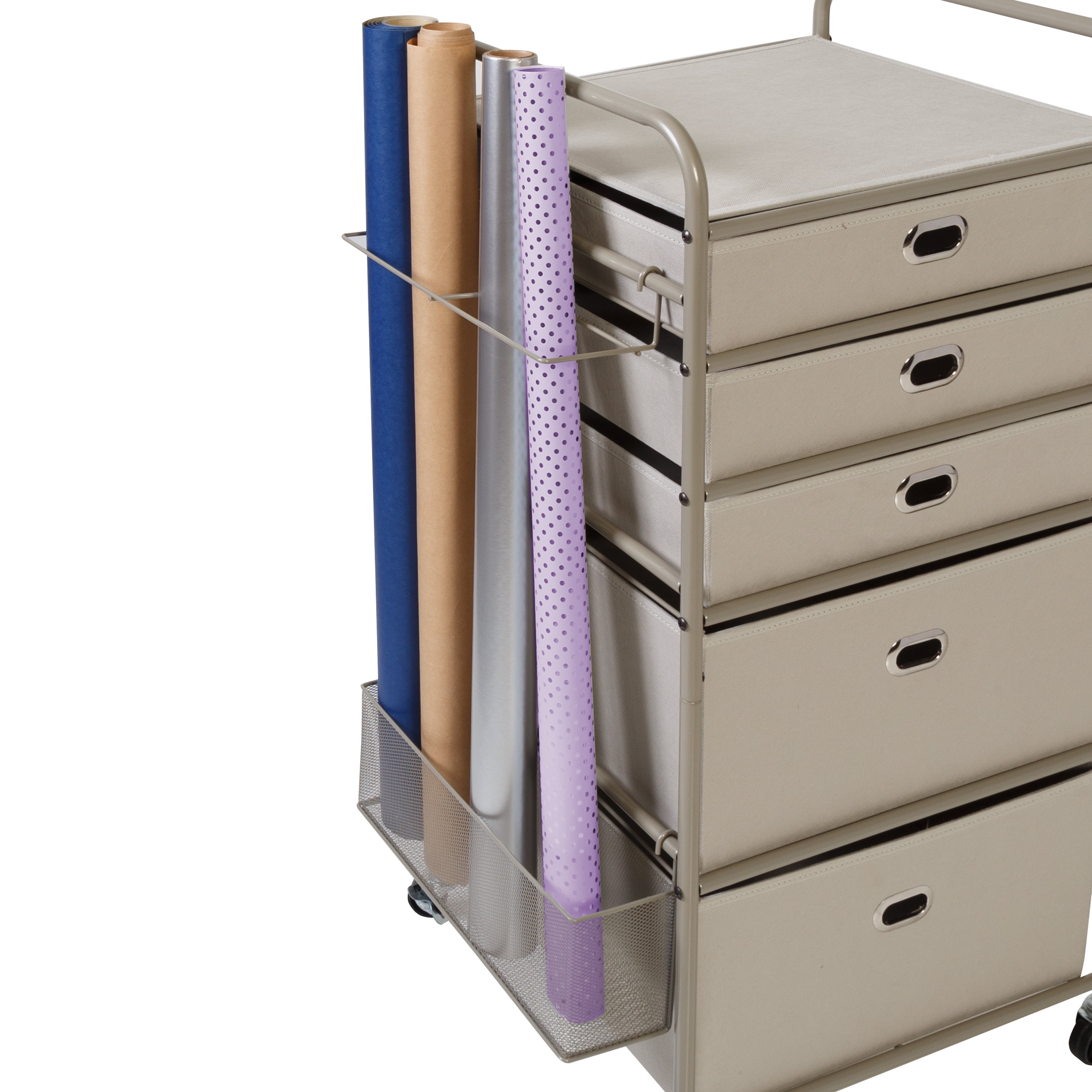 Honey-Can-Do 5-Tier Steel and Fabric Rolling Gift Wrap or Craft Storage Cart, Gray/Silver
