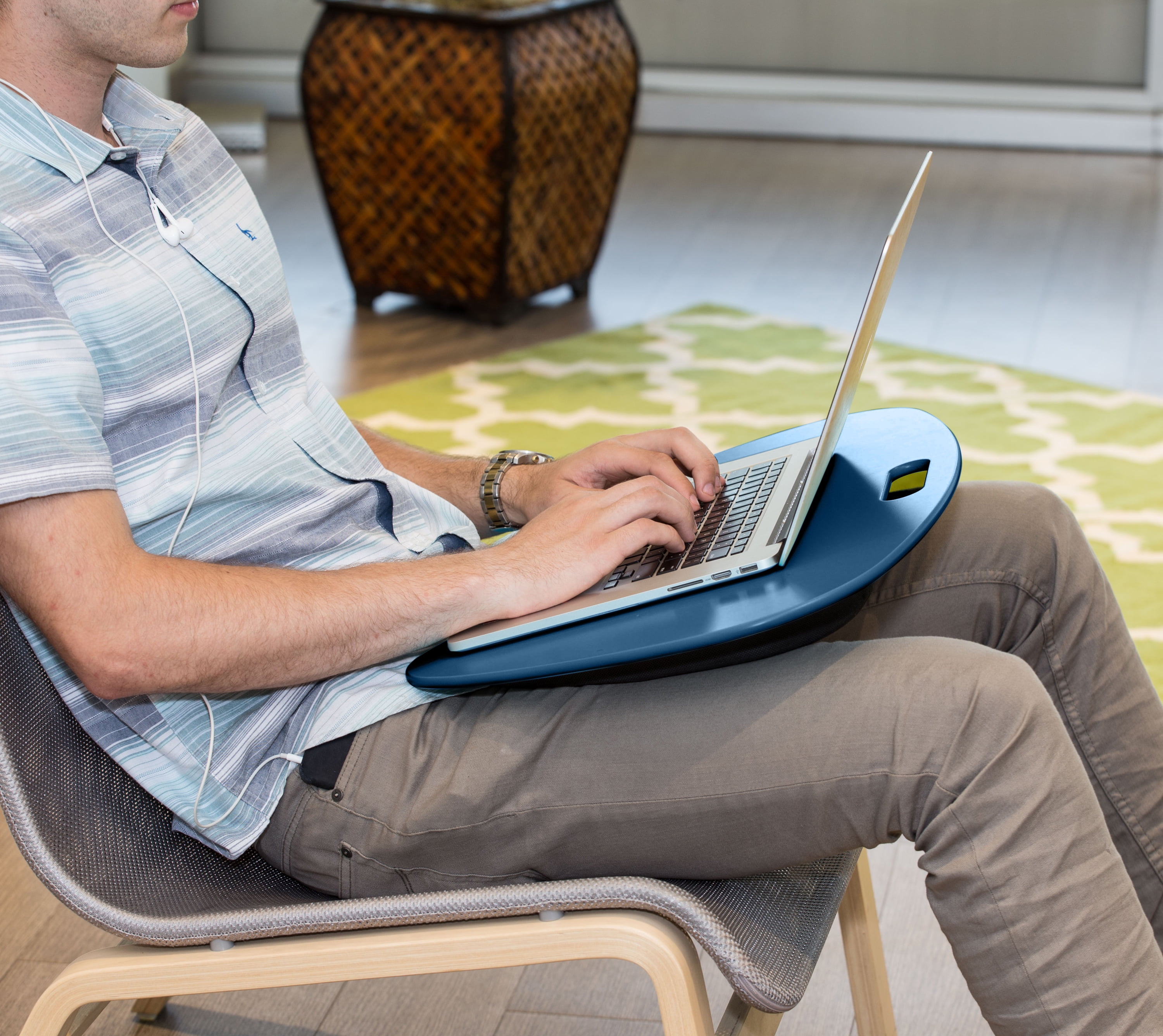 Honey-Can-Do TBL-06321 Portable Lap Desk, Indigo Blue. This versatile lap table has a large, solid surface that is perfect for laptops, writing and reading. The soft and comfortable cushion is wedge-shaped for ergonomic typing. The space-saving design includes a built-in carrying handle that is comfortable to grip.