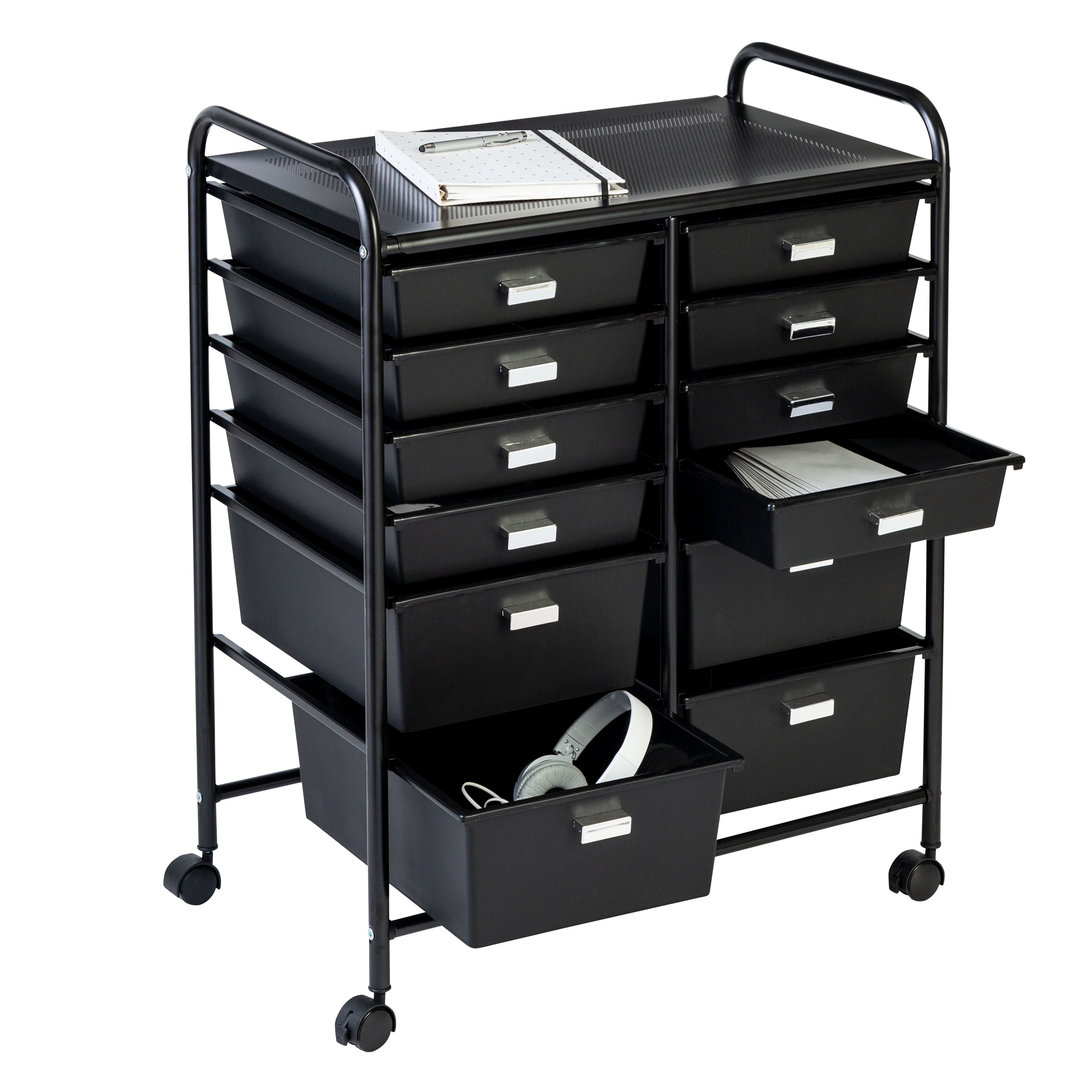 Honey Can Do Metal Rolling Storage Cart with 12 Plastic Drawers, Black