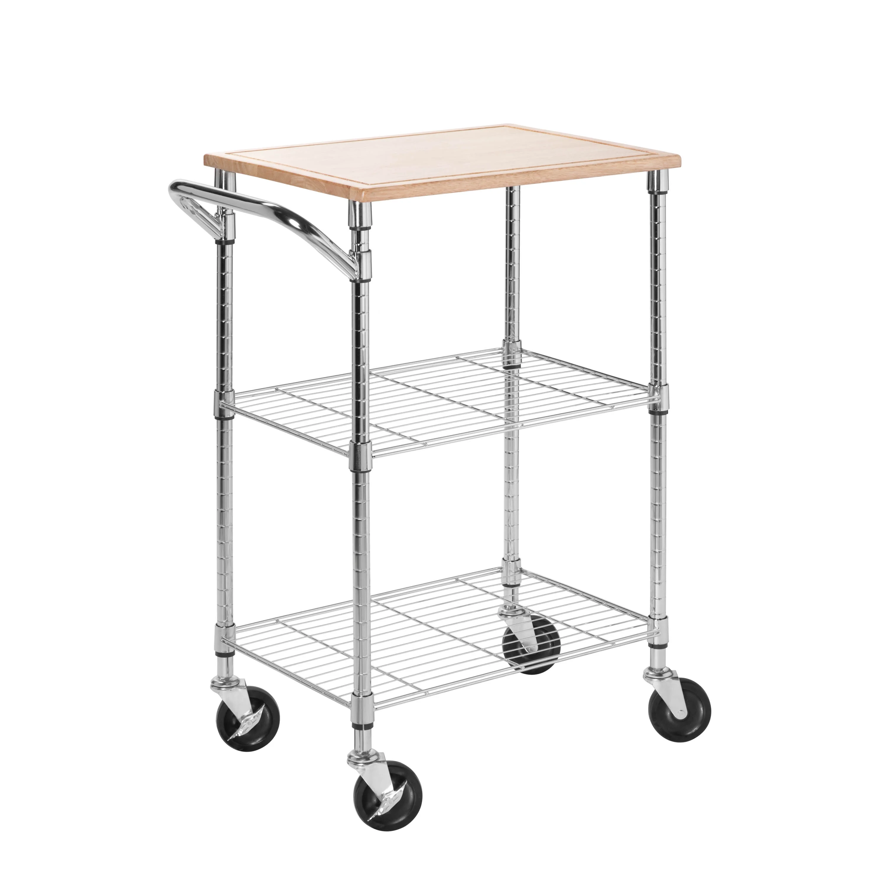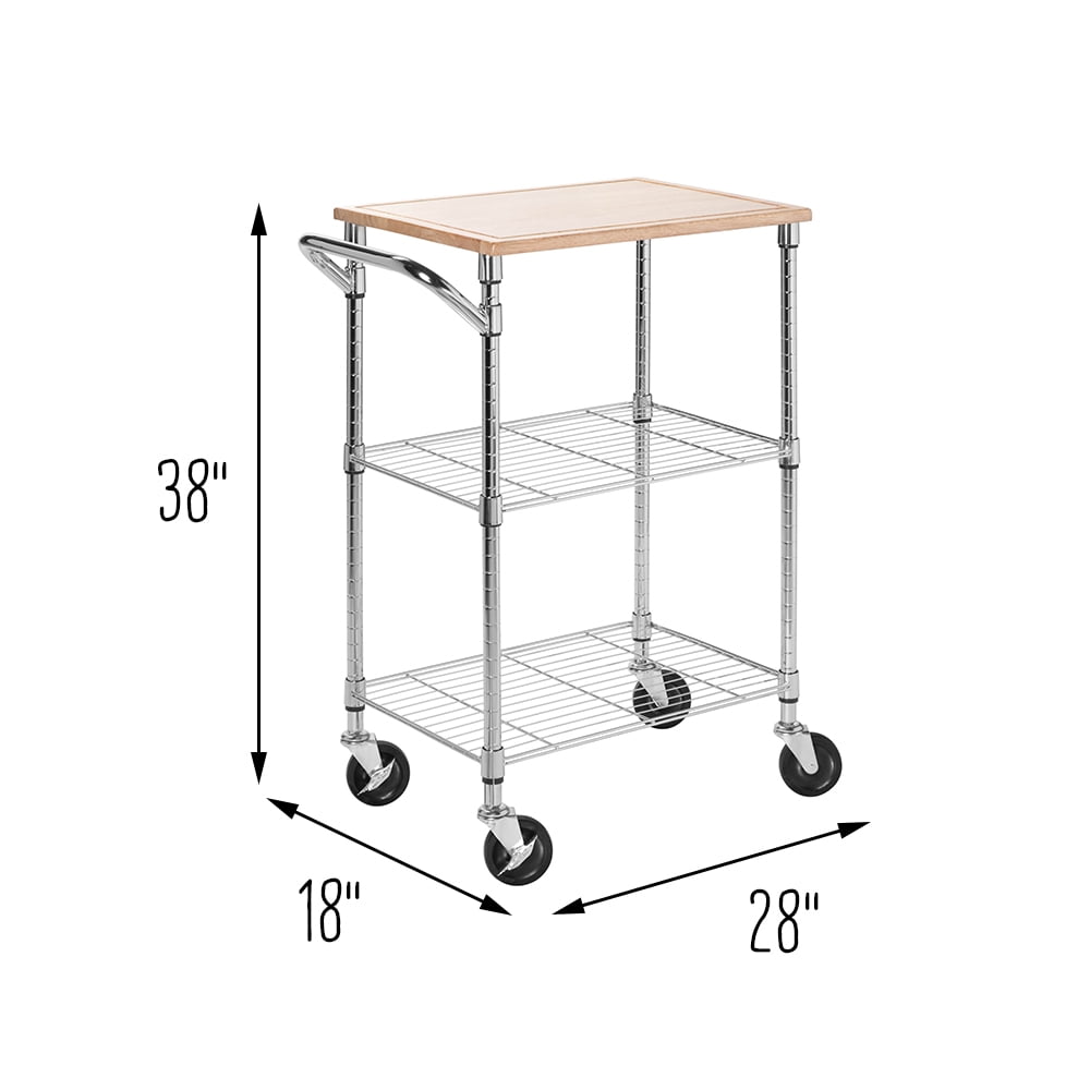 Honey-Can-Do Steel 2-Tier Rolling 28.5″ Kitchen Storage Cart with Cutting Board Top, Chrome/Natural