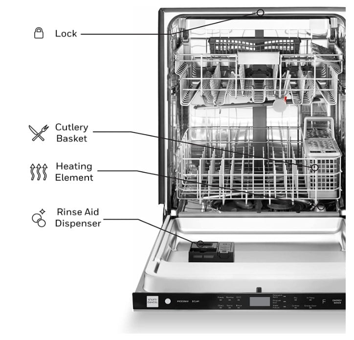 8 PLACE SETTINGS: Racks are suitable to fit 8 place settings of dishes. MULTIPLE FUNCTIONS: There are 6 washing programs to choose from- heavy, normal, eco, glass, rapid, and rinse. DURABLE TUB: The tub is made of stainless steel for better efficiency performance. ENERGY STAR: Low energy consumption according to Energy Star standards. TIMER: Up to 24 hour delay start for you added convenience. Stainless steel exterior with stainless steel tub Color: Stainless Steel