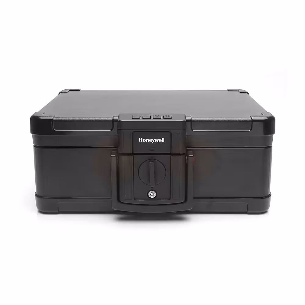The Honeywell security safe product line provides security for your valuables and essential documents while affording you the peace of mind that comes from being prepared in the event of unauthorized tampering or an invasion of your home or office. The Honeywell 5207 large digital dial steel security safe, 2.73 cubic feet interior storage capacity, features our digital dial Lock technology, that pairs a programmable 5 number (2-digit) digital combination, displayed on an LED screen, with a companion key Lock, for added security against theft and burglary. The dual Lock comes with 2 companion entry keys and 2 override access keys, ensuring you always have access to your valuables, if electronics fail or you forget your pass code. The 5207 includes predrilled mounting holes and a bolt-down kit for greater security. Protect your valuables with this secure safe that features 2 live locking door bolts, two removable shelves for storage convenience, concealed hinges and recessed door to prevent thieves from prying, in the unfortunate event of a robbery, carpeted interior, flat bottom doorway and a durable, scratch resistant powder coat finish. All Honeywell safes are backed by an industry leading 5-year warranty.