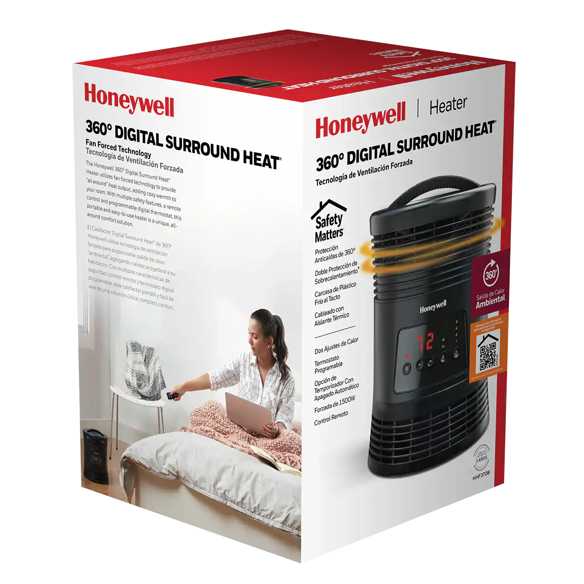 The Honeywell 360° Surround Digital Indoor Heater provides energy savings, excellent safety features and the ability to control your comfort all at a reasonable price. Designed to provide all-around warmth, this 360° portable heater is perfect for small to medium sized rooms and offers superior all-around room heating. The addition of two heat setting modes and an adjustable thermostat allow for complete control over the heating process. Plus, with a Honeywell space heater, you can save up to $276* in heating costs this year. By turning down your whole house thermostat a few degrees and heating just the room you are in, a Honeywell air heater can help you save money while providing soothing warmth. That’s Honeywell Heater peace of mind.