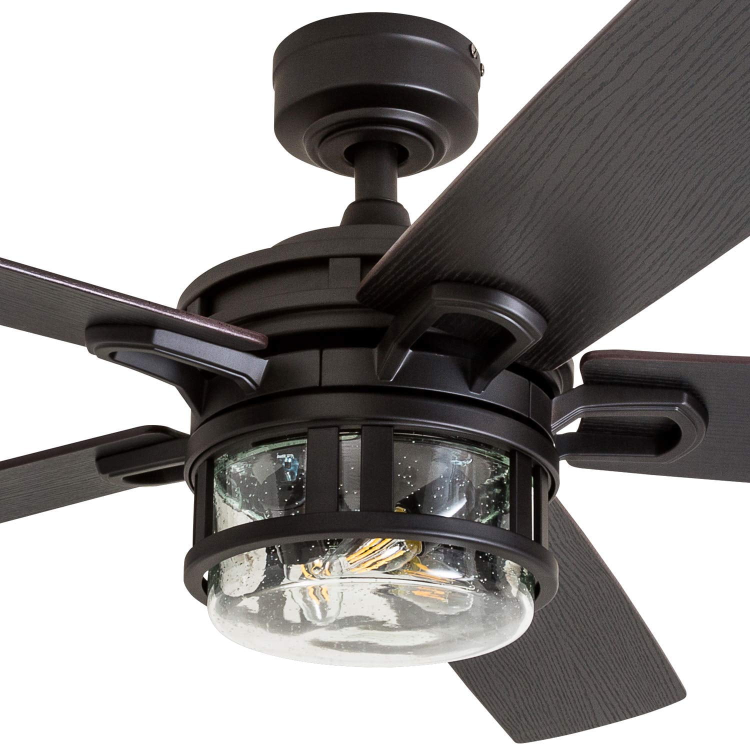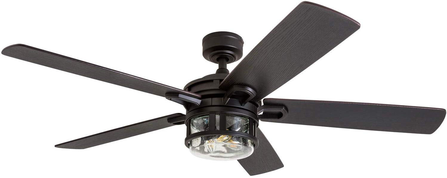 The Honeywell Bontera is a captivating 52-inch ceiling fan that really brings the craftsman touch in with every detail. The lighting is designed with beautifully crafted clear seeded glass surrounded by a simple industrial casing. The deep bronze finish is highly complimented by the reversible rough pine/northern ebony blades giving this fan a very rich and wholesome allure. The Bontera is sure to illuminate your area and leave you in awe. The down rod is 4 inches in length with an accompanying 54” lead wire should you wish to get a longer down rod. The Bontera is easy to install and comes with 3 different mounting options – close, standard, or angled. Each blade is reversible as well as the motor housing, further enabling it to not only cool during the summer but help warm up during the winter. Each Honeywell ceiling fan is backed by a limited lifetime. This ceiling fan’s size makes it the perfect match for any large to medium size room. Offering a timeless look, adequate air flow and superior quality, just like all else Honeywell, you’ll be able to rely on this fan for years to come.
