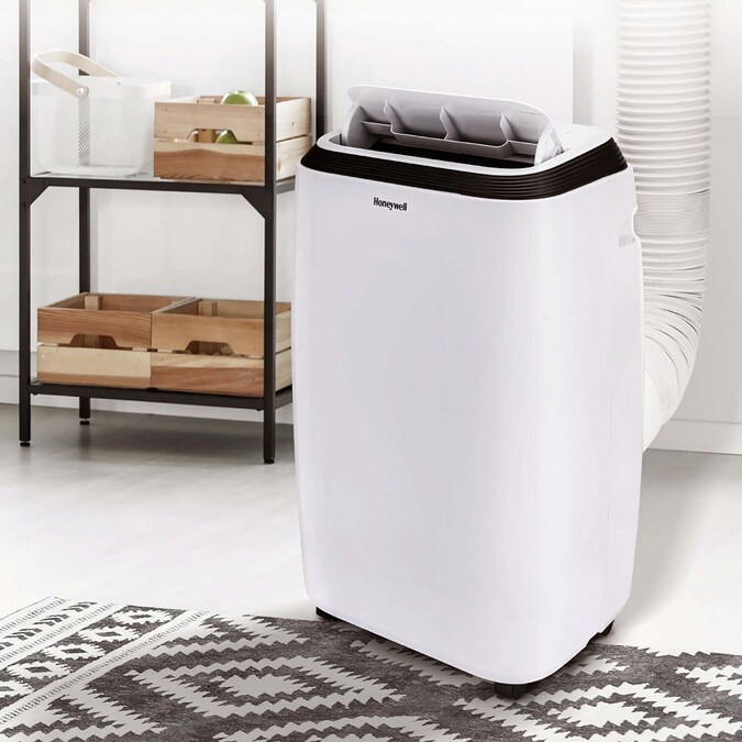 • The Honeywell 8,000 BTU DOE 115-Volt White Vented Portable Air Conditioner efficiently cools small rooms up to 500 sq ft