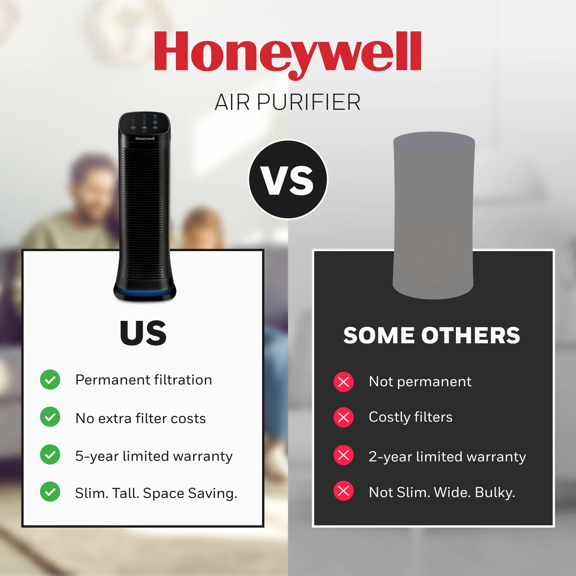 TOWER AIR PURIFIER – The Honeywell HFD320 AirGenius 5 Air Purifier helps provide cleaner, fresher air. Recommended for large rooms (250 sq. ft.), it helps capture up to 99.9% of microscopic airborne particles.* HELPS REDUCE ALLERGENS – This quiet air purifier has 5 levels of cleaning power and patented ifD technology to help capture the following microscopic airborne particles: dust, pollen, pet dander, dust mite debris and smoke.* EFFECTIVE AIR CLEANING AND CIRCULATION – This Honeywell Air Purifier for home filters and circulates air up to 4.8 times an hour in a large 250 sq. ft. room**. Plus, it features quiet operation, floor light accents and oscillation. WASHABLE FILTERS – Home air purifier includes a permanent, washable filter and a permanent pre-filter for easy maintenance***. You’ll never need to purchase an additional filter. Just remove and wash your existing filter and you’ll be good to go! ENERGY EFFICIENT – This Honeywell HEPA Air Purifier earned the ENERGY STAR label by meeting strict energy efficient guidelines set by the U.S. EPA.