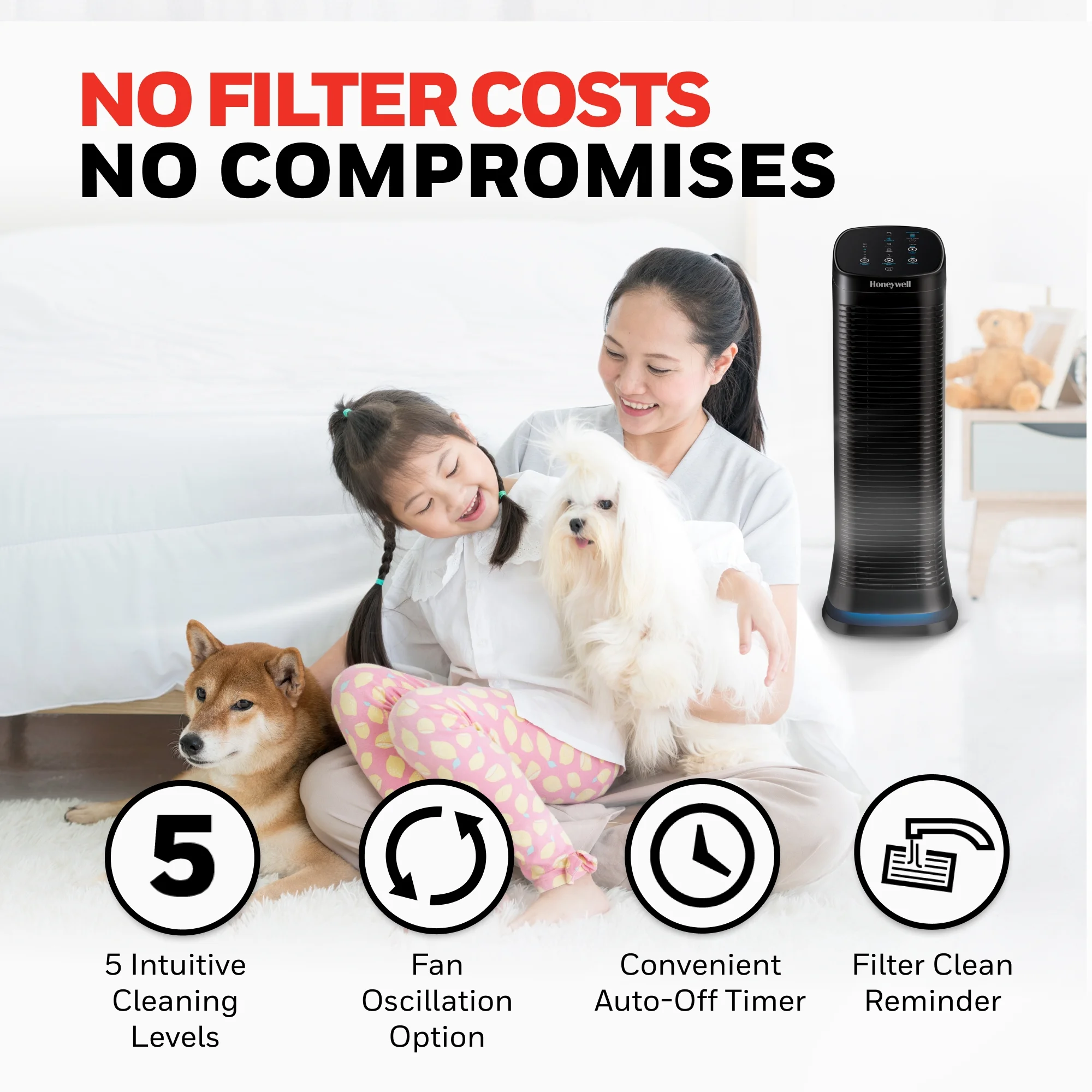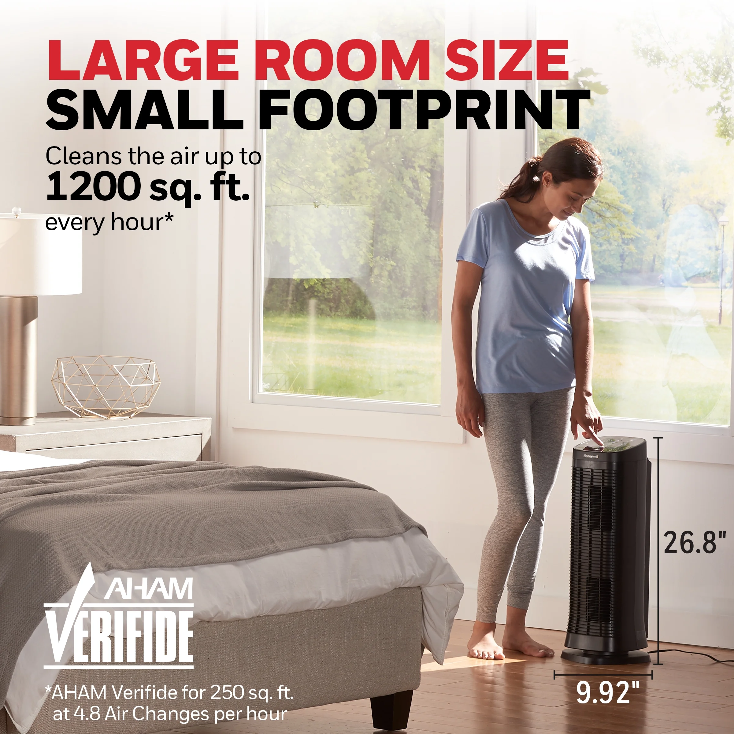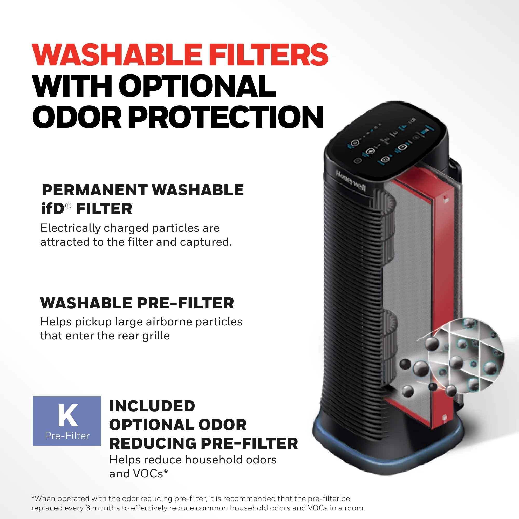 Honeywell Air Purifier with Permanent Washable Filter for Home, 1208 Sq. Ft. Rooms in 1 hour, Reduces Dust, Pet Dander, Smoke, Black, HFD320