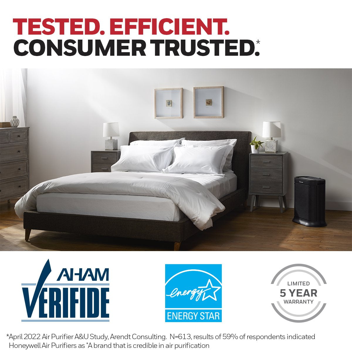 HEPA Filtration: helps capture up to 99.97% of the following microscopic airborne non-living allergens and particles: dust, pollen, pet dander, dust mite debris and smoke* Activated carbon pre-filter helps capture large airborne particles and reduces odors and VOCs Use only Certified Honeywell HEPA replacement Filters and Genuine Honeywell Pre-Filters for best results. Recommended filter replacement: True HEPA R Filter 1x/yr. Odor Reducing Pre-Filter A 4x/yr. Auto-Off timer option at 2, 4, or 8 hours. Dimmer option for control panel lights Ideal for wildfire season: Wildfire smoke can impact the air quality where you live, even if you don’t live anywhere near the fires themselves. Because smoke contains extremely small particles, air purifiers can help remove some of these particles* from your air. This product earned the ENERGY STAR label by meeting strict energy efficient guidelines set by the U.S. EPA. Room air cleaners have demonstrated the potential for improving air quality and providing health benefits. EPA does not endorse manufacturer claims regarding the degree to which a specific product will produce healthier indoor air.