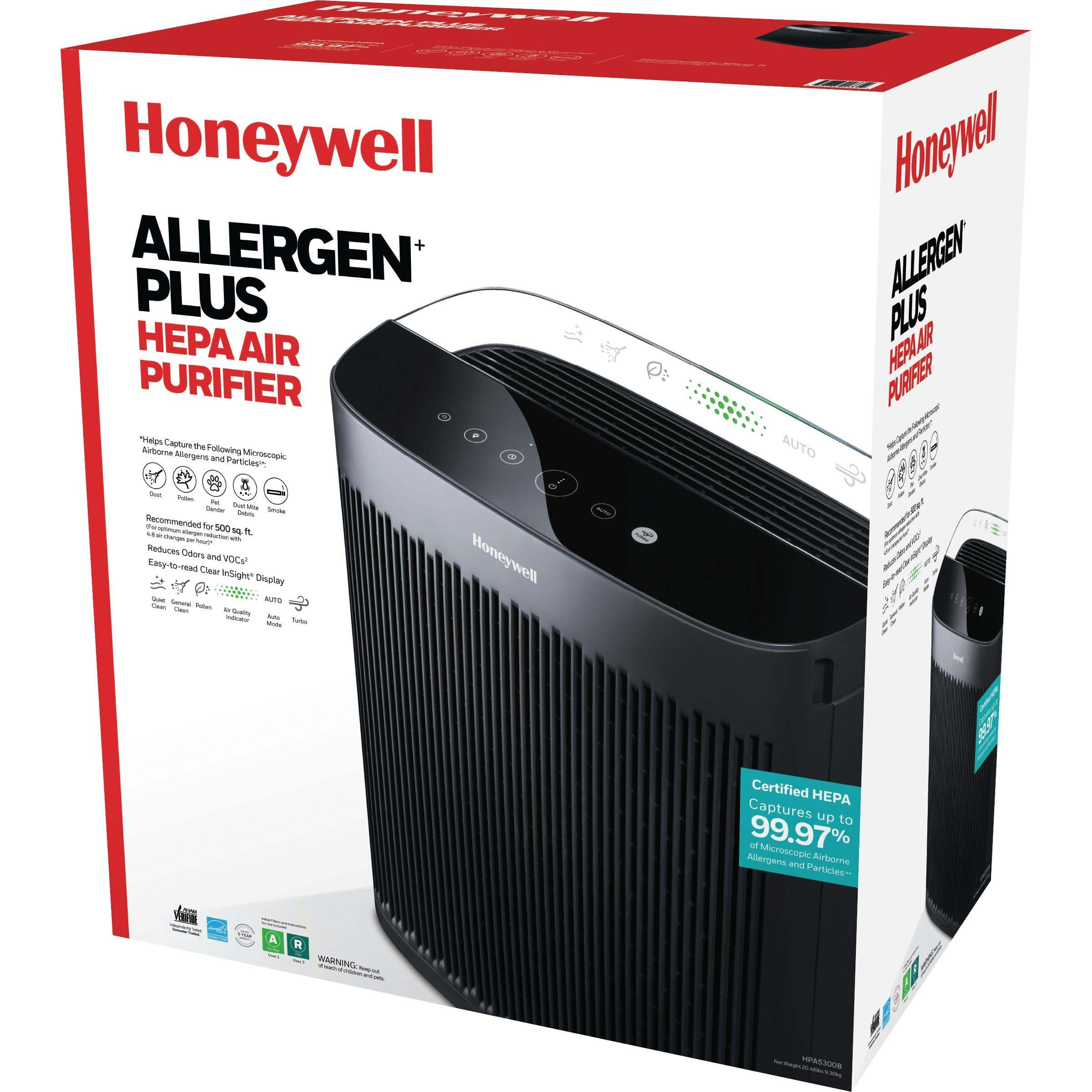 This Honeywell Allergen Plus HEPA Air Purifier console helps provide cleaner, fresher air in Extra-Large rooms of 500 square feet. Includes HEPA Filtration, which helps capture up to 99.97% of microscopic airborne allergens and particles.* It has been independently tested and AHAM Verifide to circulate and filter room air up to 4.8x per hour in a 500 sq. ft room. Use only Certified Honeywell HEPA replacement filters and Genuine Honeywell Pre-Filters for best results. Recommended filter replacement: 3 True HEPA R Filter once a year and 1 Odor Reducing Pre-Filter A every 3 months. This model also accepts an optional Honeywell Enhanced Odor & VOC filter to help tackle specific household odors & VOCS from pets, kitchens, smoke or home renovation (sold seperately). This product earned the ENERGY STAR label by meeting strict energy efficient guidelines set by the U.S. EPA. Room air cleaners have demonstrated the potential for improving air quality and providing health benefits. EPA does not endorse manufacturer claims regarding the degree to which a specific product will produce healthier indoor air.