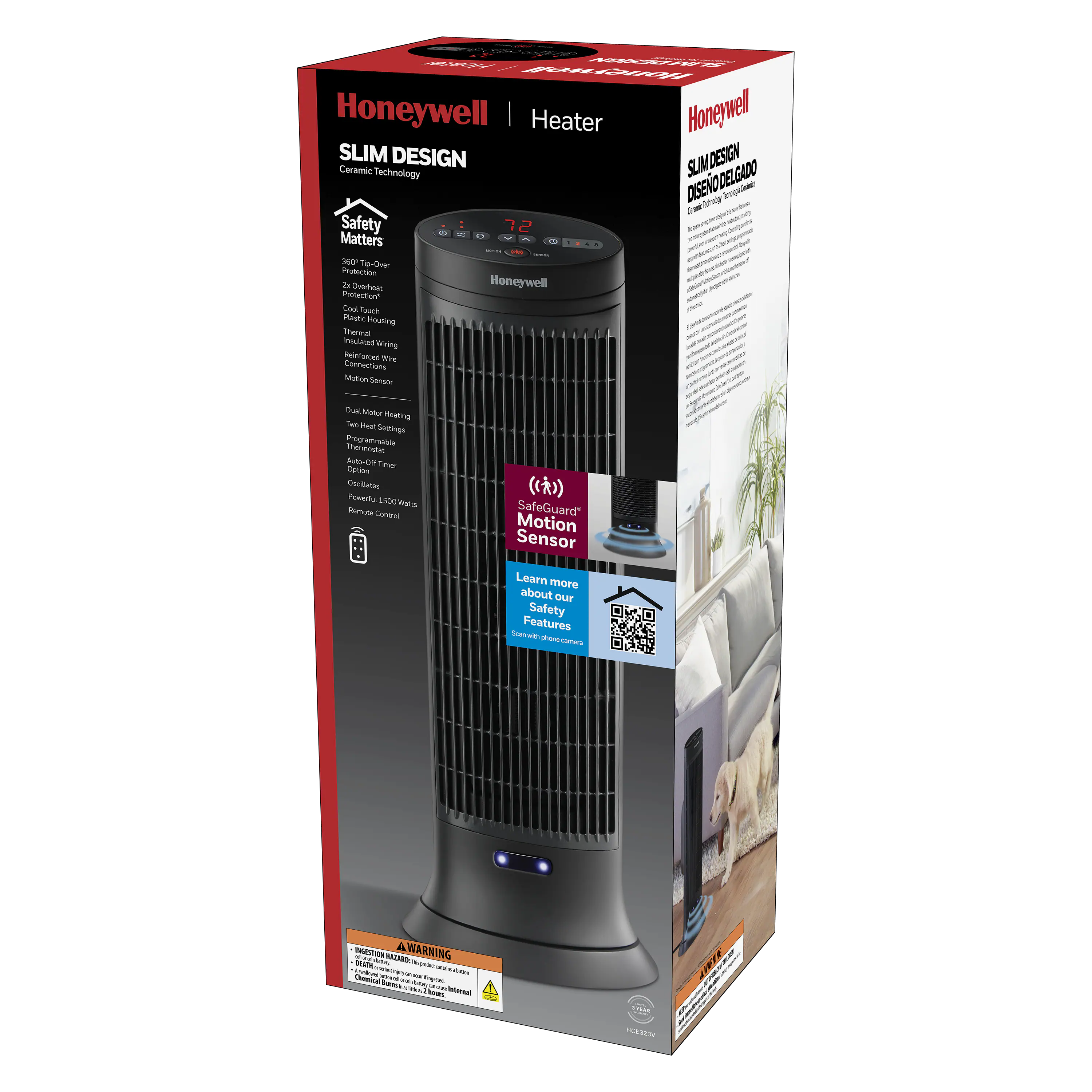 Keep cozy during cool weather with this Honeywell HCE323V ceramic tower heater that features digital controls, an LCD and a remote for easy operation. The auto tip-over shutoff function turns the unit off for added safety.
