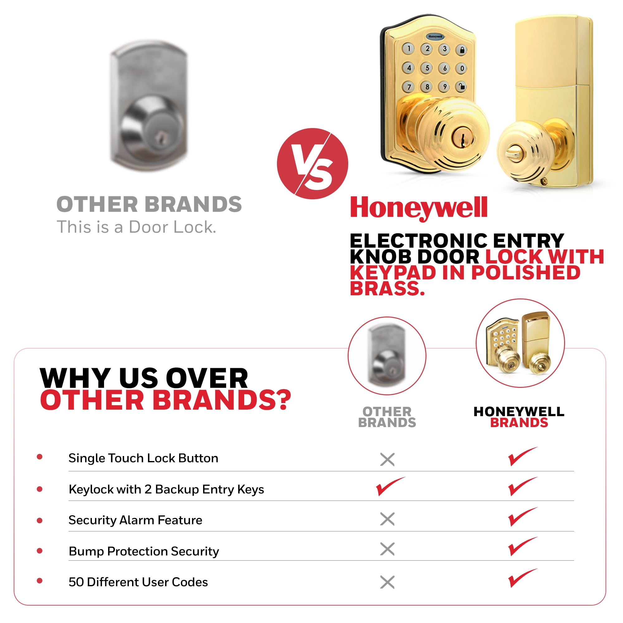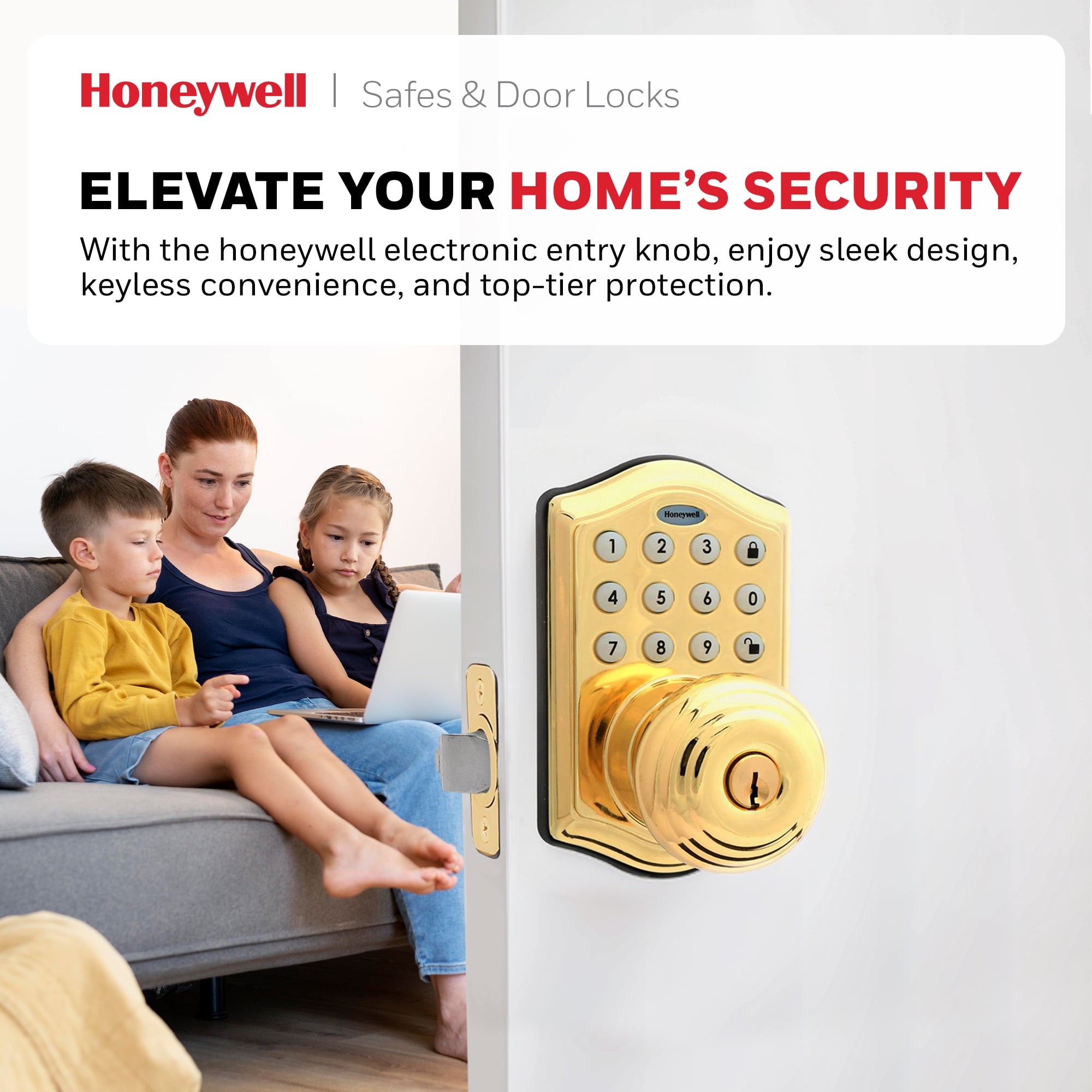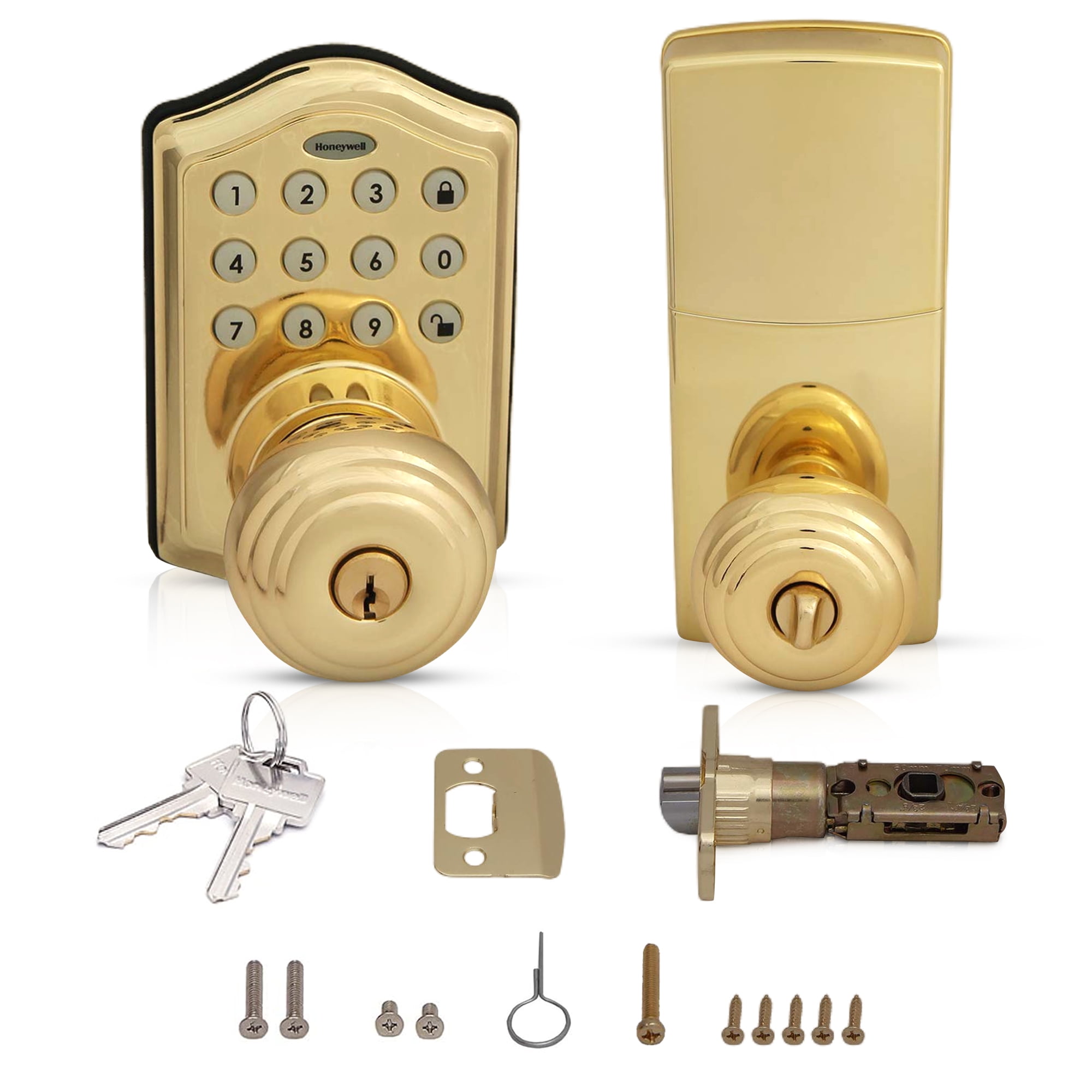 Honeywell Door Locks, Electronic Entry Knob Door Lock, Polished Brass, 8732001