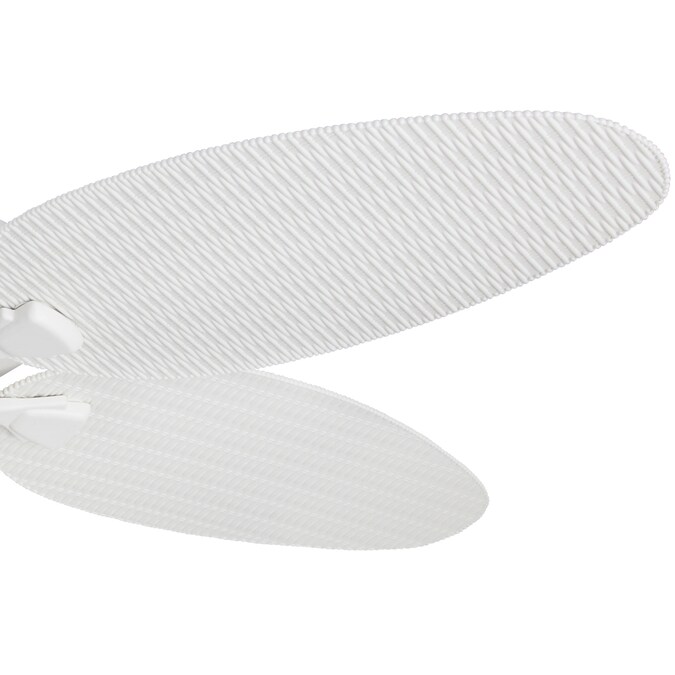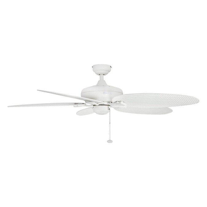 - Features a classic, white finish and 5 damp rated, Palm fan blades