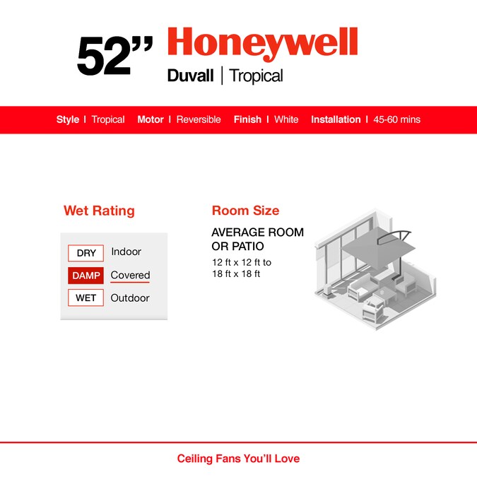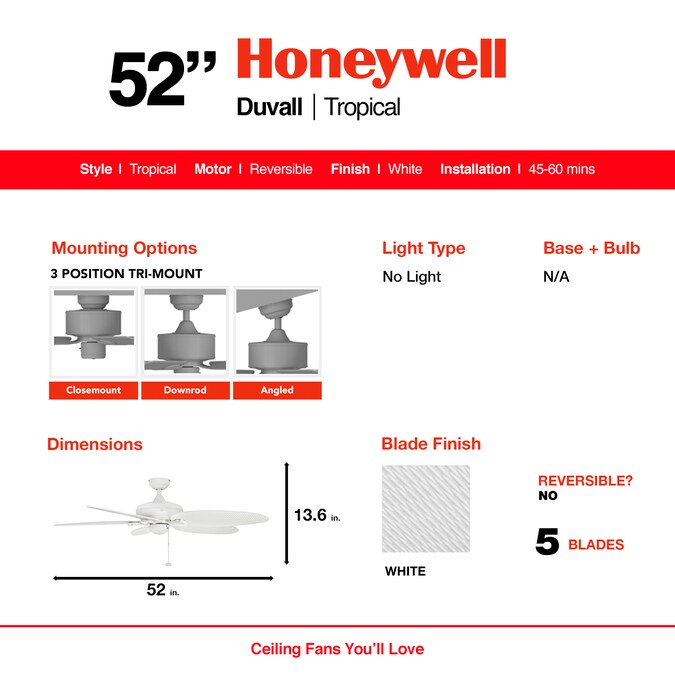 - Traditional pull chains included for easy “on and off” adjustments but this fan is also compatible with Honeywell ceiling fan remotes