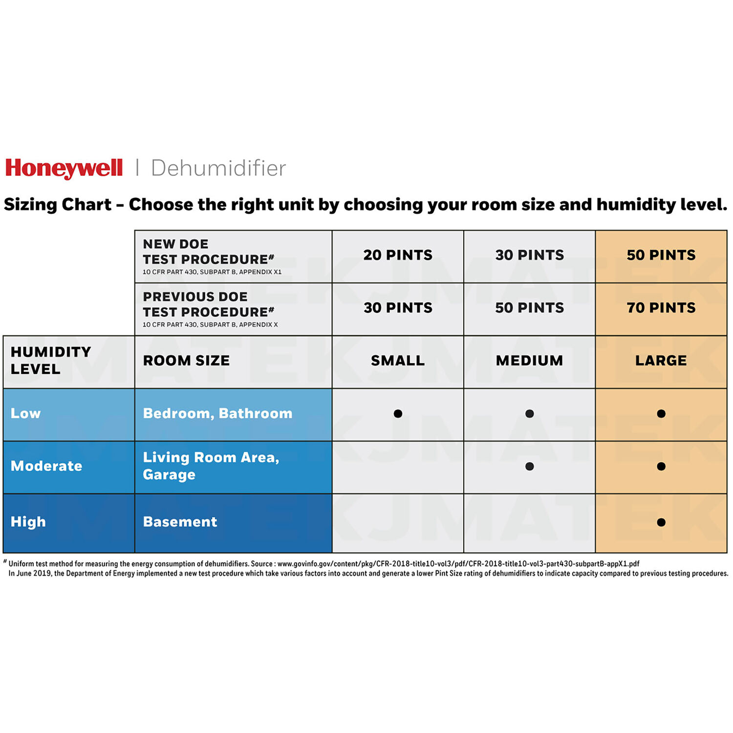 50-PINT 9-GALLON DEHUMIDIFIER FOR MEDIUM TO LARGE ROOMS: This unit effectively removes moisture from the air to protect walls, curtains, furniture and appliances from excess household moisture. Ideal for basements, living rooms, cellars, and storage rooms. PEACE OF MIND WITH A BRAND YOU TRUST: Honeywell Dehumidifiers are top rated by an independent, US-based product safety-testing agency since 2016 and all Honeywell Dehumidifiers are backed by an outstanding warranty. Plus, if you ever need help, the Honeywell Home Comfort customer service hotline connects you directly to an in-house customer support team who are ready to help (during office hours). ENERGY STAR QUALIFIED: This compact unit removes moisture with less energy than conventional dehumidifiers, saving you money. [EASY TO USE, EASY TO MAINTAIN: The detachable water tank with comfort-grip handle & anti-spill tank guards make it a breeze to empty. OR connect included the drain tube to the Continuous Drain Outlet for carefree, automatic drainage. The durable air filter with clean filter alert helps reduce dust and washes clean under a faucet – no filter replacements necessary. DESIGNED FOR COMFORT: humidistat control automatically activates dehumidification based on pre-set room conditions. What else? Additional features include a 24-hour energy-saving timer, Sleep mode, low temperature operation, auto-restart after an outage and smooth-gliding wheels. Energy Star qualified dehumidifier removes moisture with less energy than conventional dehumidifiers Removes up to 50 pints of moisture from the air every 24 hours in a room up to 3,500 sq. ft. Controls humidity for a more comfortable home environment Smart humidistat control system automatically senses room moisture levels and activates dehumidification LED display indicates room temperature, humidity level and timer settings 2 fan speeds (high and low) plus 24-hour programmable timer Convenient auto restart feature after an outage Low temperature operation down to 41 degrees Fahrenheit