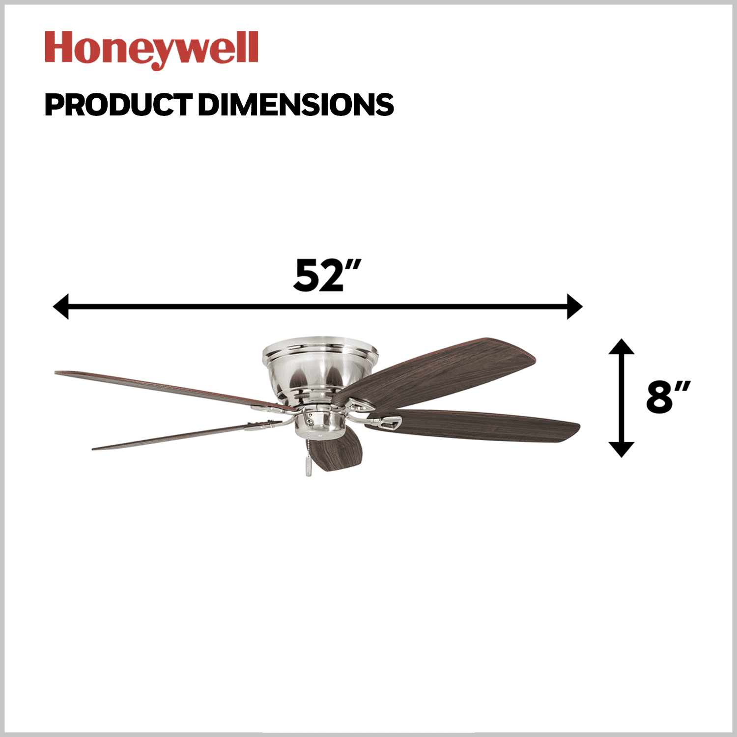 Honeywell Glen Alden 52″ Nickel Low Profile Ceiling Fan with 5 Blades, Pull Chain Control & Reverse Airflow