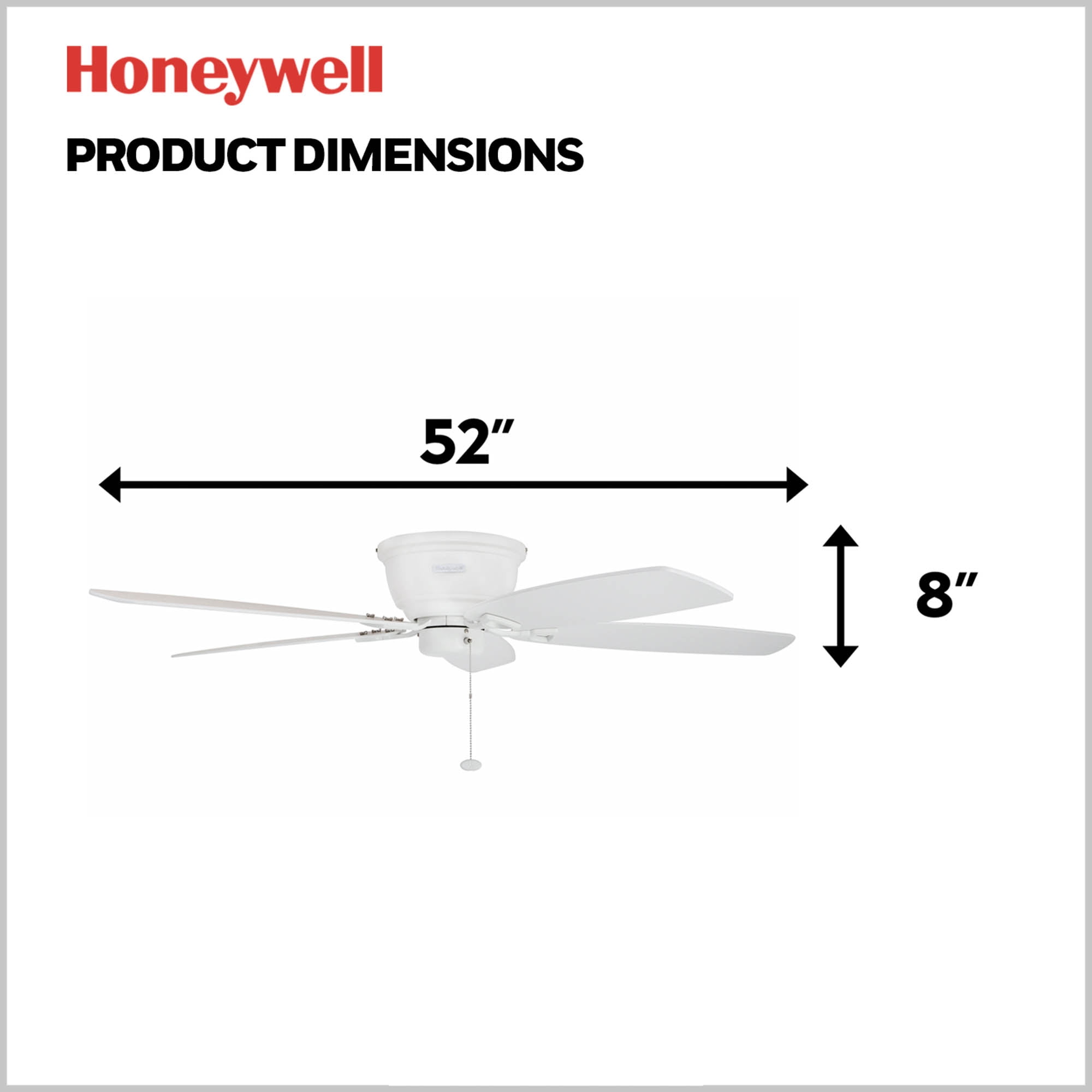 Honeywell Glen Alden 52″ White Low Profile Ceiling Fan with 5 Blades, Pull Chain Control & Reverse Airflow