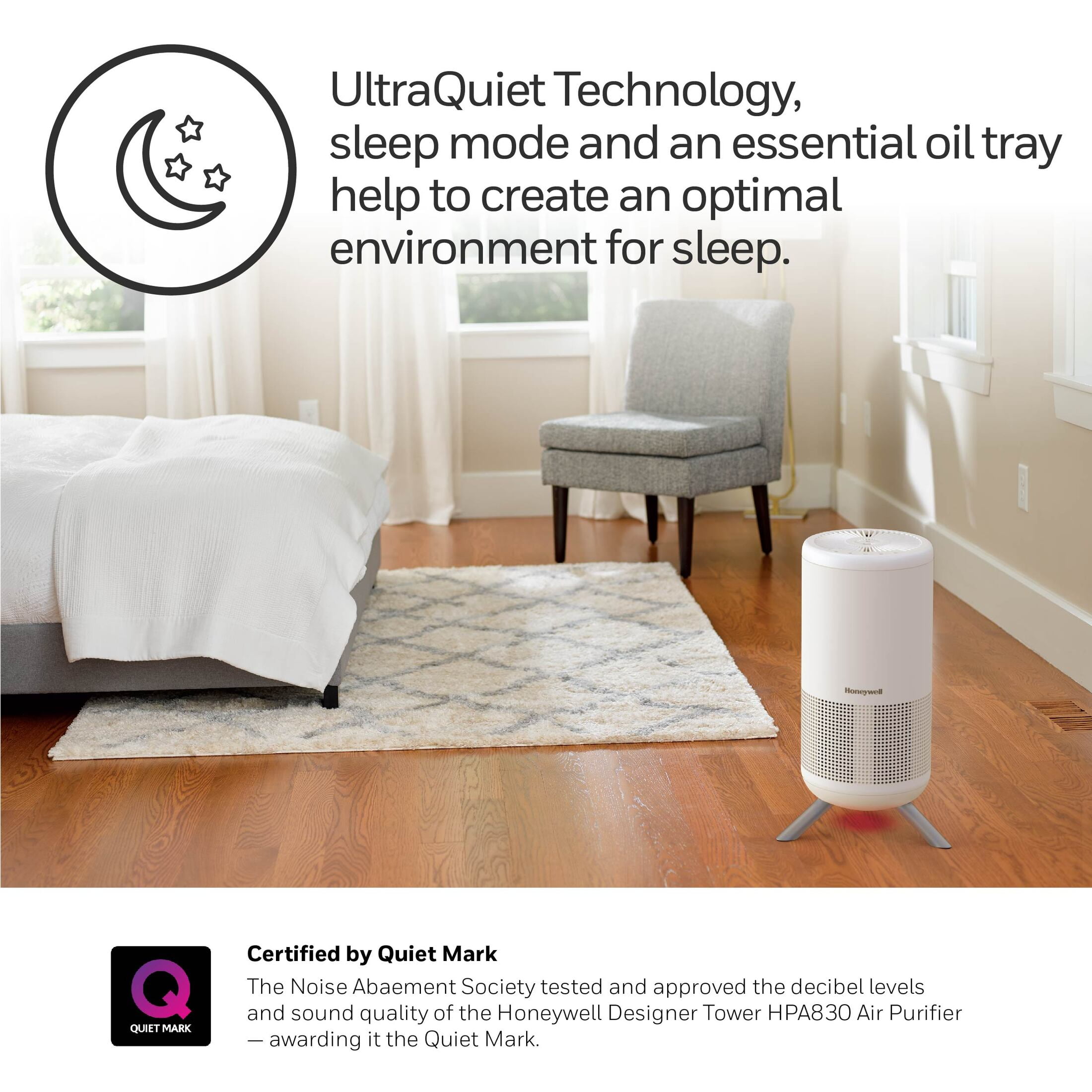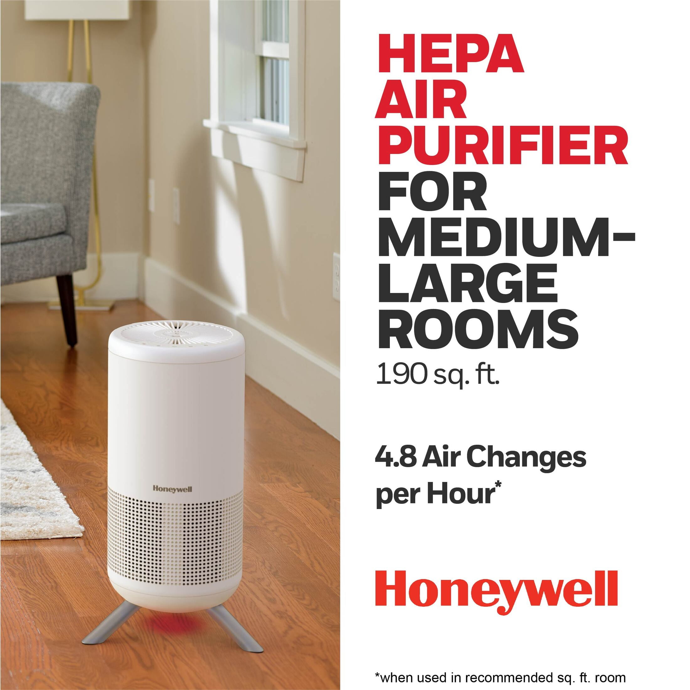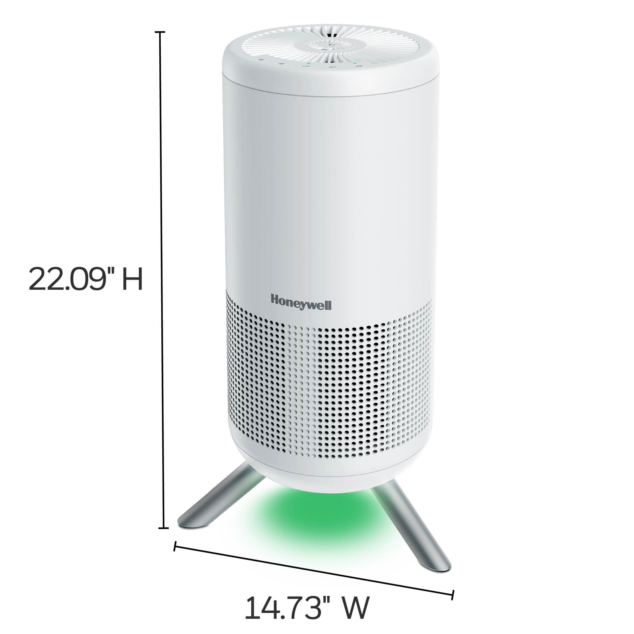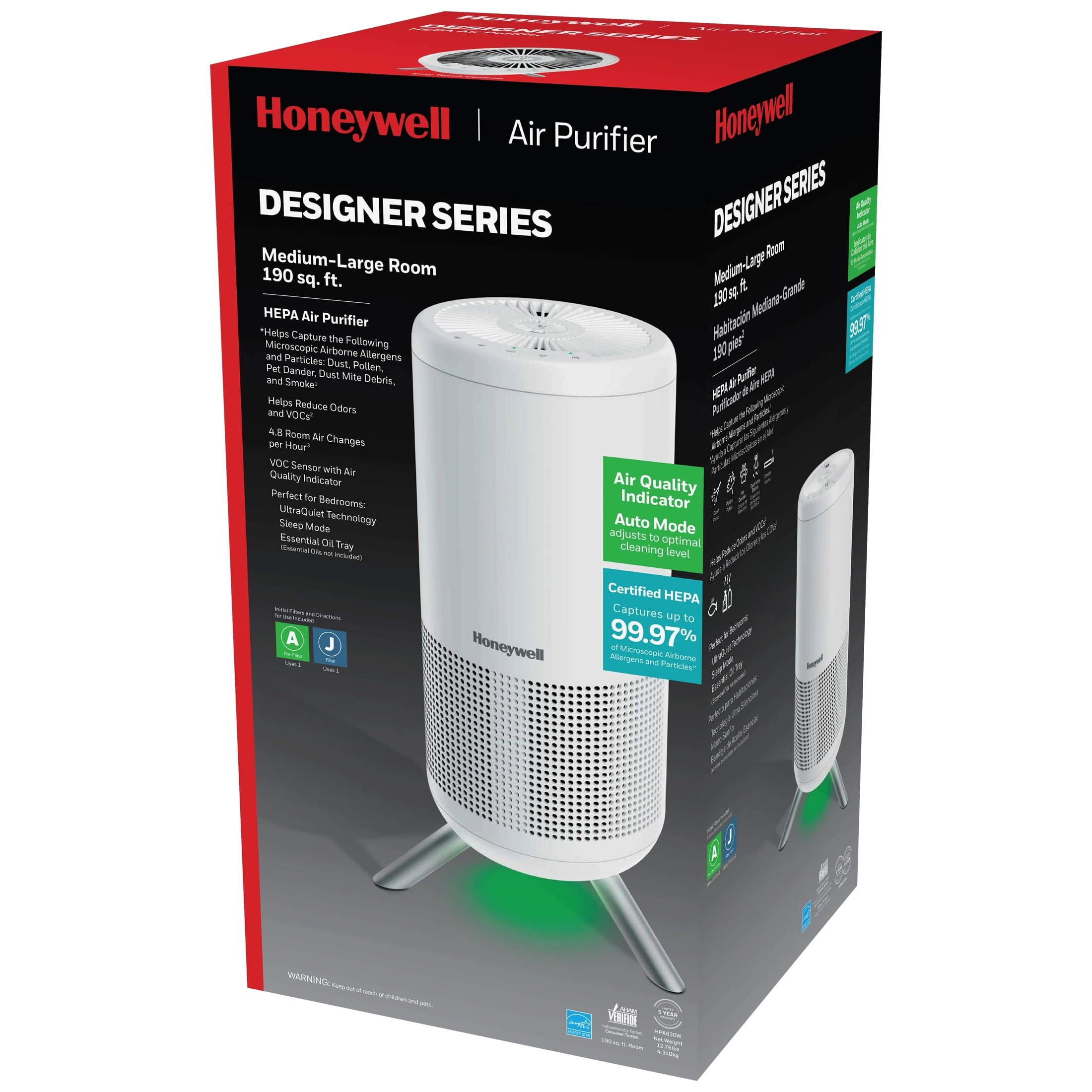 Helps capture up to 99.97% of the following microscopic airborne allergens and particles: dust, pollen, pet dander, dust mite debris and smoke* REDUCES WILDFIRE SMOKE: Wildfire smoke can impact the air quality where you live, even if you don’t live anywhere near the fires themselves. Because smoke contains extremely small particles, air purifiers can help remove some of these particles¹ from your air. Features effective HEPA Filtration with sleek, designer styling Independently tested and AHAM Verifide to circulate and filter room air up to 4.8x per hour in a 190 sq. ft. room** VOC Sensor with Air Quality Indicator that illuminates the floor to show air quality from across the room Automatic Cleaning Mode adjust to the optimal cleaning level for cleaner air UltraQuiet air purifier for home features 3 intuitive cleaning levels Ideal air purifier for bedroom with ultra-quiet technology, Sleep Mode, and an essential oils tray for optional aromatherapy (essential oils not included) Initial filters are included. Always purchase Genuine Honeywell replacement air purifier filters HRFJ830 and HRF-AP1. Other compatible filter replacements are not guaranteed to offer the same performance or efficiency. This product earned the ENERGY STAR label by meeting strict energy efficient guidelines set the U.S. EPA***