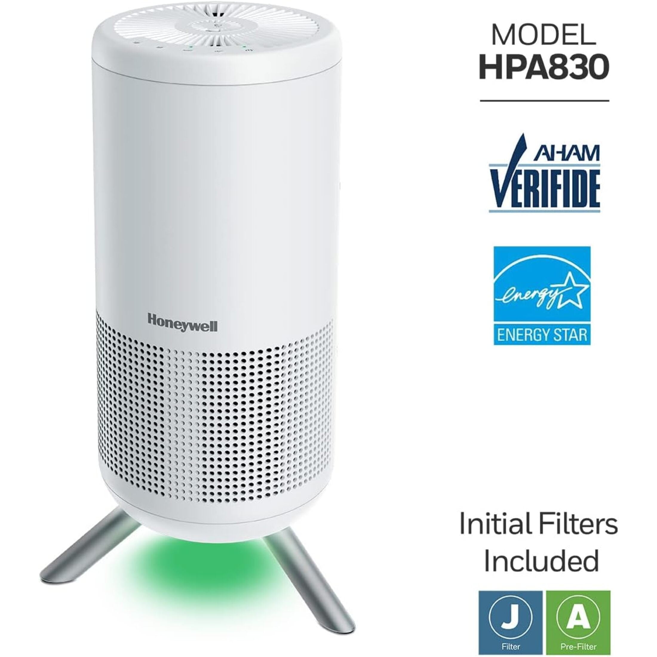 Honeywell Air Purifier, HPA830W, 900 sq ft, Allergen+ Plus, Smoke, Pollen, Dust Reducer