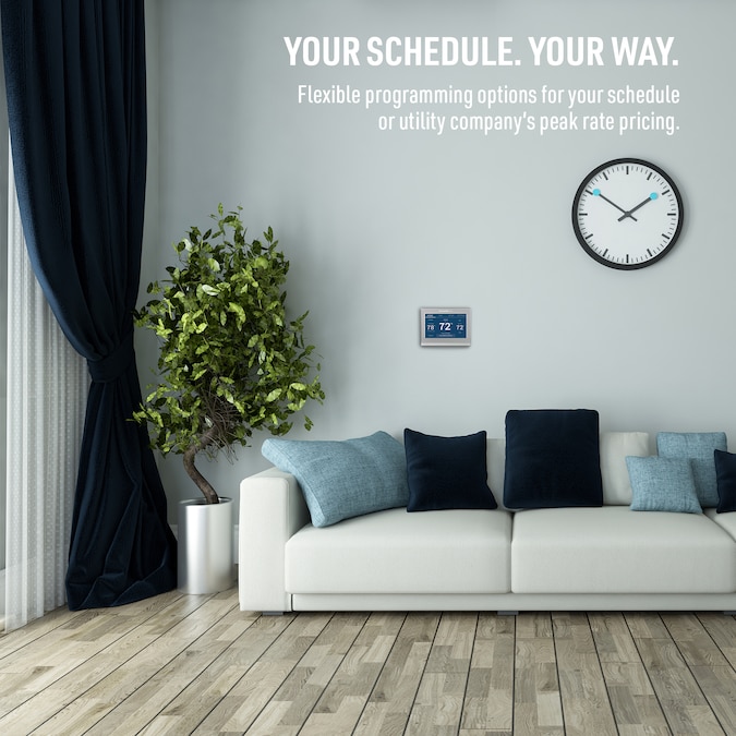 Completely customize your WiFi Smart Color Thermostat to match your lifestyle and decor. The ENERGY STAR certified smart thermostat lets you choose the temperature, schedule, display color and the devices you use to control it all. Simple setup takes the hassle out of programming your thermostat plus it works seamlessly with Amazon Alexa and Google Home, as well as our mobile app, so you can control the temperature anywhere inside or outside your home.