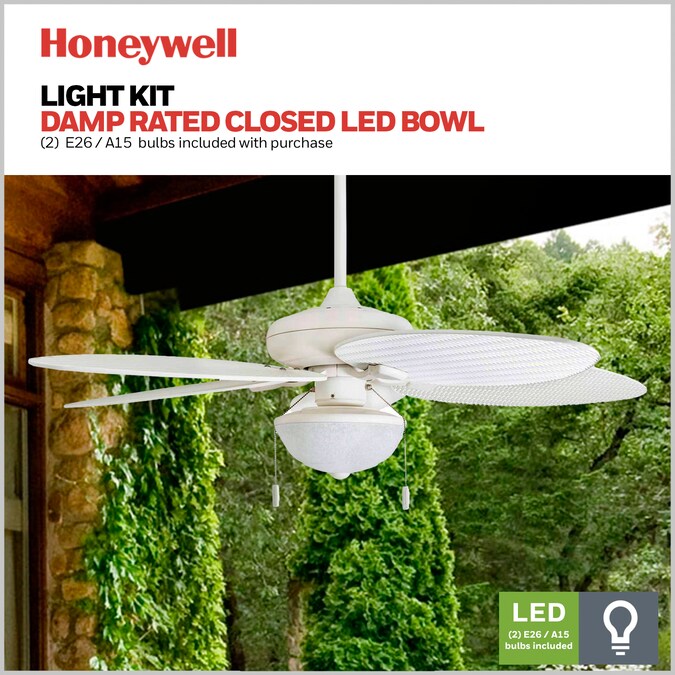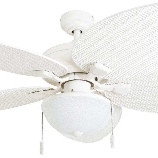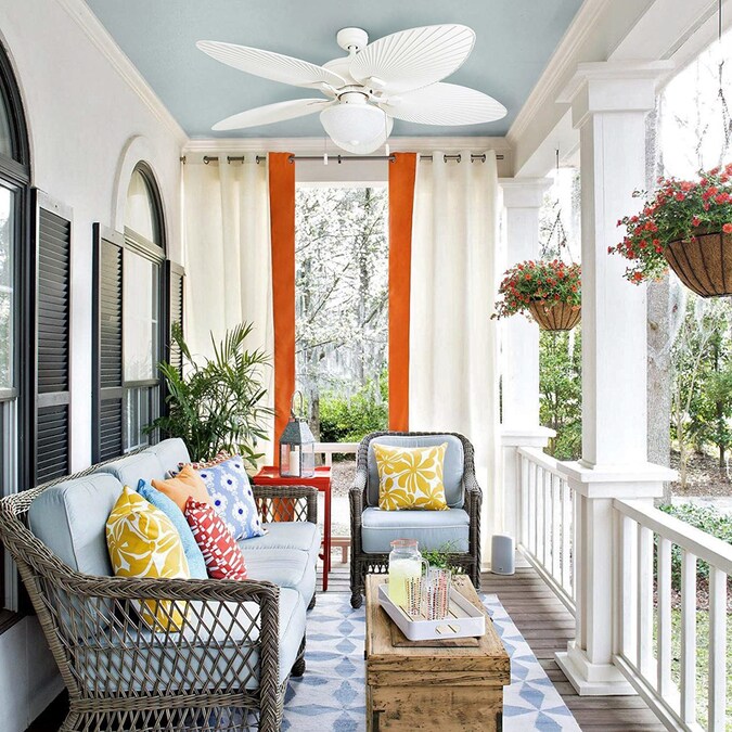 There’s no greater place to be than in the comfort of your own home whether it be indoors or out, and for both, the Honeywell Inland Breeze is the perfection companion. The enclosed bowl light and damp-rated housing ensure your readiness for outdoor weather, while the stylistic wicker and luxe finish have you prepared for any scenario. The white scavo glass brings a very crisp and wholesome allure, making this fan ready for your home. The blades come with two designs, one on each side – the first side holds the traditional wicker pattern while the other houses a tropical palm leaf. Overall, the Inland Breeze 52-inch tropical outdoor ceiling fan is sure to liven up any area, including your front patio, and leave each of your guests in awe.