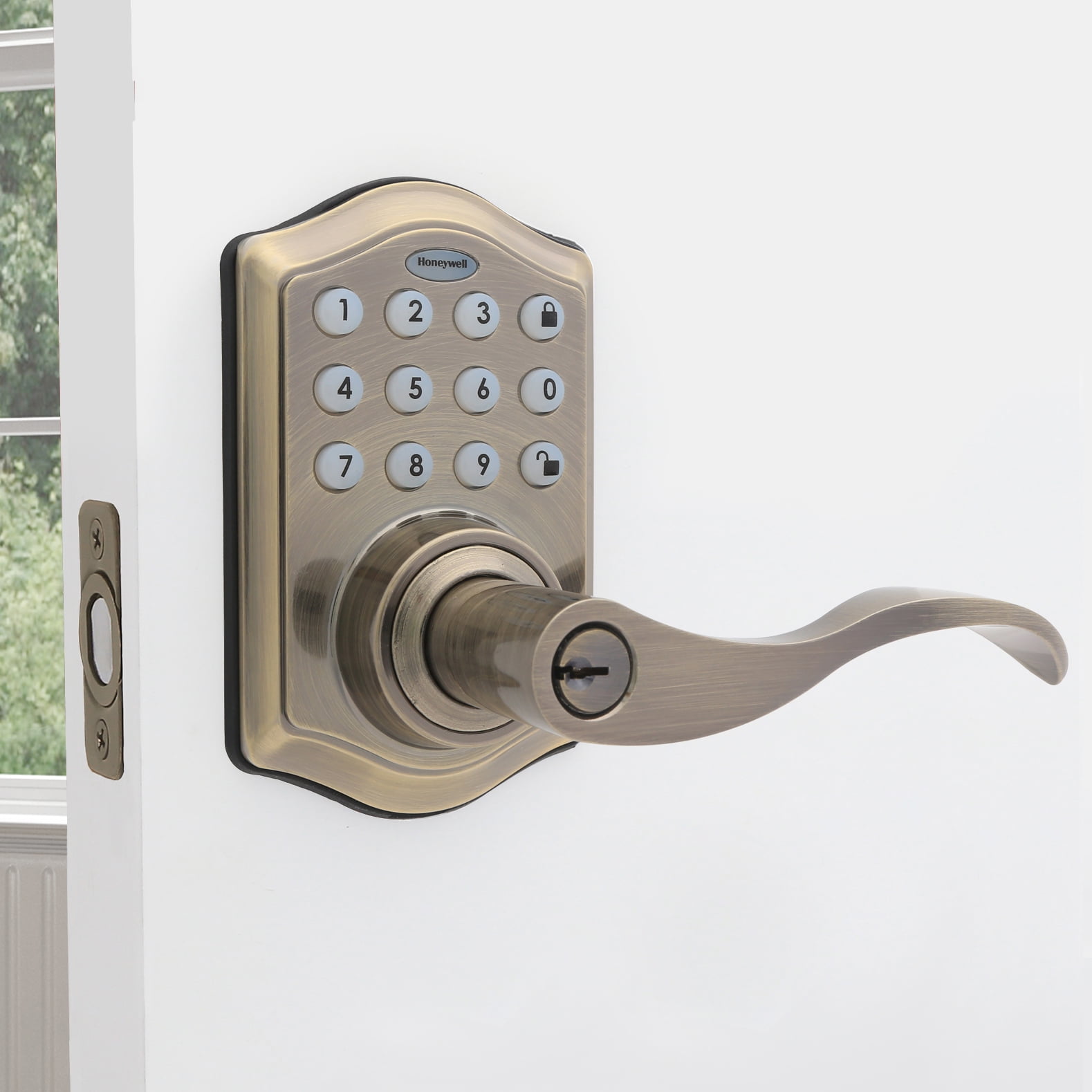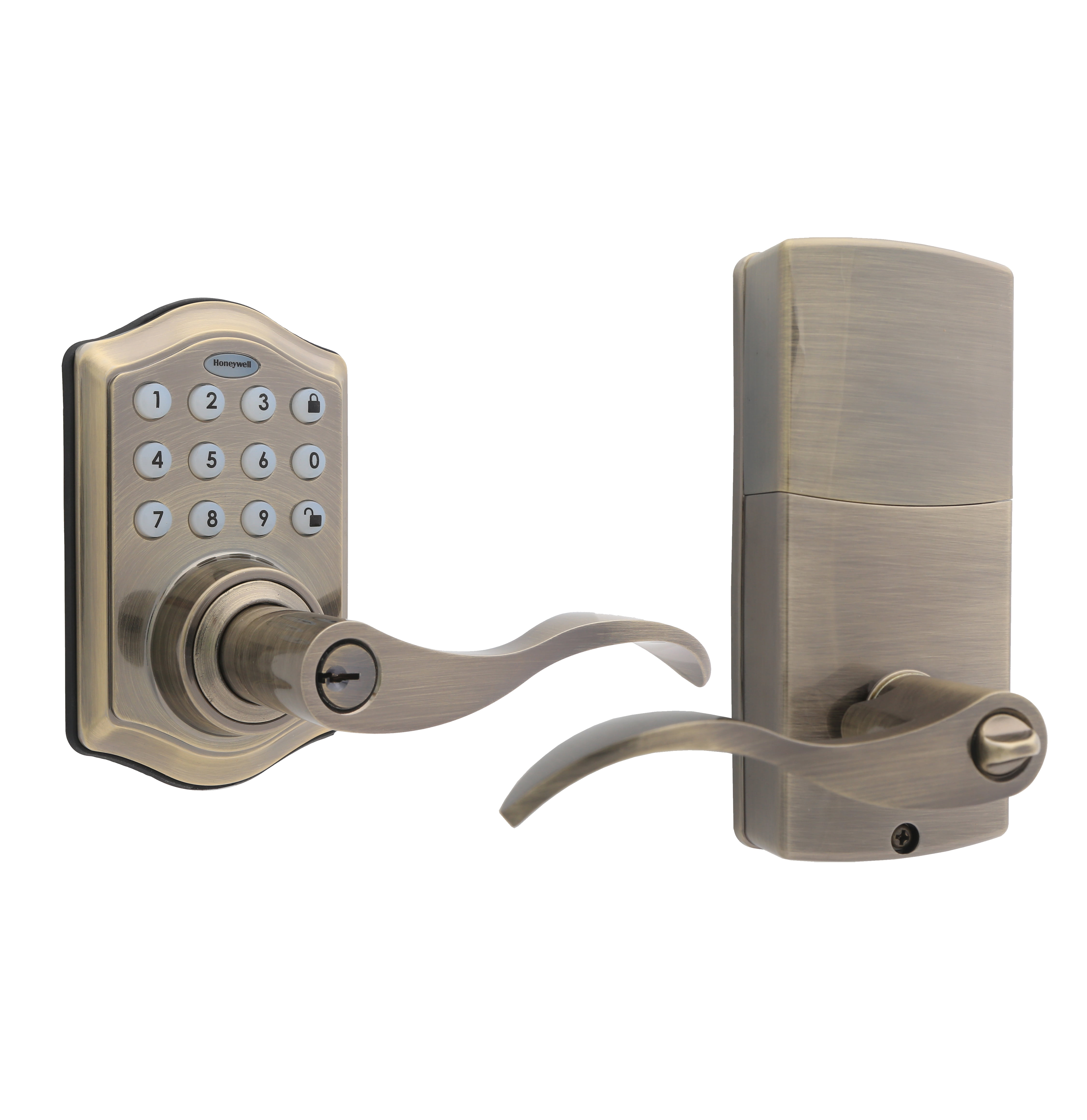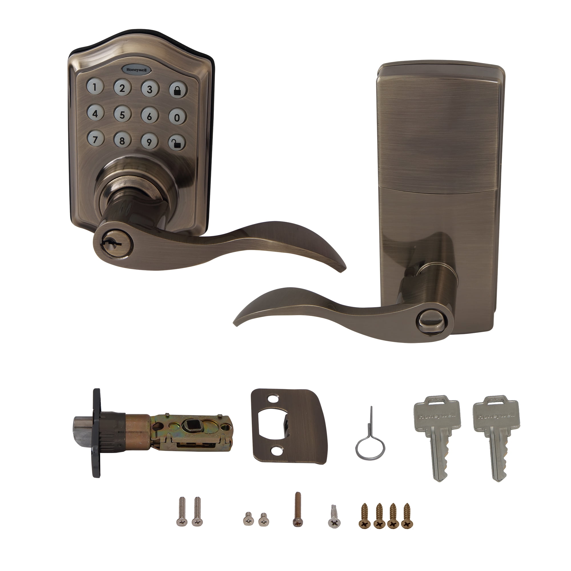 Honeywell Locks, Electronic Entry Lever Door Lock, Antique Brass, 8734101