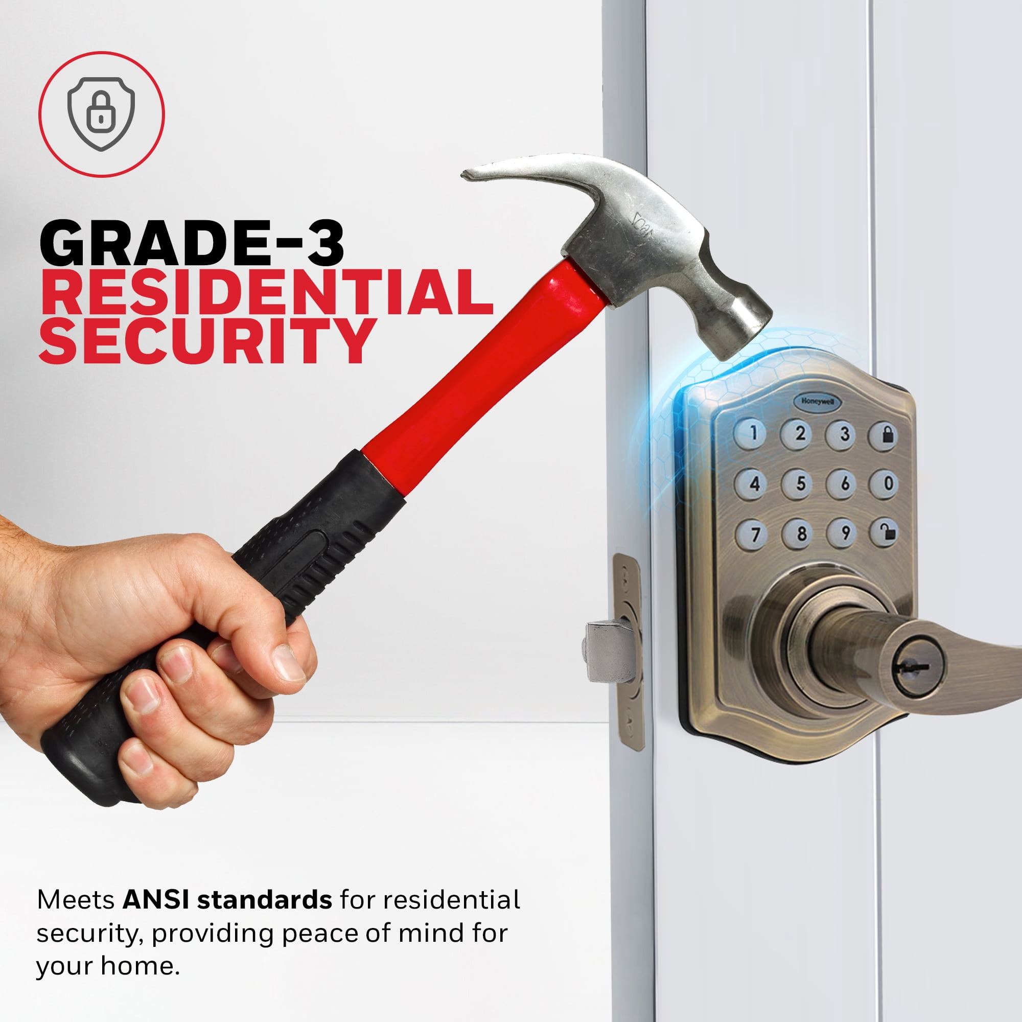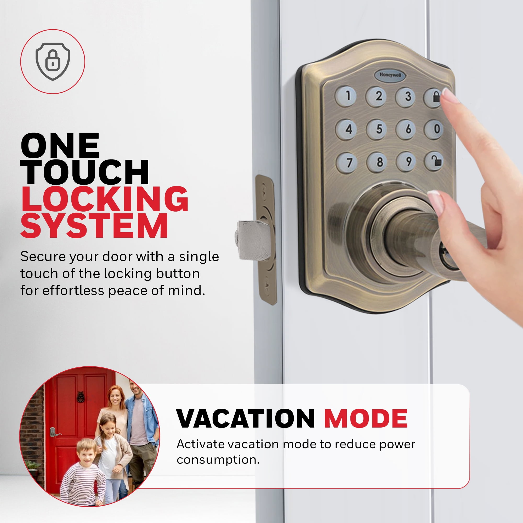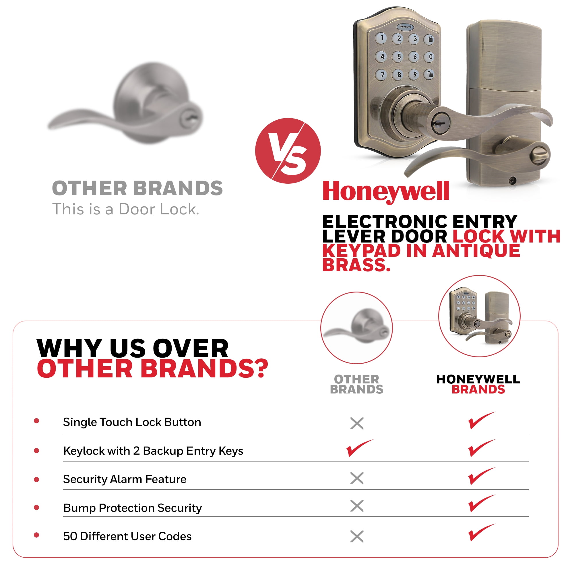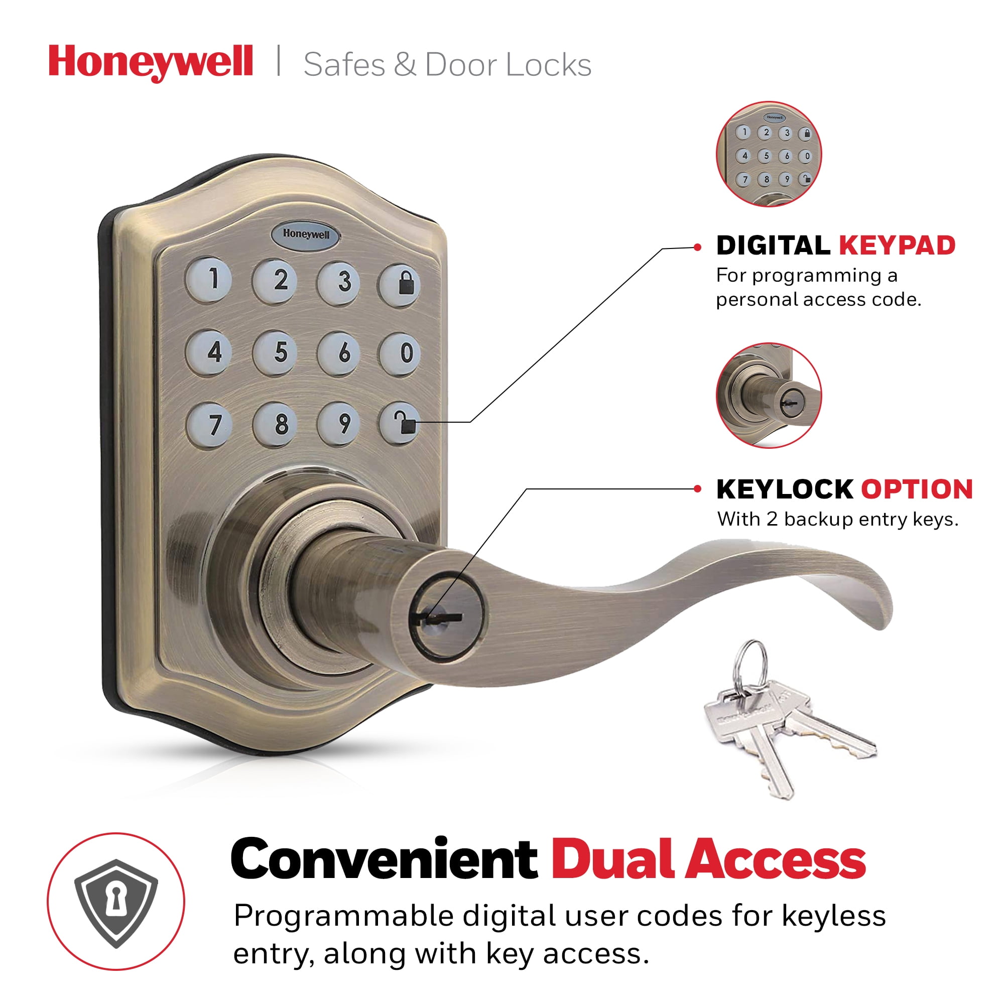 Honeywell Locks, Electronic Entry Lever Door Lock, Antique Brass, 8734101