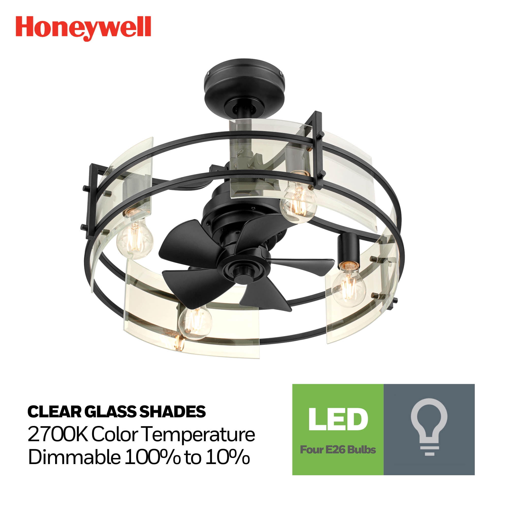 Honeywell Padfield Fandelier 22″ Black Contemporary Indoor Ceiling Fan with Lights and Remote Control, Reversible Motor