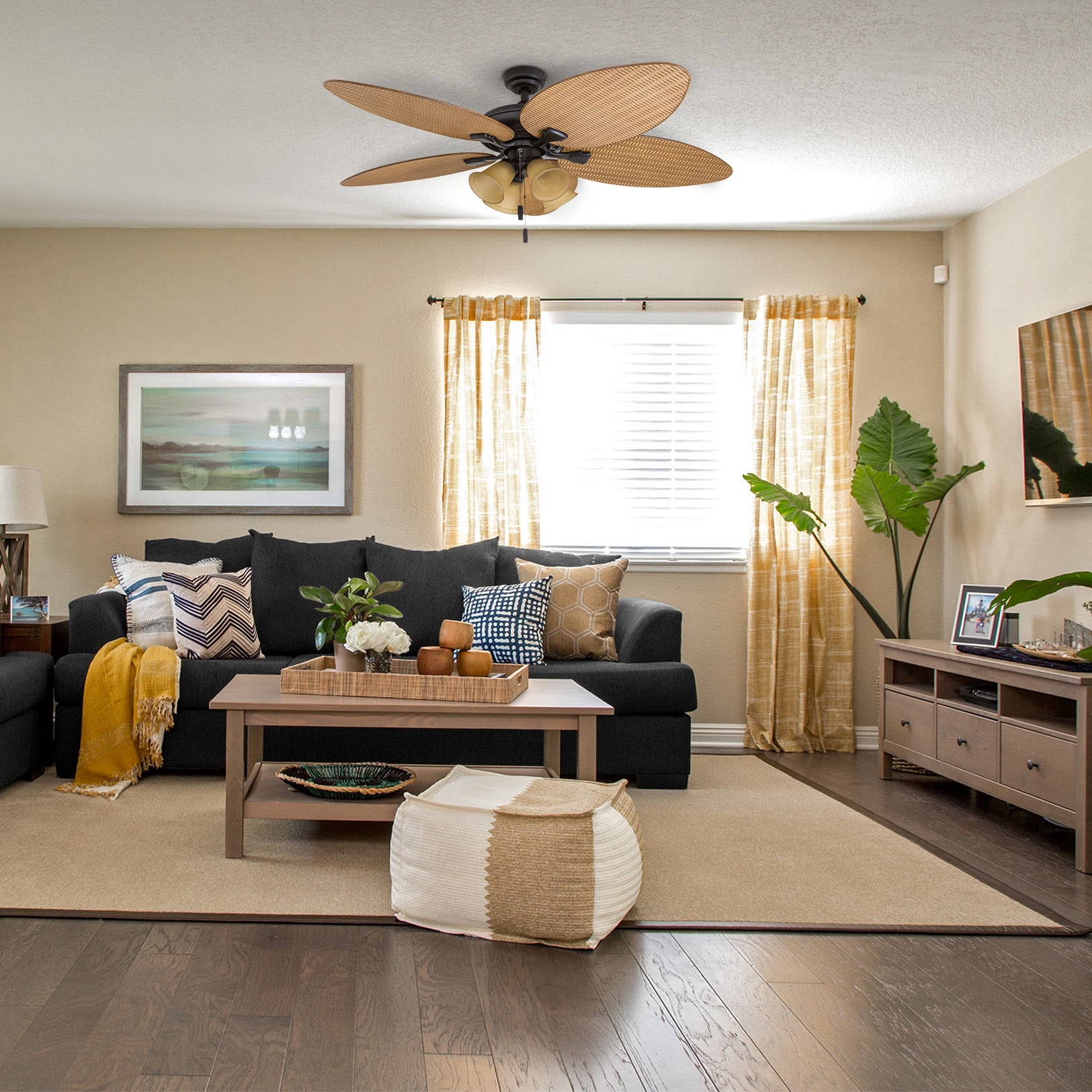 Honeywell Palm Valley 52″ Bronze Tropical Ceiling Fan with 5 Palm Blades, Pull Chain & Reverse Airflow
