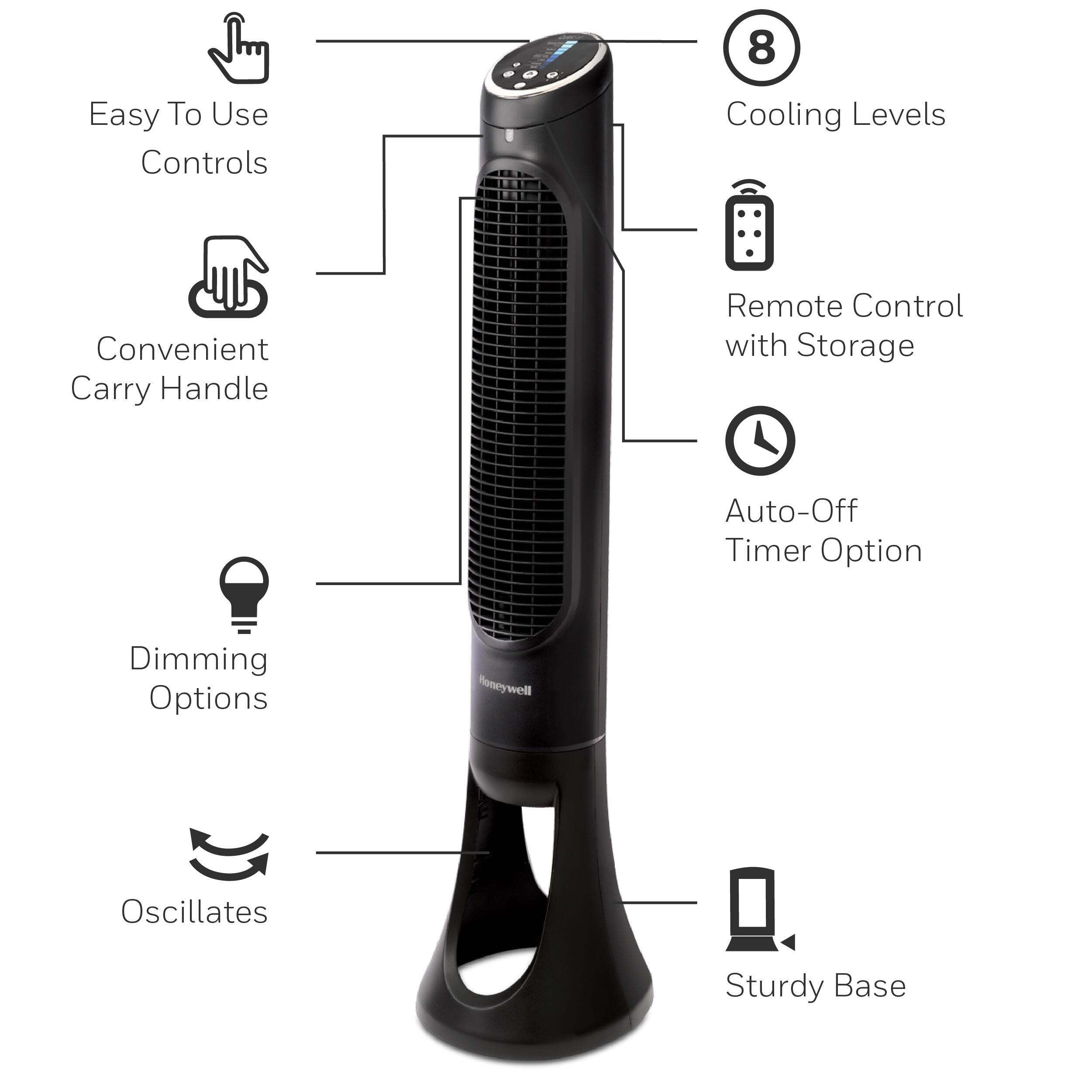 - Product Name: QuietSet Oscillating Whole Room Tower Fan Black, HYF290B