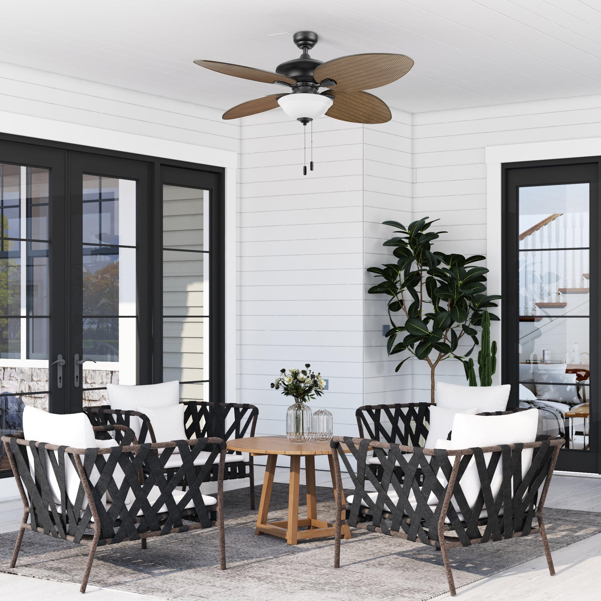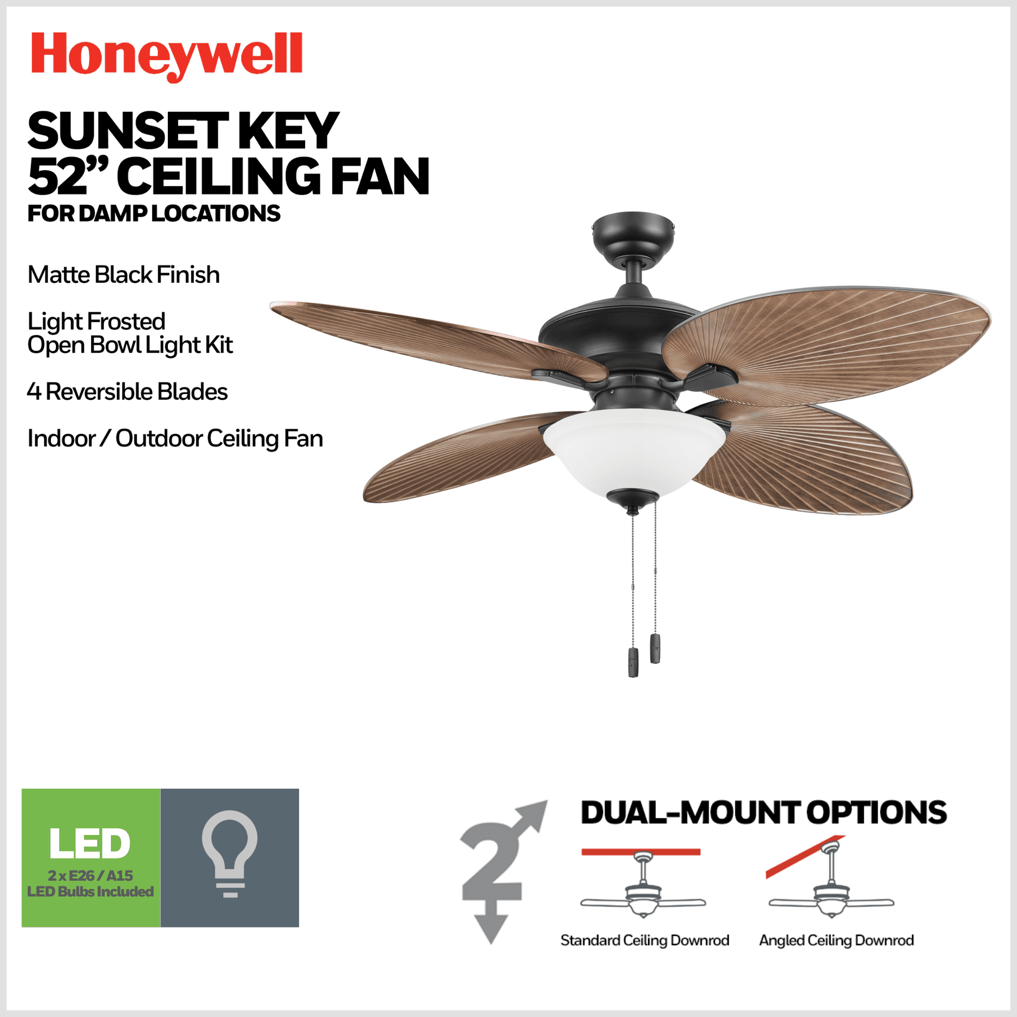 Honeywell Sunset Key 52″ Black Indoor/Outdoor Ceiling Fan with Light, Pull Chains & Reversible Motor