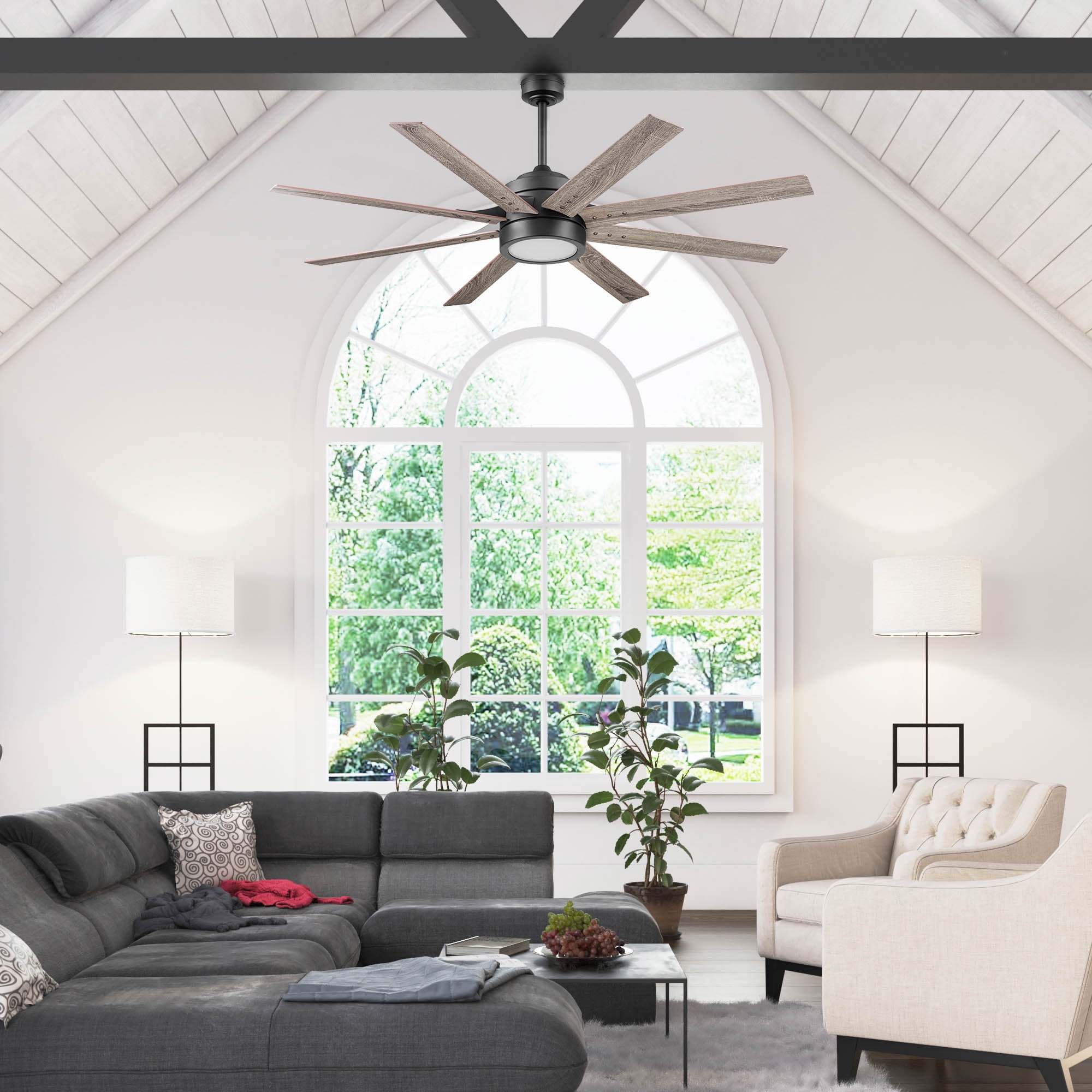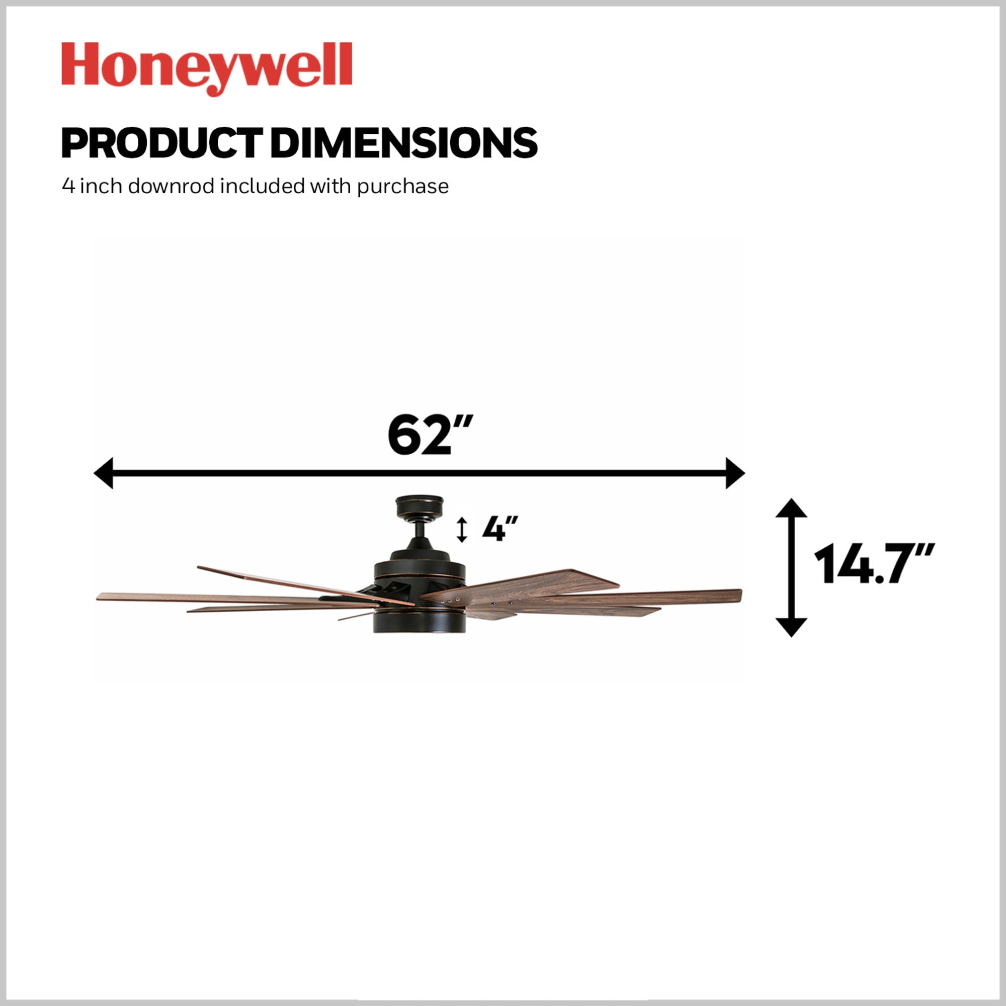 CONTEMPORARY CEILING FAN: modernize your space with a contemporary Honeywell Ceiling Fan! this large Ceiling Fan is perfect for great-rooms, living rooms and dens EASY-TO-USE REMOTE: This fan includes a remote control with 3-speed settings, ‘smart sync’ for quick setup, ‘walk away light delay’ and light dimmer. Controlling your Ceiling Fan has never been easier. QUIET, REVERSIBLE MOTOR: Conveniently quiet, 3 speed – reversible motor. Downdraft mode and updraft mode for optimal airflow. Control the temperature of your space with ease! Dual-finish reversible blades: the style is up to you! this Ceiling Fan comes with a different finish on each sides of the blades. Pick the finish that best fits your space TRI-MOUNT OPTIONS: Dynamic hanging abilities. This fan can be mounted with a downrod (standard), angled-mount (sloped) and flush-mount (4 downrod included with purchase).