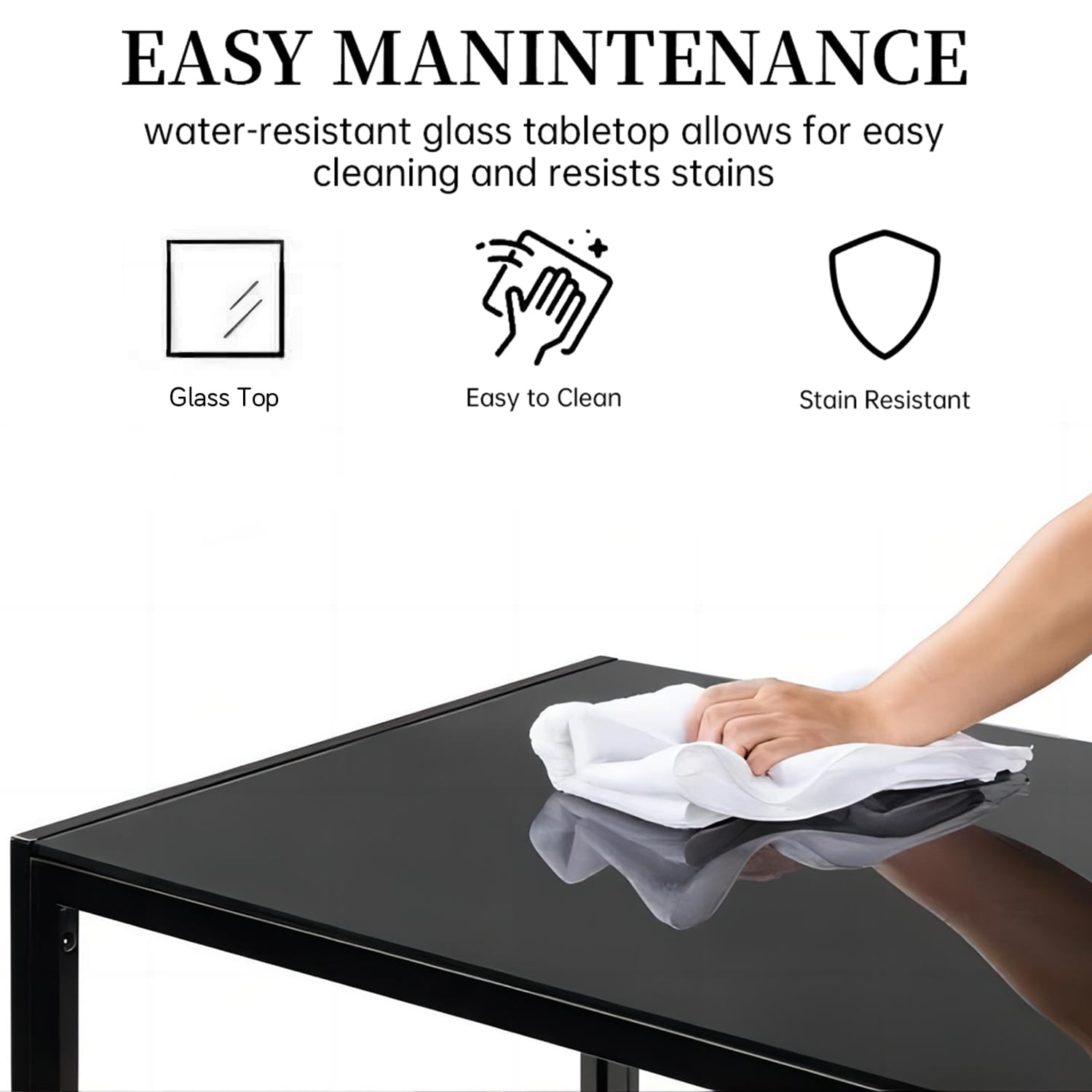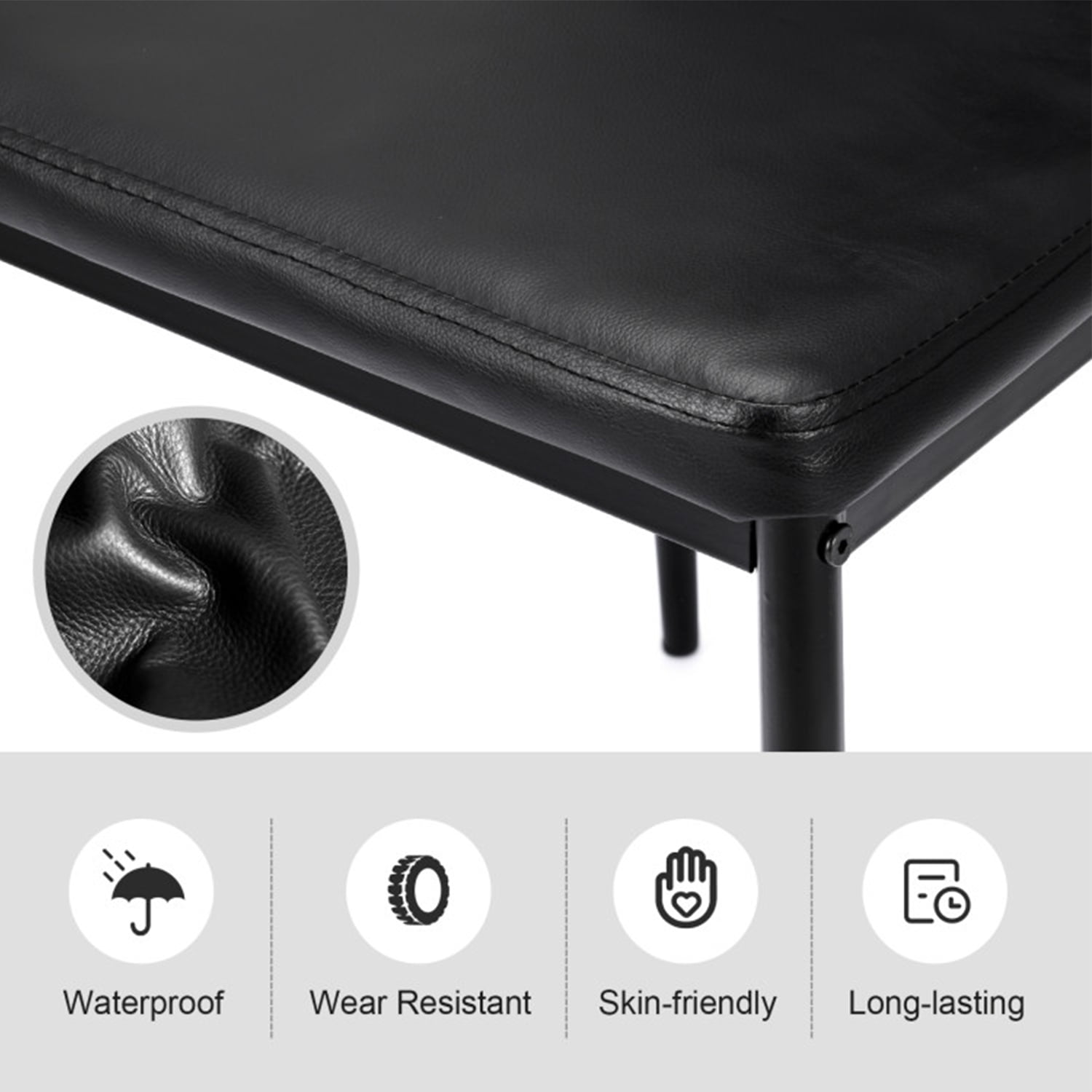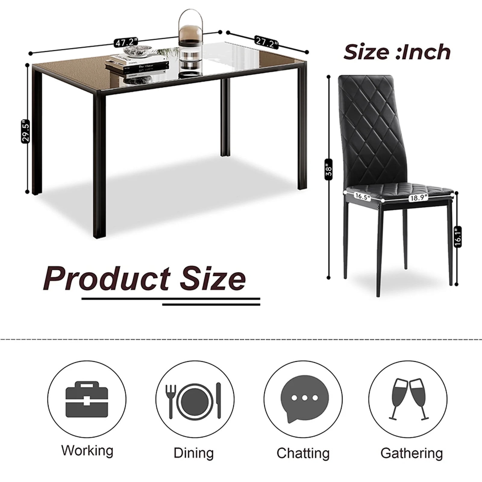 ● Delicate Design: This kitchen dining set includes one tempered glass top table and 4 PVC leather chairs which makes it looks fantastic in any dining room. There is no doubt to say that such an elegant addition and suit any decor style dining room with the black colors. ● Padded PVC Leather: The dining chairs have padded PVC leather on the seat and back part. Soft cushions and backrests make these chairs could let you have an enjoyable sit feeling. ● Easy Clean and Assembly: PVC leather for chair, beautifully furnished black color, smooth glass surface finish for table easy for daily clean. This chair and table set has straight forward illustrations and descriptions. Every screw and pin has its own code and it’s easy to understand the assemble progress. It won’t take you much time and could save your energy.