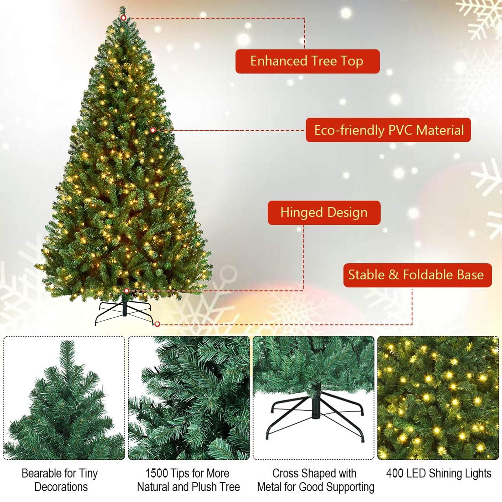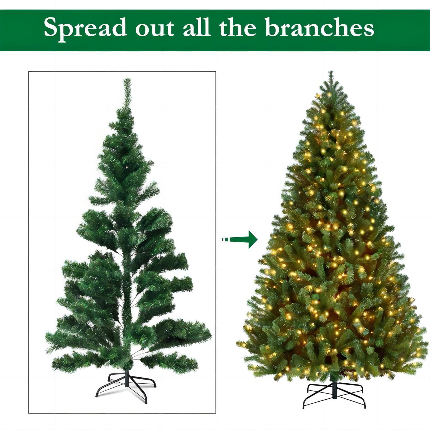 Full Shape with Lush Appearance: Standing at 6.5feet tall, this artificial Christmas tree boasts an abundance of ultra-lush branch tips designed to create a lifelike and natural festive atmosphere. By fluffing and shaping the branches, you can achieve a Christmas tree with a full-bodied appearance that adds to its charm. Hinged Design for Easy Setup: Thanks to its convenient hinged sections, assembling this Christmas tree is a straightforward task for anyone, saving you time. It can also be disassembled for simple and space-saving storage, allowing you to use it year after year. Additionally, the sturdy metal base ensures the tree remains as stable as possible, reducing the risk of tipping over. Energy-Efficient LED Lights: Equipped with 350 LED lights, the tree provides a bright, festive glow while being energy-efficient and long-lasting. Durable PVC Material: Made from high-quality PVC material, this tree is built to last and withstand years of use, with branches that hold their shape and resist wear. Easy Setup and Maintenance: The tree is easy to assemble and maintain, with hinged branches that simply fold out for quick setup, and the PVC construction ensures minimal shedding. Versatile and Realistic Appearance: With its realistic look, this tree is designed to look just like a natural evergreen, making it a perfect addition to any holiday décor, whether placed in the living room, office, or anywhere you want to spread the Christmas cheer.