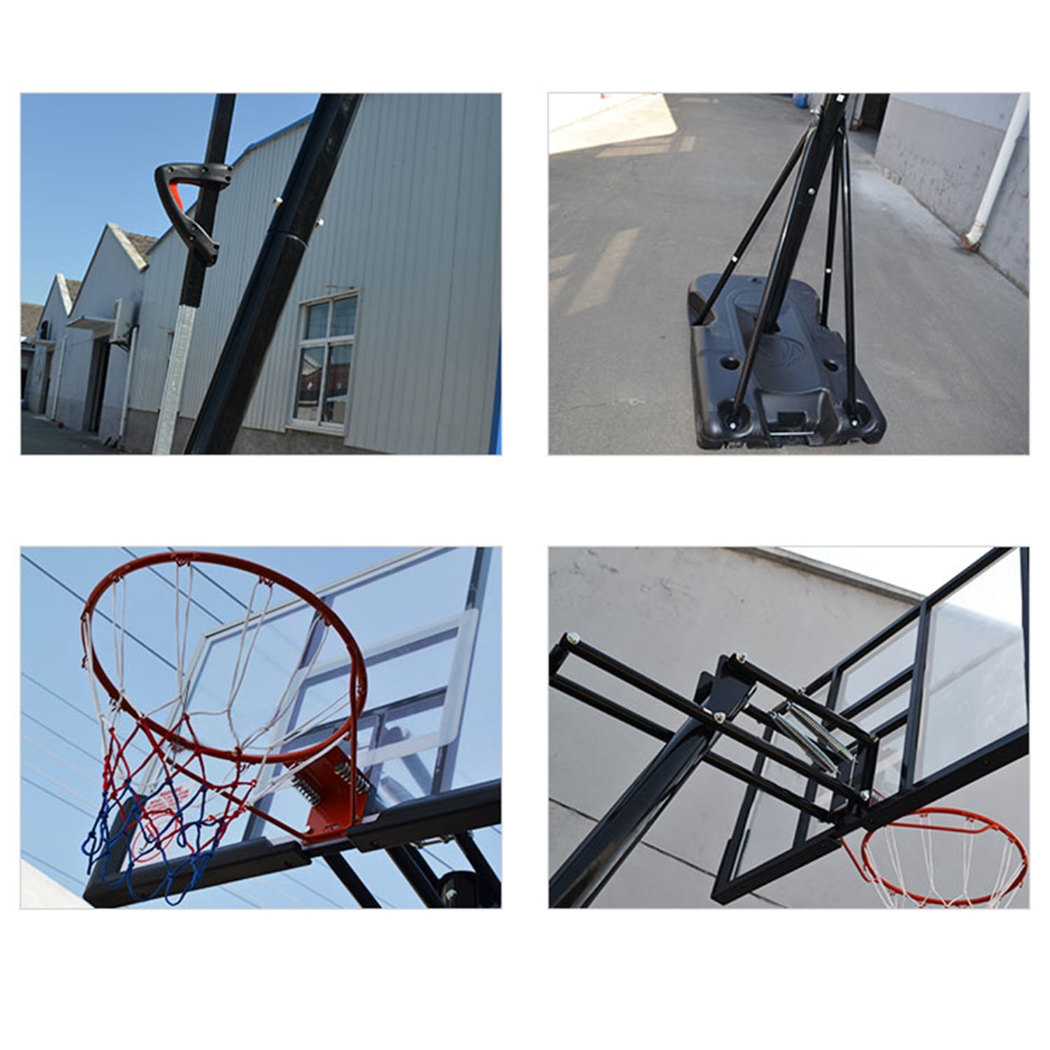 One-Button Height Adjustment (7.5-10 Feet): This basketball hoop features a versatile height range, adjustable from 4.8 feet to 10 feet. Ideal for high-intensity games, training, and family activities, this hoop is perfect for sports events and school games with friends and family. Durable Shockproof and Sturdy Design: The shockproof rim, designed to accommodate standard size 7 basketballs, is constructed from 16mm thick Q195 steel. The 60-inch high-strength, windproof PC transparent backboard is built to withstand impact, preventing damage and breakage when performing dunks. The all-weather nylon mesh is suitable for use throughout all seasons. Portable and Easy to Move Between Locations: Equipped with two built-in front wheels, this basketball hoop is easy to transport and can be used in a variety of settings, such as your yard, pool, beach, playground, or living room. Sturdy enough to grow with your child, this hoop offers an ideal playing environment. It’s also perfect for hosting pool basketball parties or adding fun to family gatherings and enjoying summer activities. Stable Base and Structure for Safety: The high-strength PE base has a large capacity and can be filled with up to 48 kg of water to ensure stability. It can also support the weight of sandbags. The triangular structure of the pole and base enhances safety, reducing the risk of tipping over and ensuring the hoop remains stable during play. Easy Assembly & After-Sales Support: Assembly is quick and straightforward, taking no more than 120 minutes with the provided instruction manual. If you require any assistance or replacement parts, our 24-hour customer service team is available to assist you, ensuring a hassle-free experience.