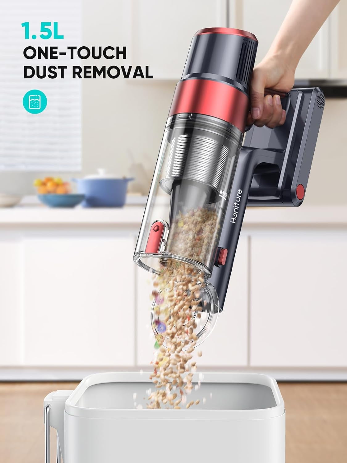 HONITURE 450W 38kPa Cordless Vacuum Cleaner, Touch Screen and Detachable Battery(Max 55min), 1.5L Cup, Quiet Cordless Stick Vacuum Cleaner for Home Hardwood Floor Pet Hair