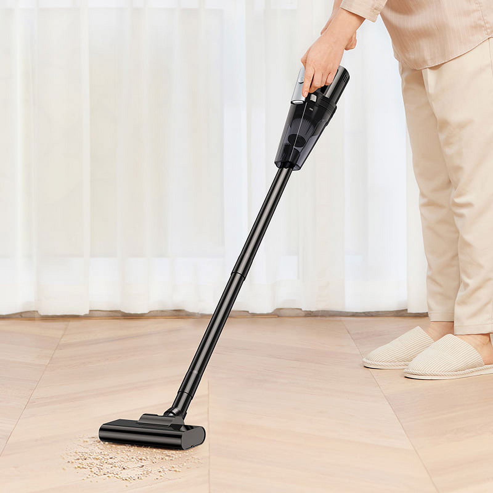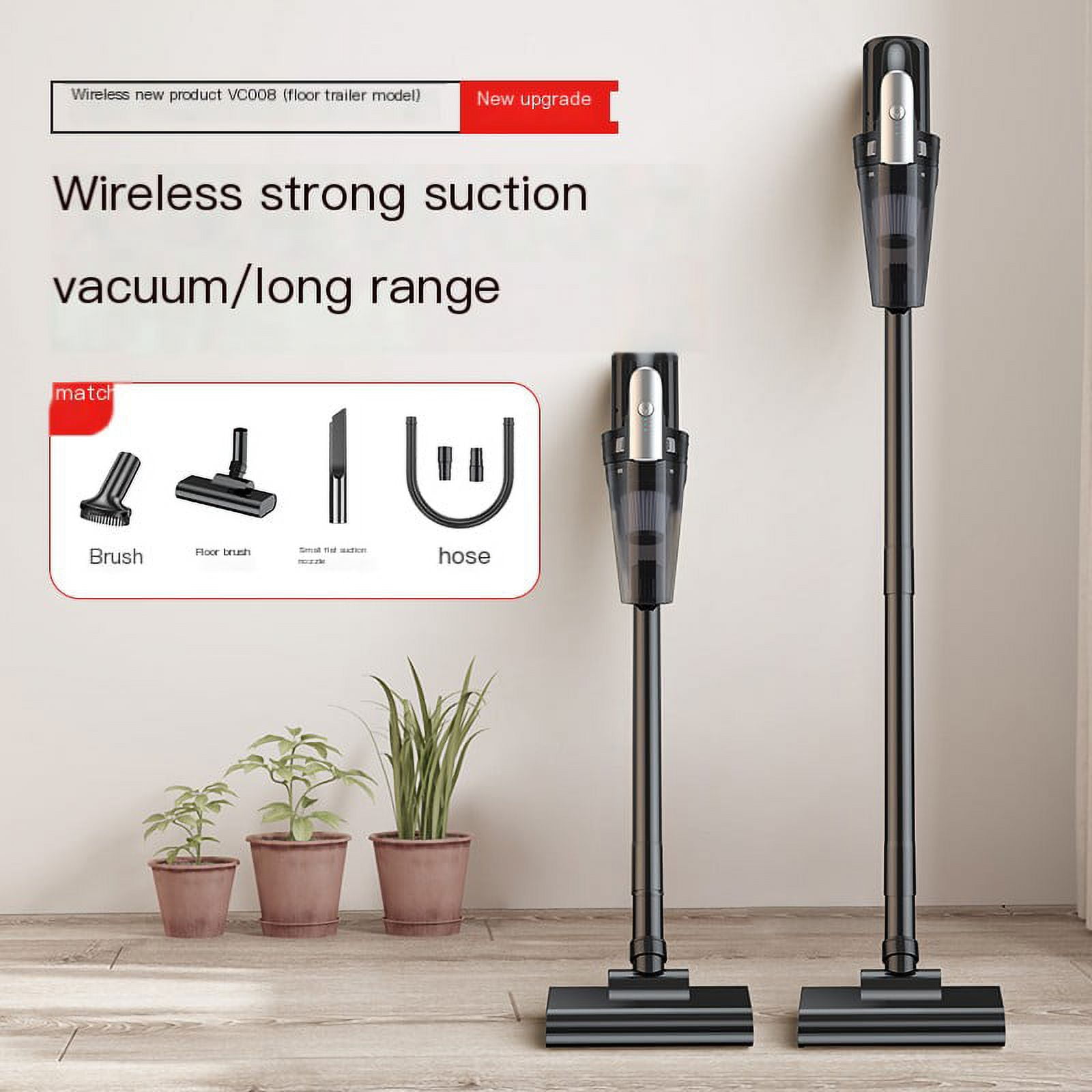 Highlights: Two levels of suction double the efficiency and switch at will 6000mAh large-capacity battery, 27min long battery life, rest assured to use 0.5L large-capacity dust bucket split design for easy cleaning Product parameter: First gear: standard mode Endurance: 24min-27min Suction: 4500-5000pa Second gear: strong mode Endurance: 14min-16min Suction: 7000-7500pa Package Content: host*1 Hose*1 Floor brush*1 Extension tube*2 Brush*1 Small flat nozzle*1 Manual*1 Charging cable*1
