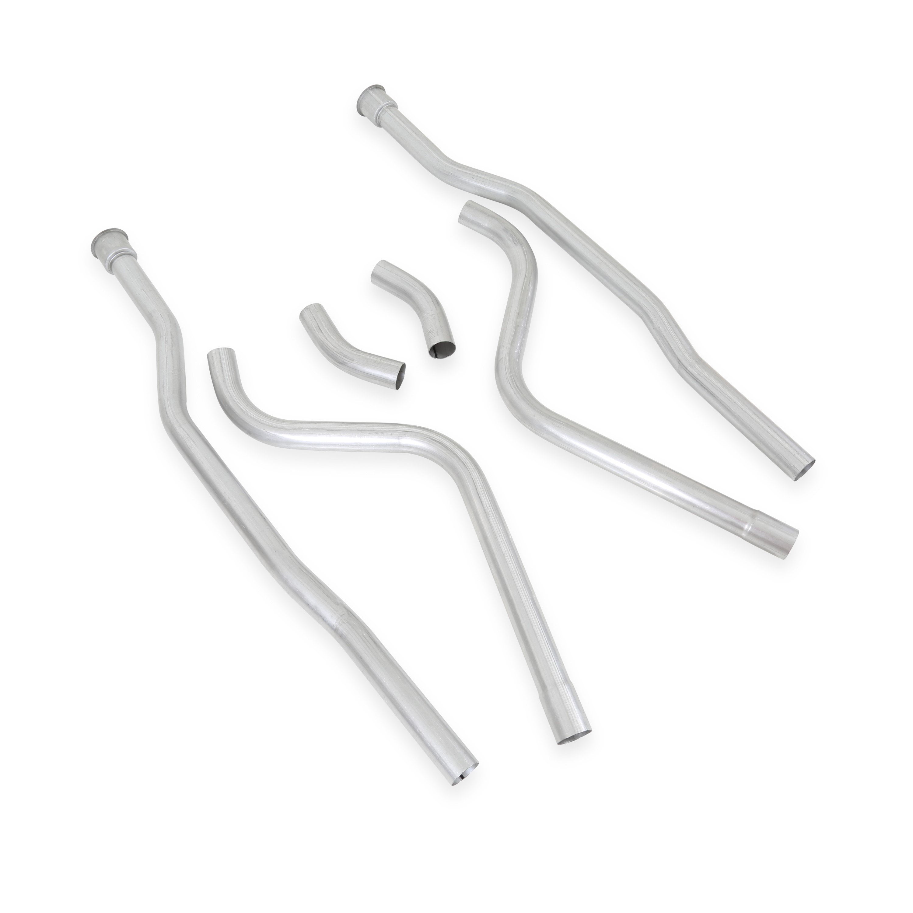 Header Back Exhaust System for 1963-1974 Chevrolet Corvette with 327-396ci V8 engines; Hooker Header Back exhaust system is constructed of 2-1/4 in. 16-gauge aluminized steel tubing for maximum flow and increased performance. This system uses the original equipment tailpipe exit location. Works with any 2-1/4 in. offset inlet/center outlet muffler.;