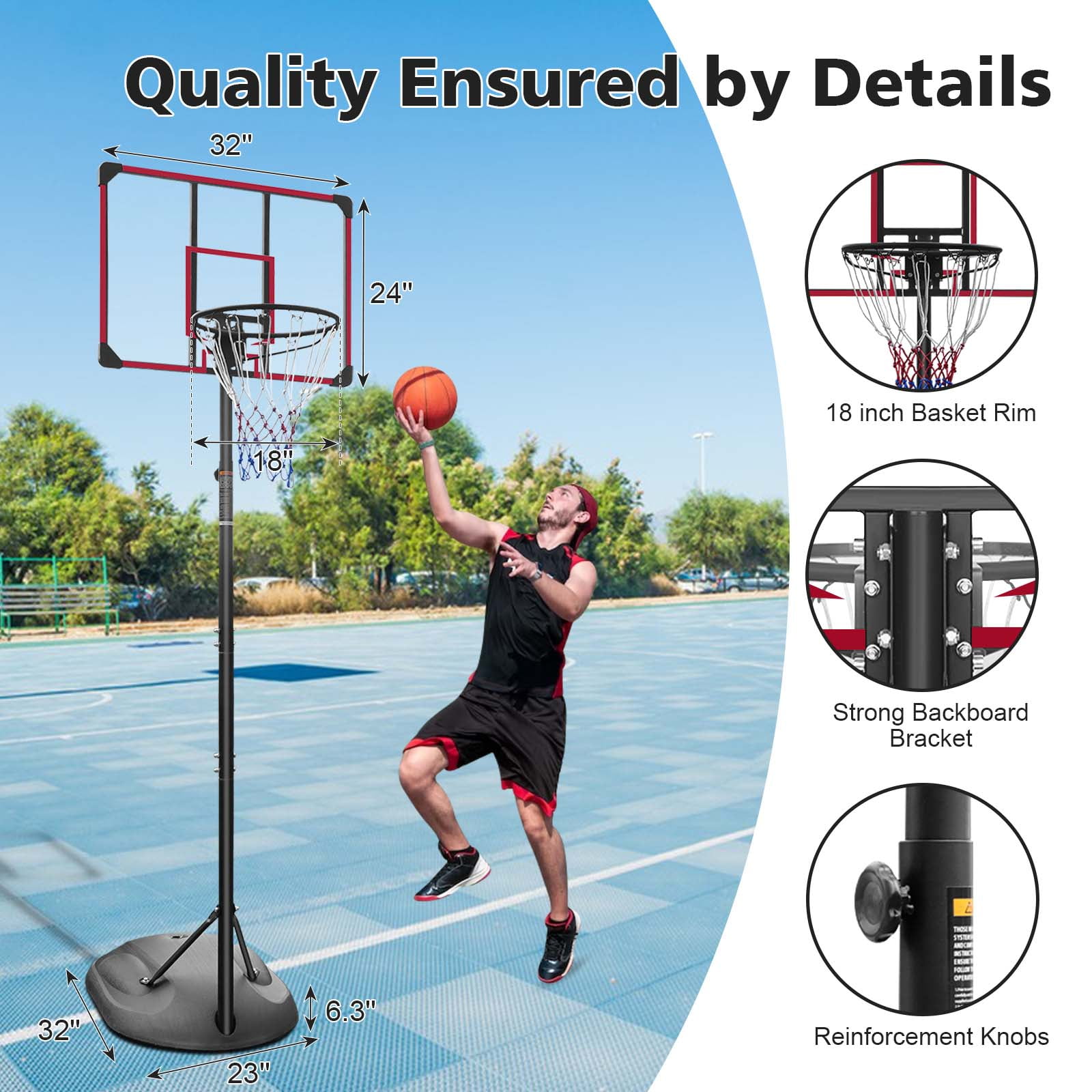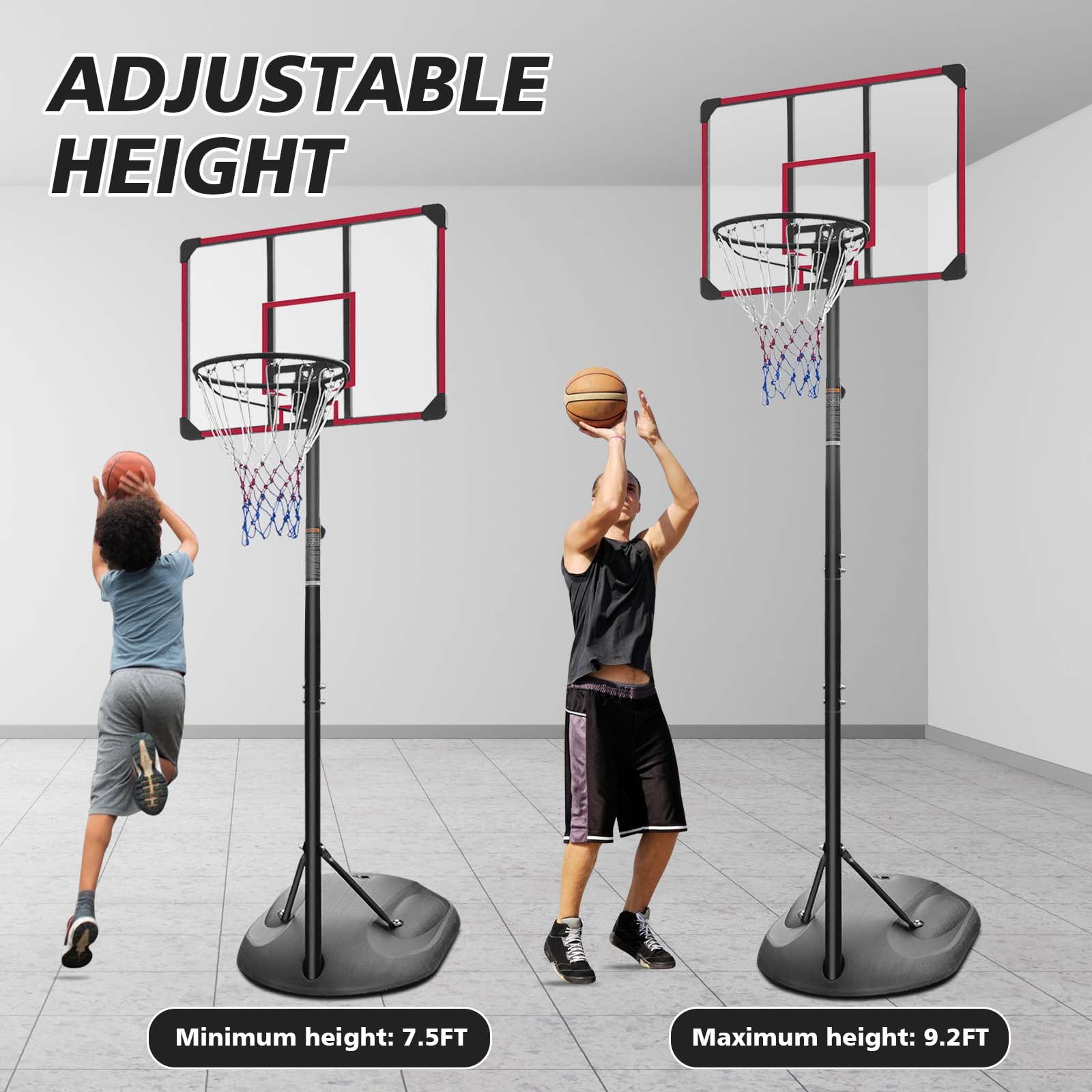 HooKung Portable Basketball Hoops & Goals 32” Backboard Basketball System Height Adjustable 7.5-9.2ft for Adult Teenagers Indoor Outdoor Use