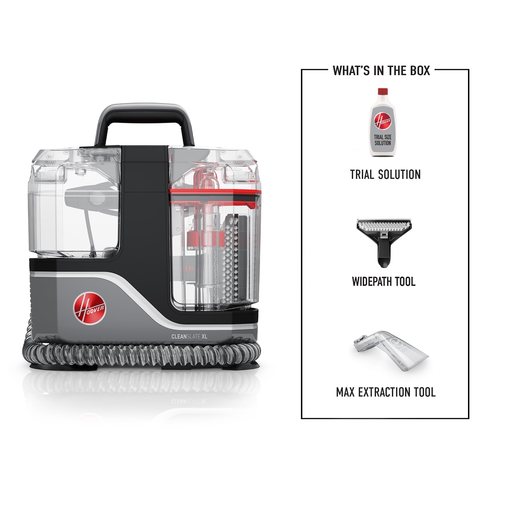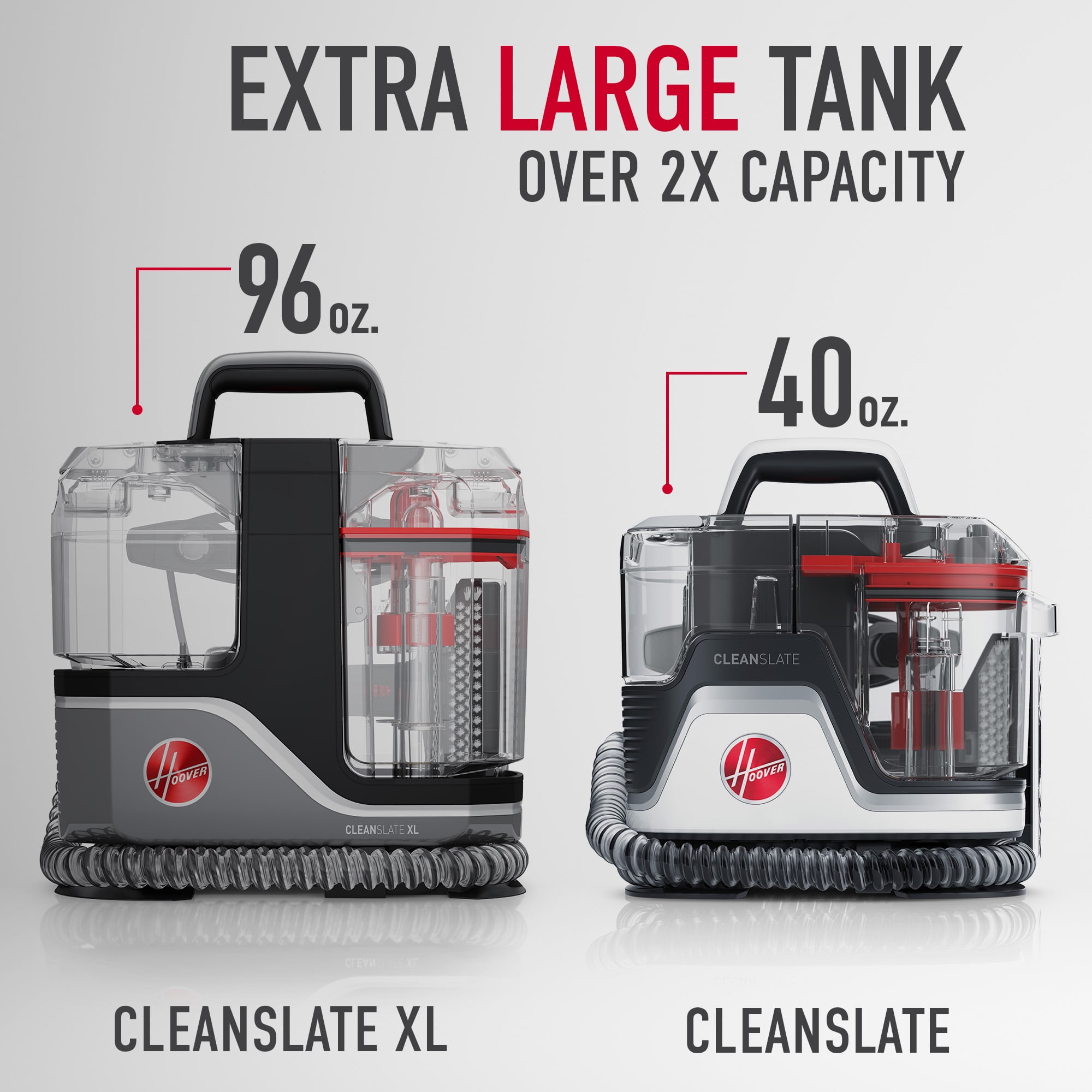 Powerful Suction: The most powerful Hoover spot cleaner for effective cleaning Permanent Stain Removal: Permanently remove embedded dirt and stains with the included Hoover Oxy Portable Solution XL Capacity Tanks: The 96 fl oz. tank allows for extended cleaning sessions with fewer interruptions Tools for Every Mess: Specialized tools designed to make cleaning various areas in your home easier Portable Design: Lightweight and easy to carry, use, and store, fitting conveniently on a stair ledge Hoover CleanSlate XL Corded Portable Carpet and Upholstery Pet Spot Cleaner FH15010V, Fresh Scent